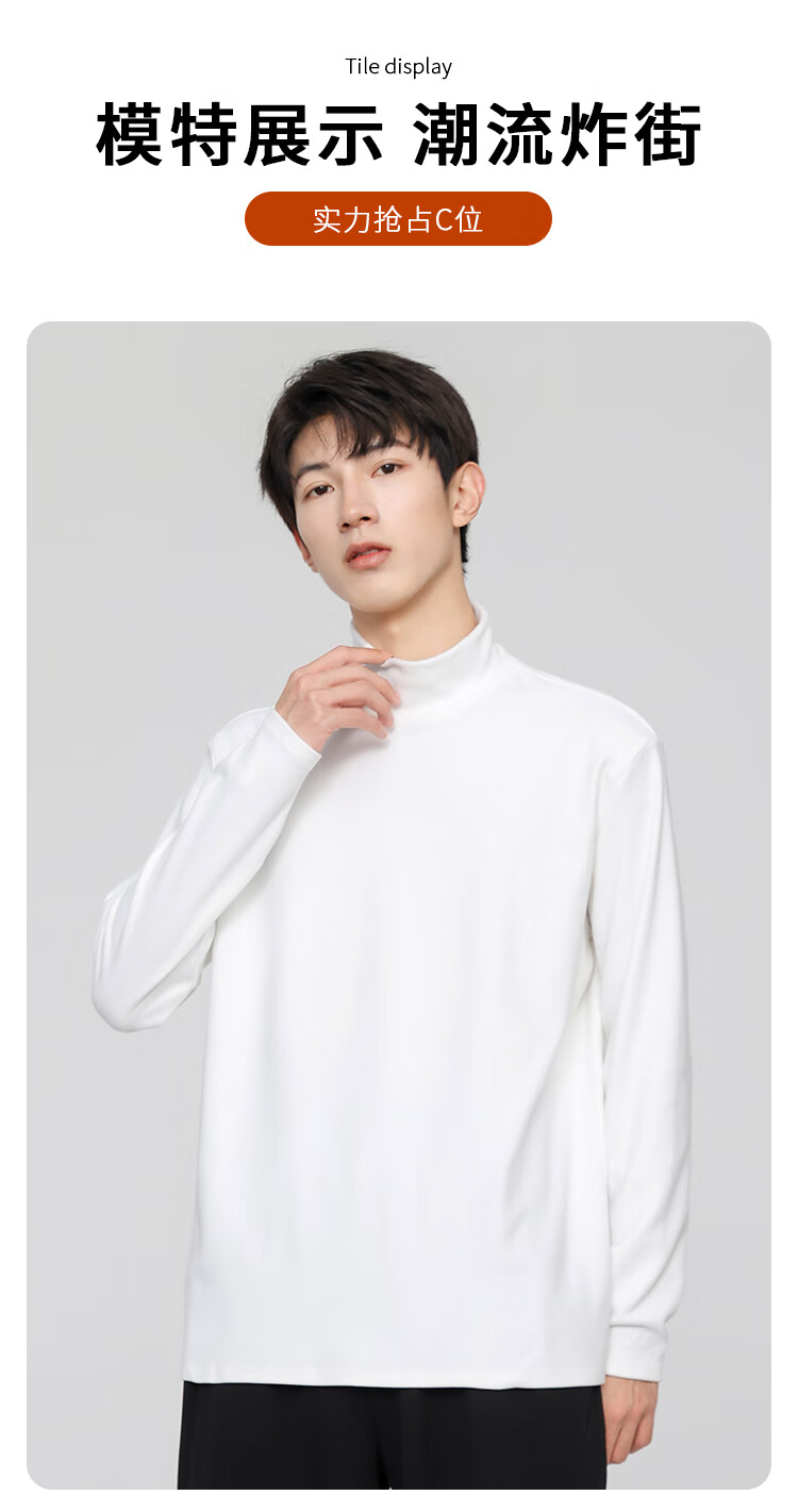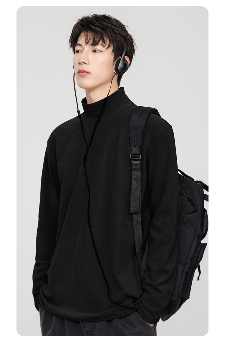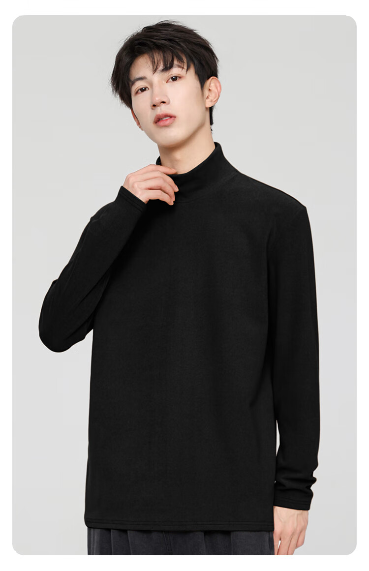 真维斯(JEANSWEST) T恤长袖男秋冬加绒加厚打底立领上衣打底衫上衣服长袖纯色t恤 黑色【立领】 4XL(推荐体重200斤-220斤左右)