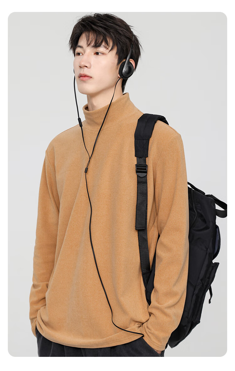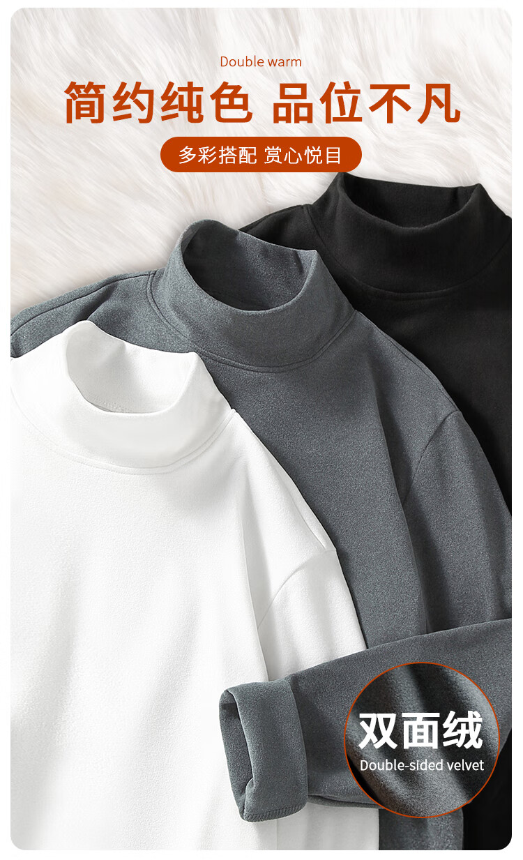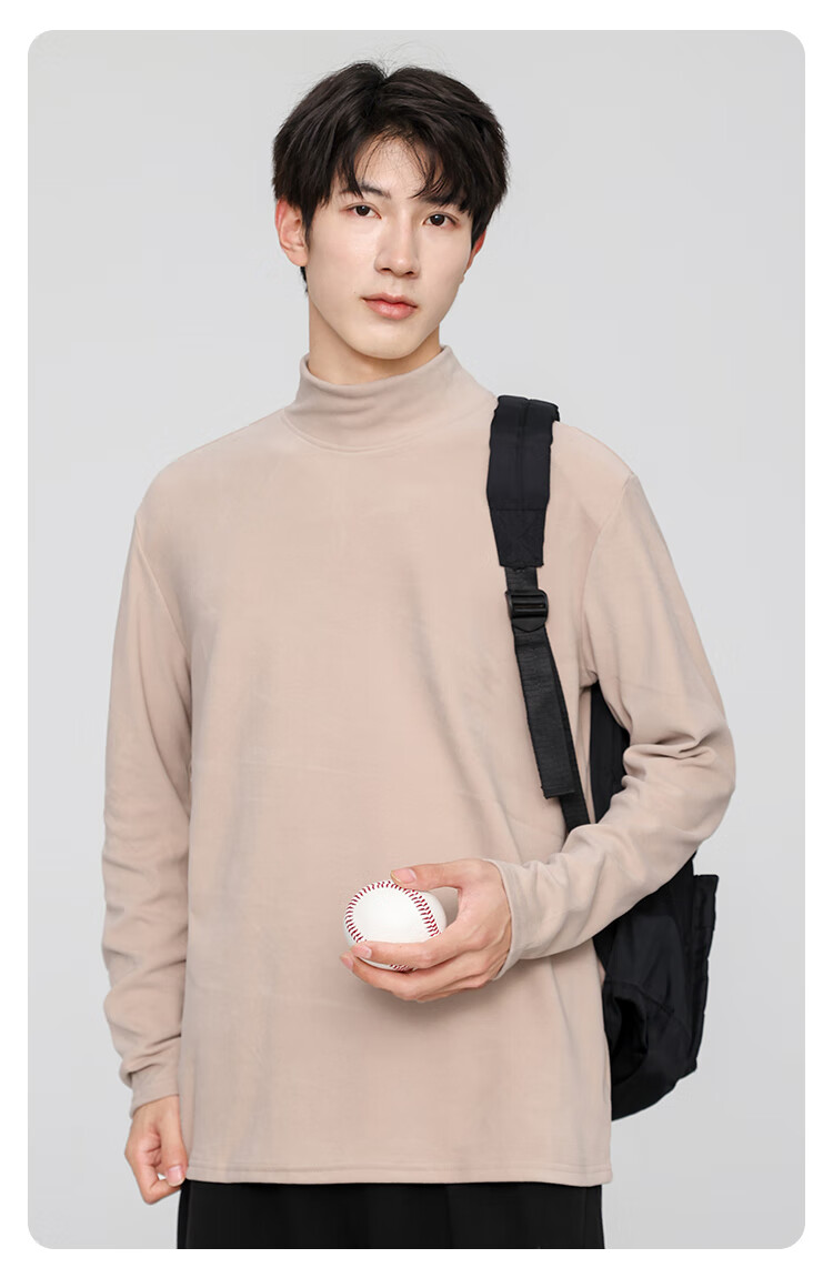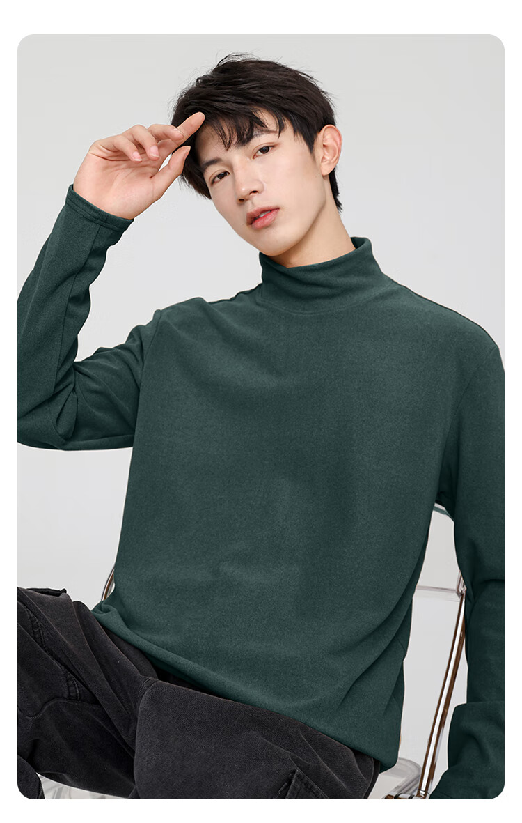 真维斯(JEANSWEST) T恤长袖男秋冬加绒加厚打底立领上衣打底衫上衣服长袖纯色t恤 黑色【立领】 4XL(推荐体重200斤-220斤左右)