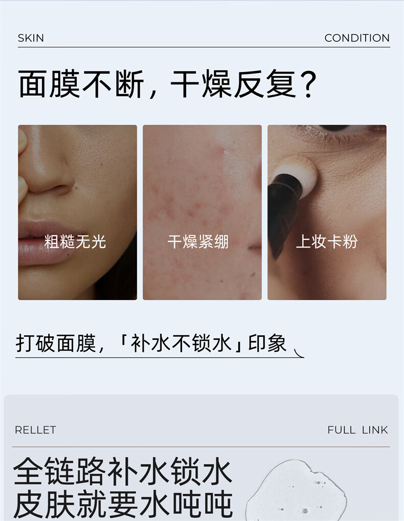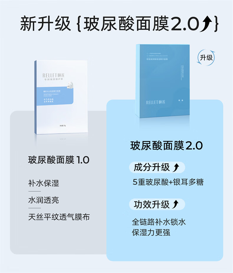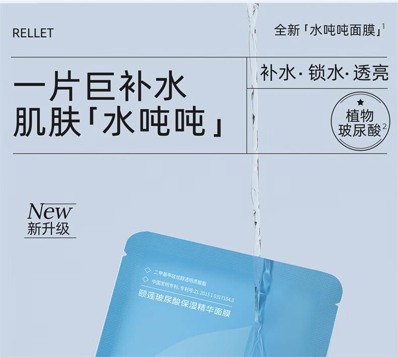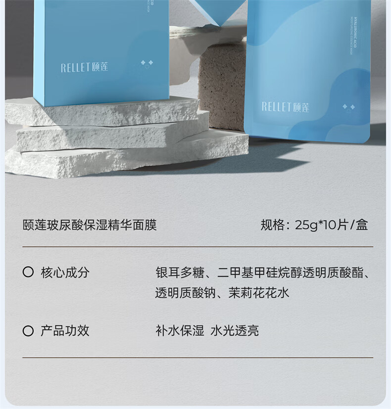 颐莲(RELLET)玻尿酸补水保湿面膜贴 滋润保湿轻薄透气水光透亮 3盒/30片