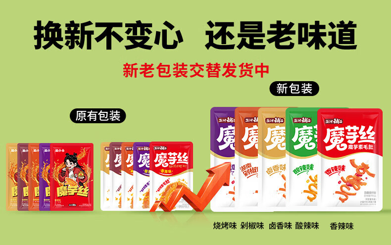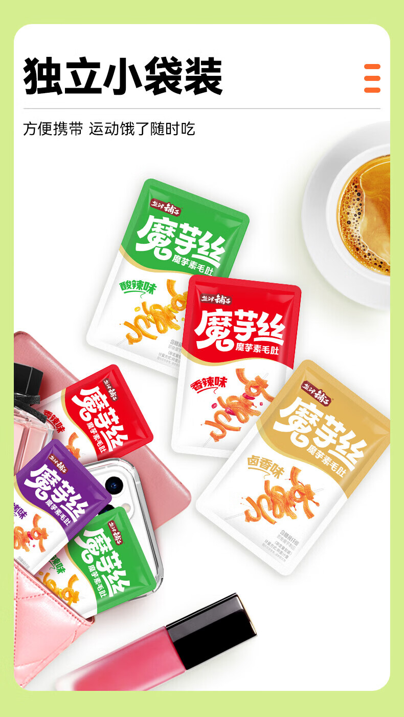 盐津铺子魔芋丝魔芋爽魔芋素毛肚 办公室零食休闲零食 下酒菜 开胃菜 630g*1袋 (内含约70小包) 混合口味