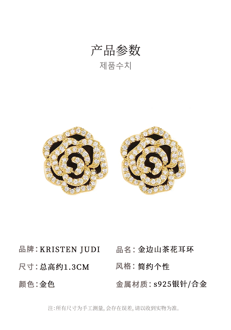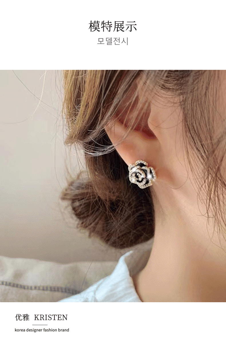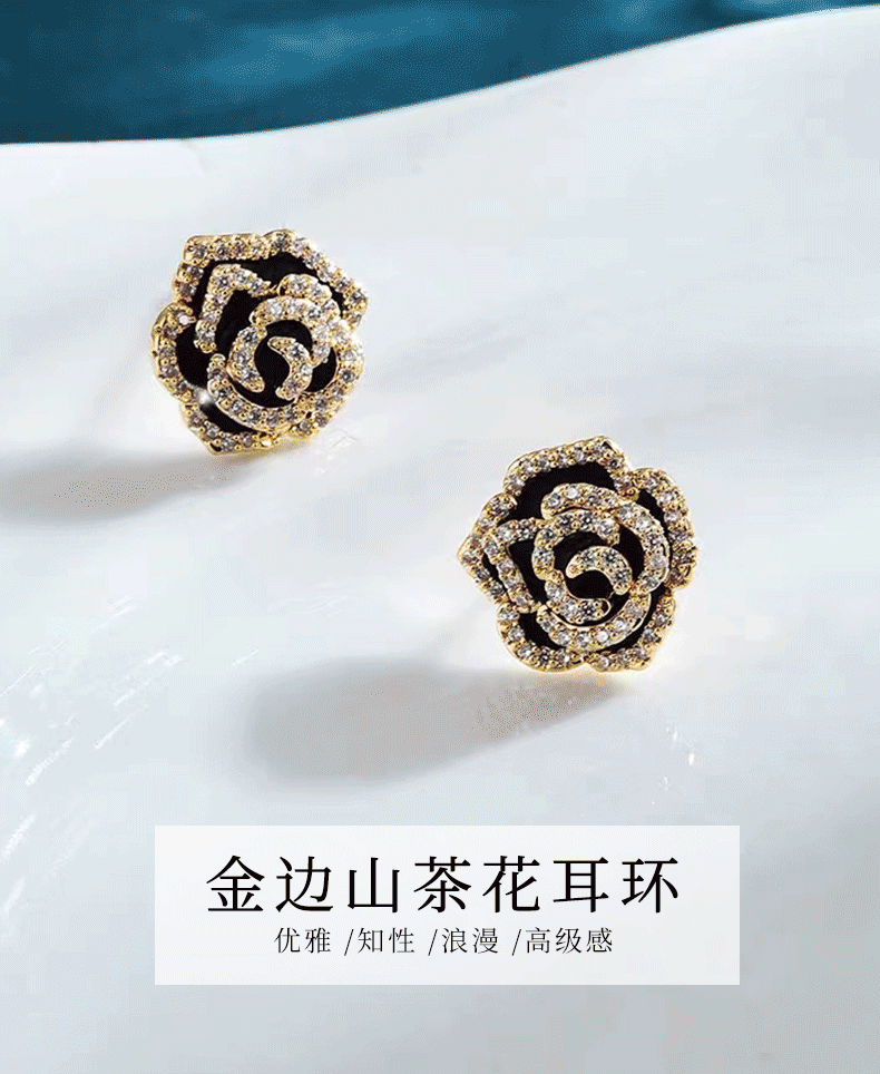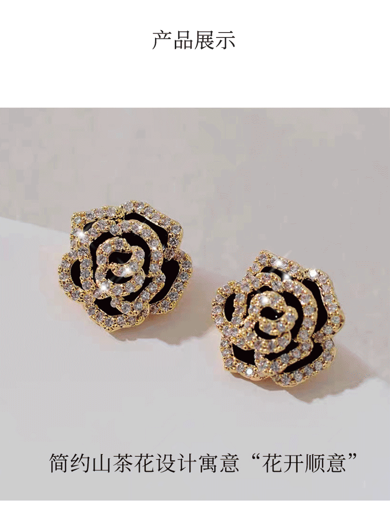 KRISTEN JUDI黑色山茶花耳环女银针耳钉气质复古高级感耳饰送女友老婆生日礼物 黑色送妈妈闺蜜浪漫实用圣诞节