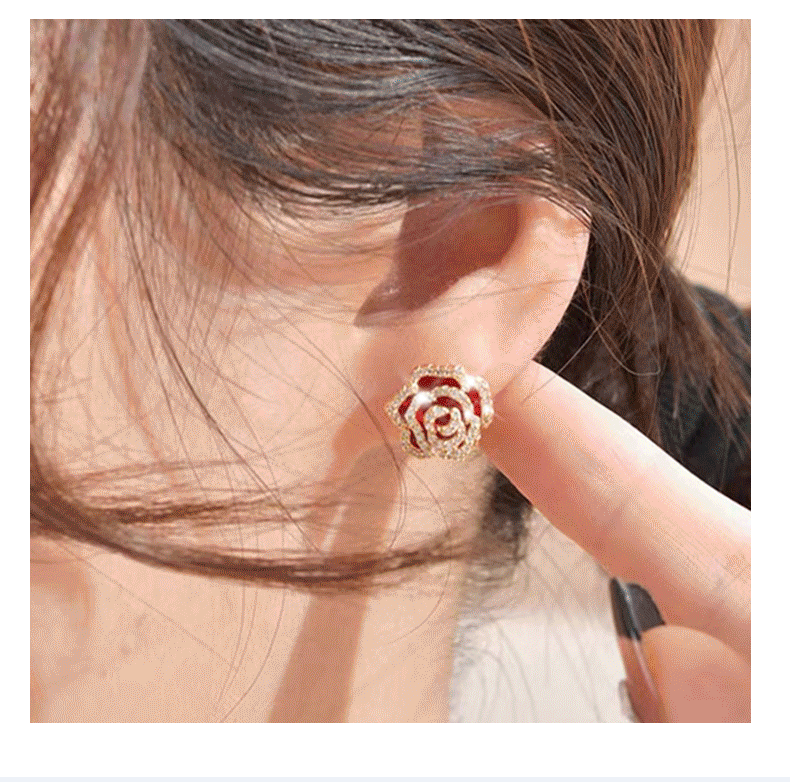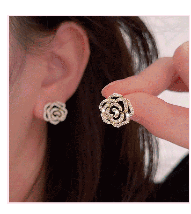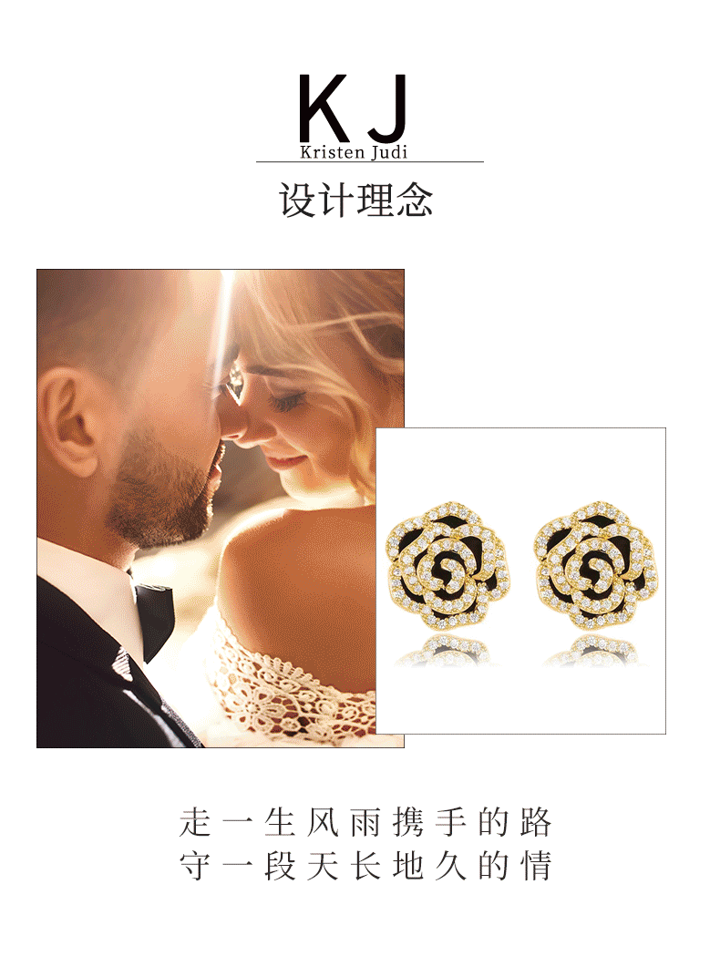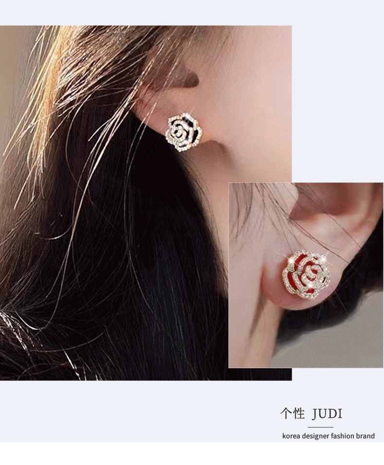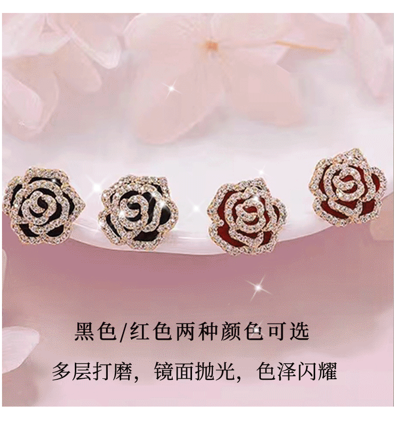 KRISTEN JUDI黑色山茶花耳环女银针耳钉气质复古高级感耳饰送女友老婆生日礼物 黑色送妈妈闺蜜浪漫实用圣诞节