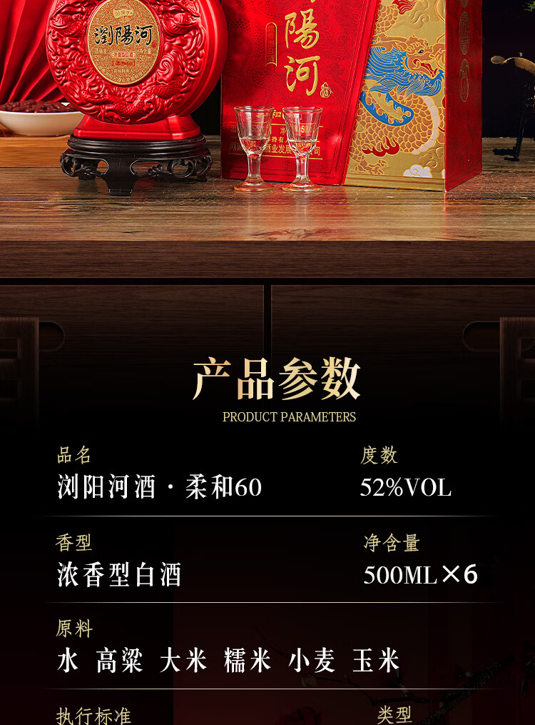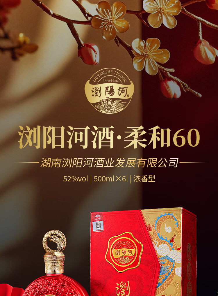 瀏陽河酒柔和60白酒整箱52度浓香型500ml*6瓶请客自饮送礼佳品 52度 500mL 6瓶