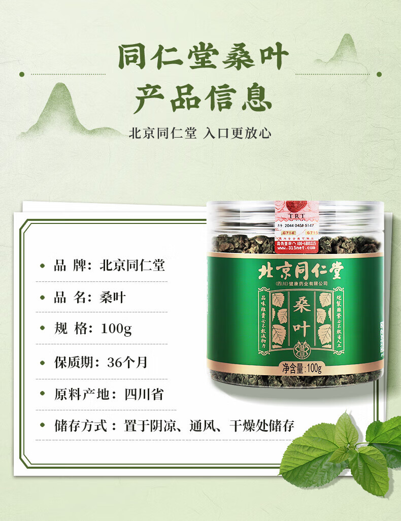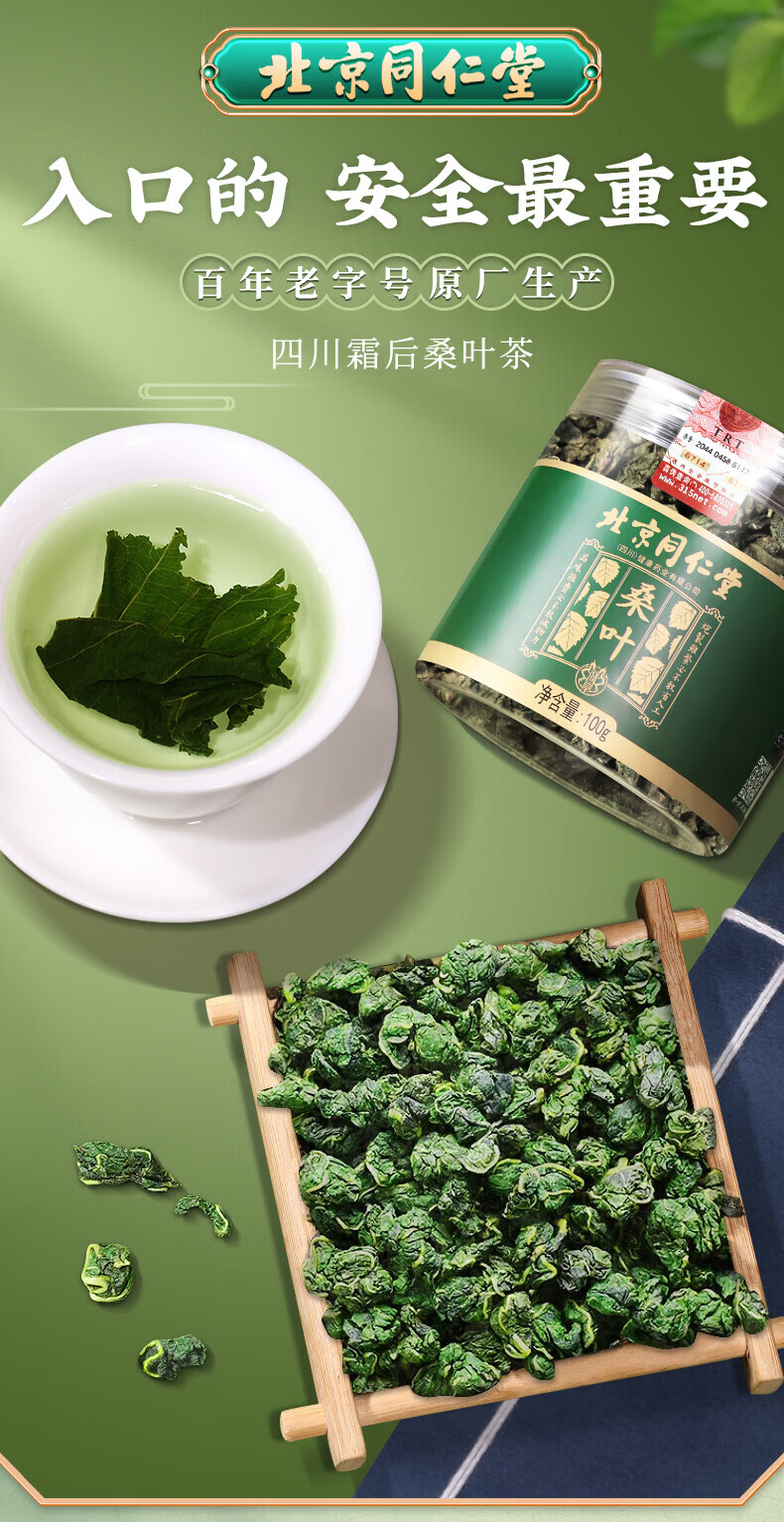 朕皇北京同仁堂特级霜后桑叶茶霜降秋后霜打新鲜糖血高茶养生花草茶 【2盒装】改善装 100g/盒