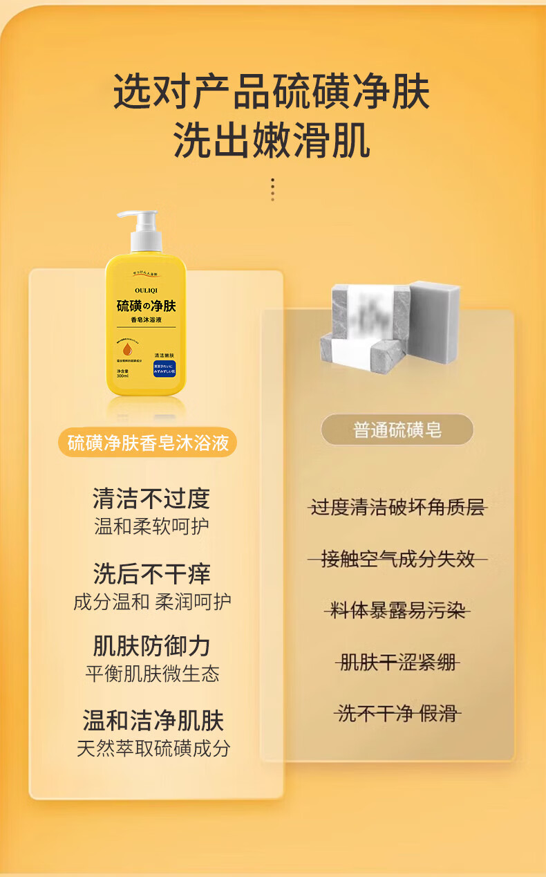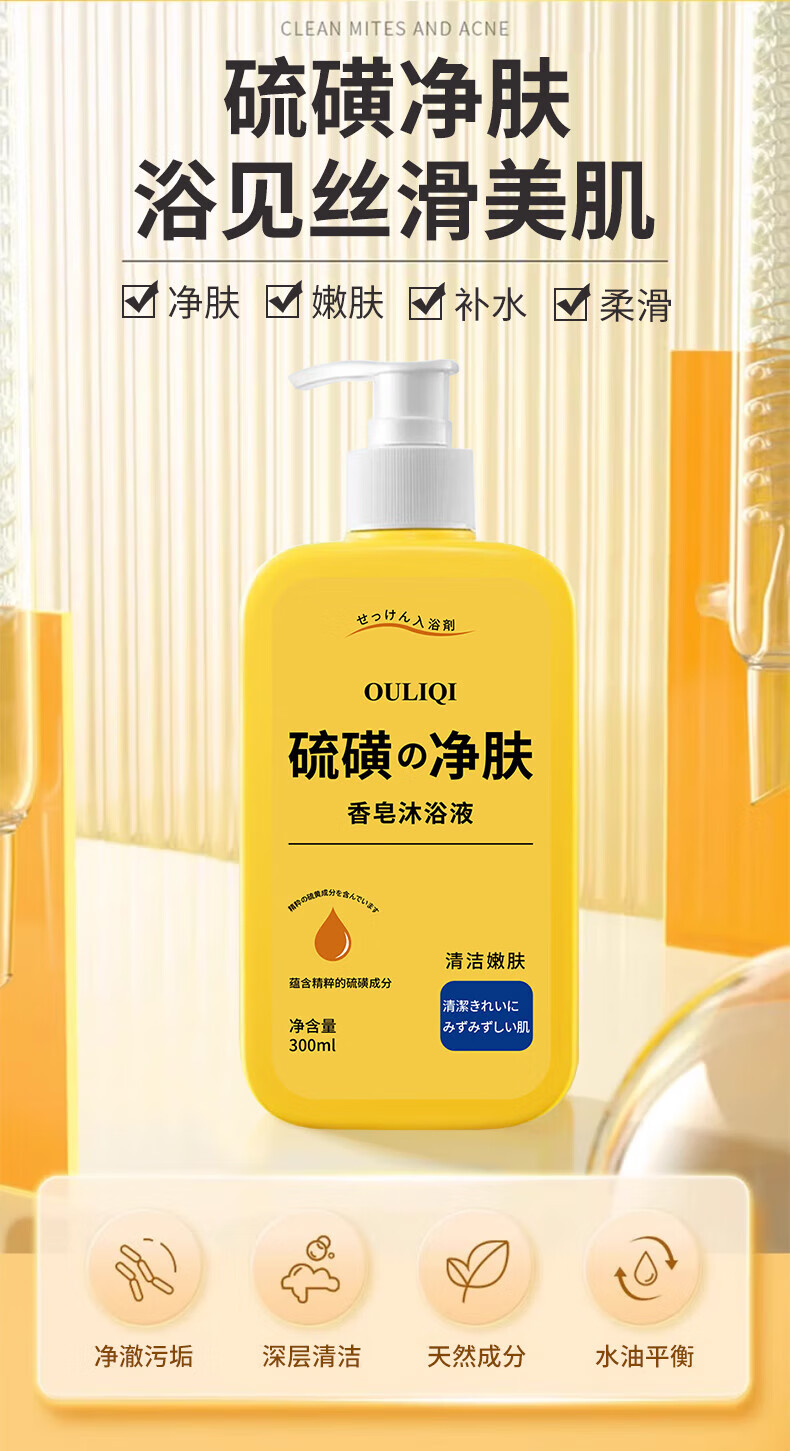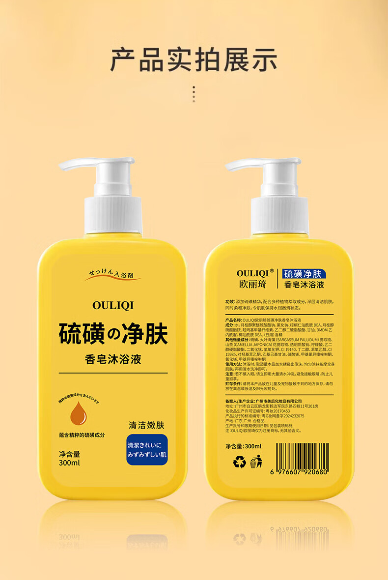 欧丽琦硫磺沐浴露洗发水洗脸男女士通用滋润保湿沐浴乳洗护套装 【拍1发2】沐浴皂液300ml