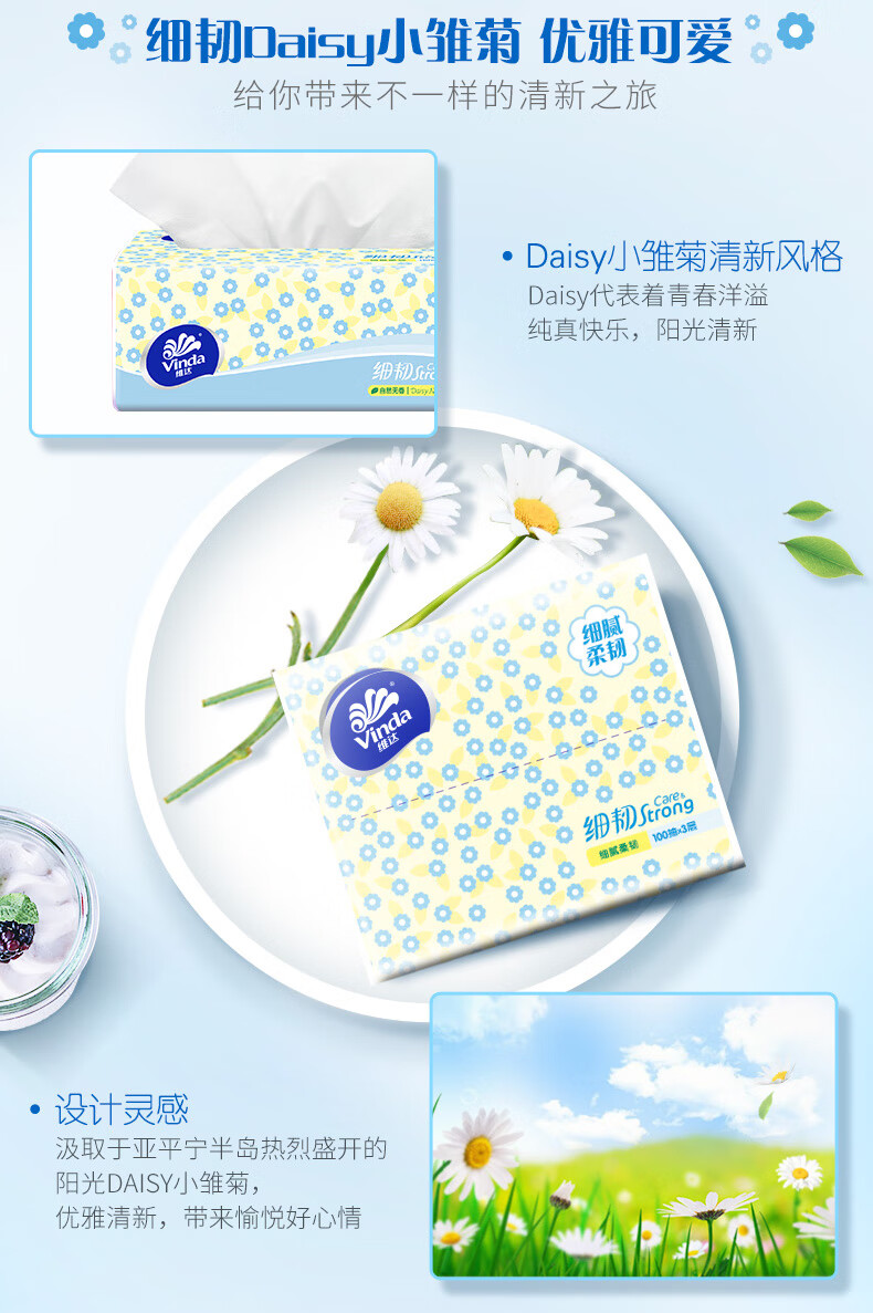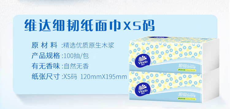 维达抽纸细韧面巾纸 3层 100抽*5包