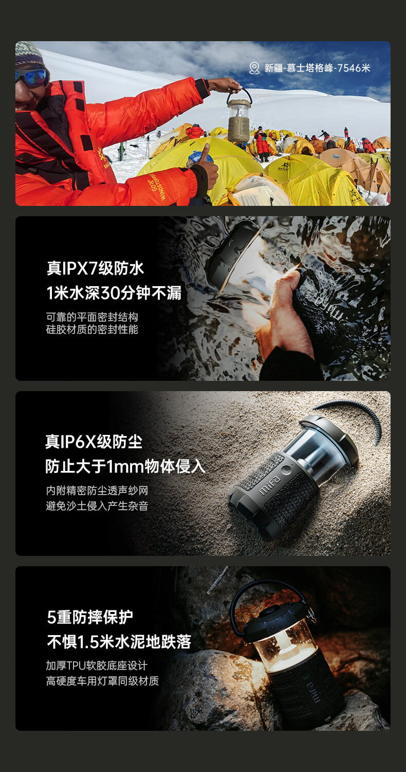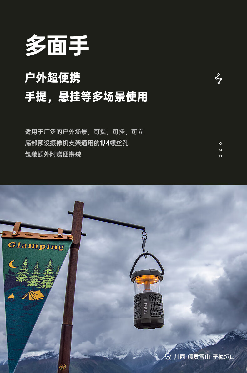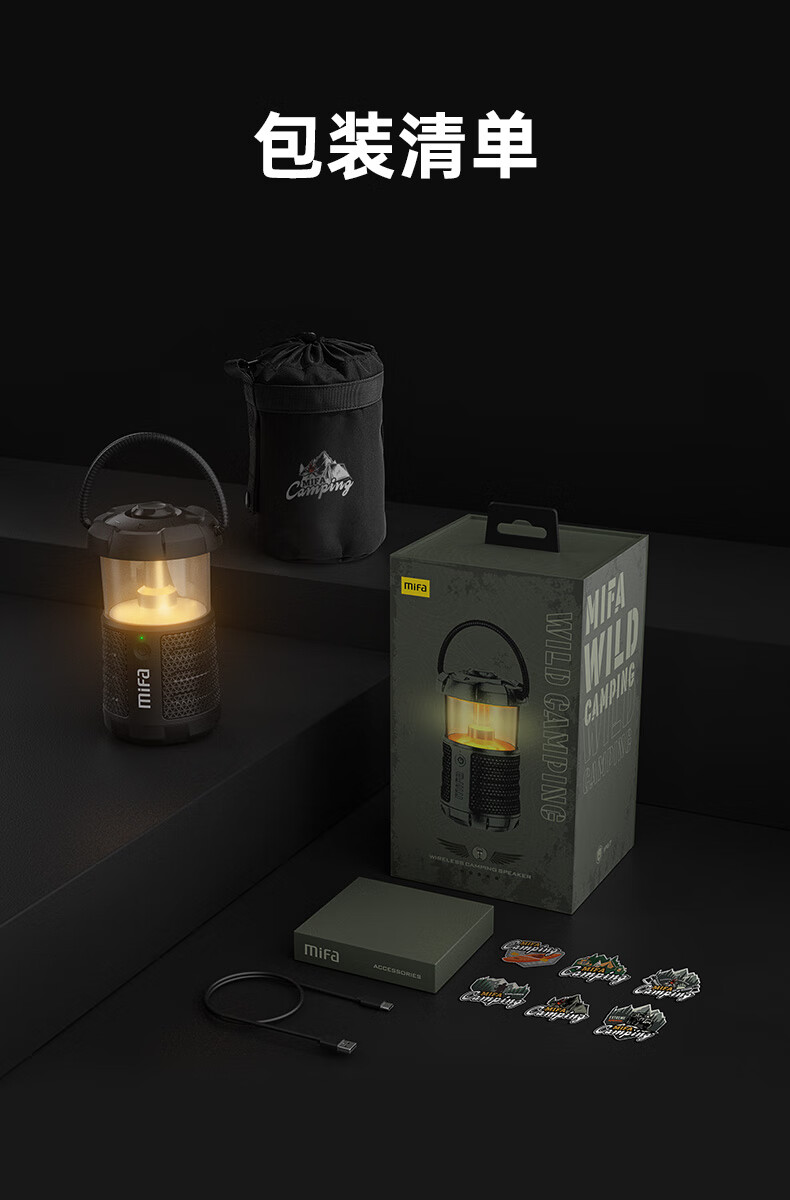 MIFA WildCamping无线蓝牙音箱【帮下歌】超重低音炮防水户外便携骑行车载高音质音响大音量插卡露营灯 WildCamping山系风【赠收纳袋】 【官方标配】