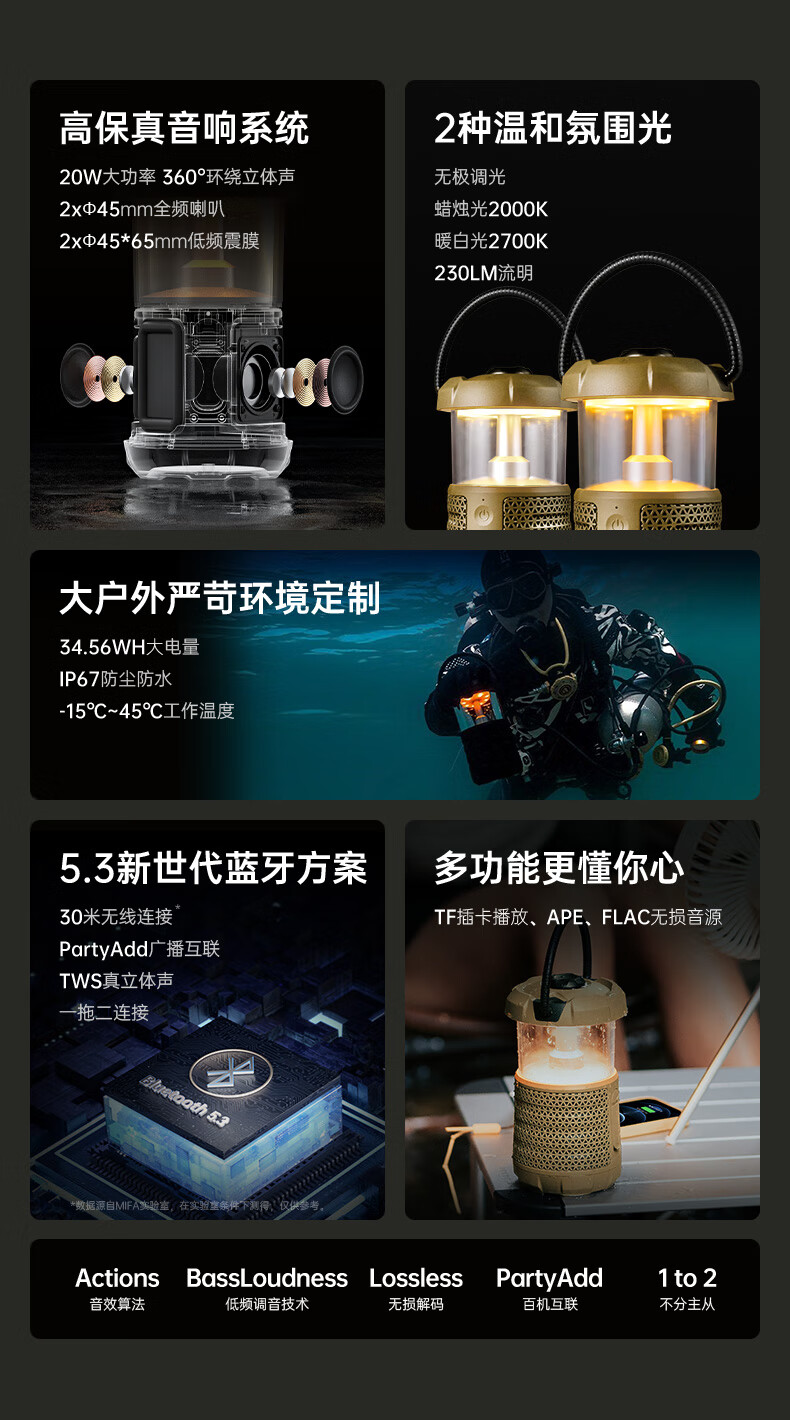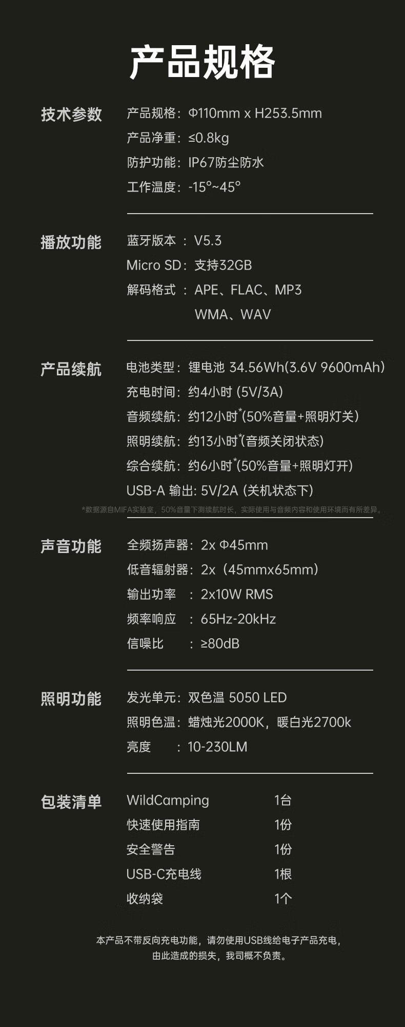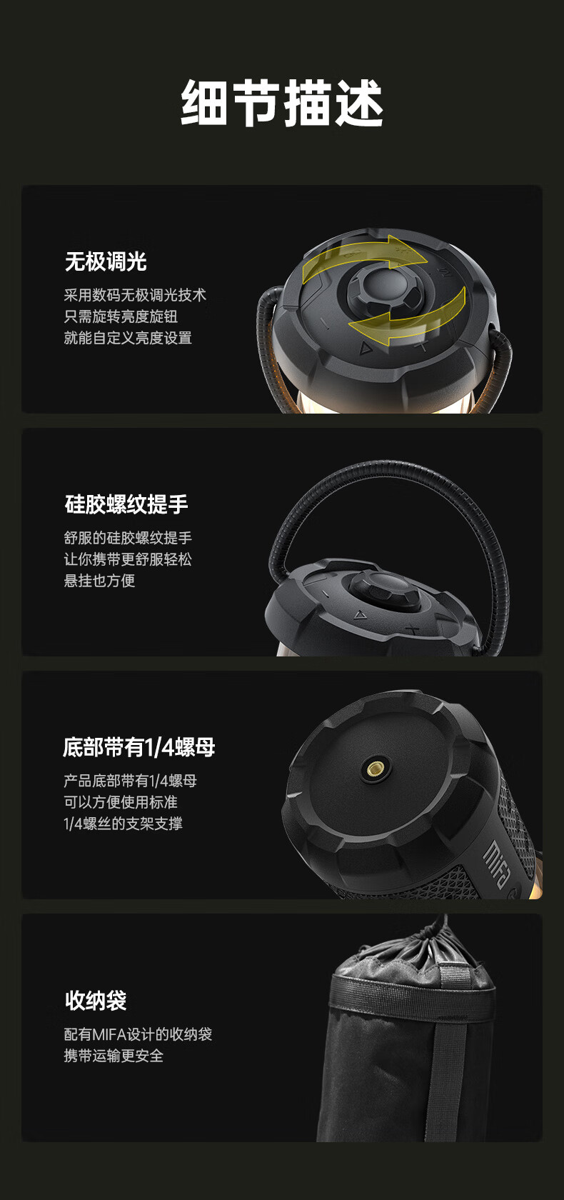 MIFA WildCamping无线蓝牙音箱【帮下歌】超重低音炮防水户外便携骑行车载高音质音响大音量插卡露营灯 WildCamping山系风【赠收纳袋】 【官方标配】