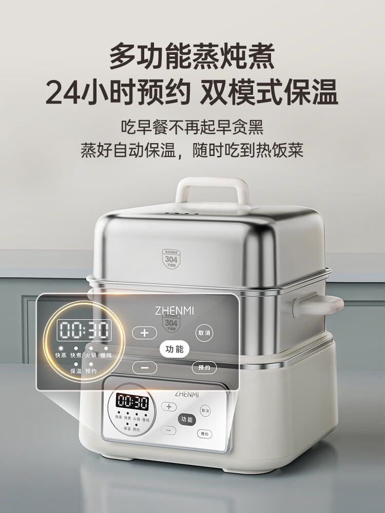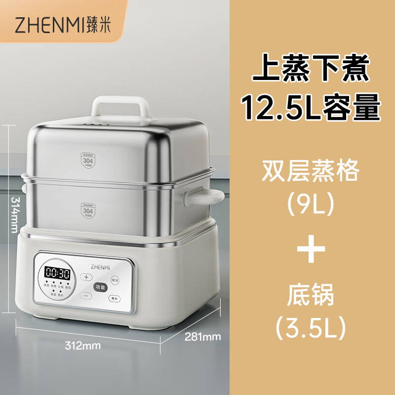 臻米(ZHENMI)电蒸锅不锈钢蒸锅家用大容量多功能多层早餐机专用一体锅上蒸下煮 12.5L