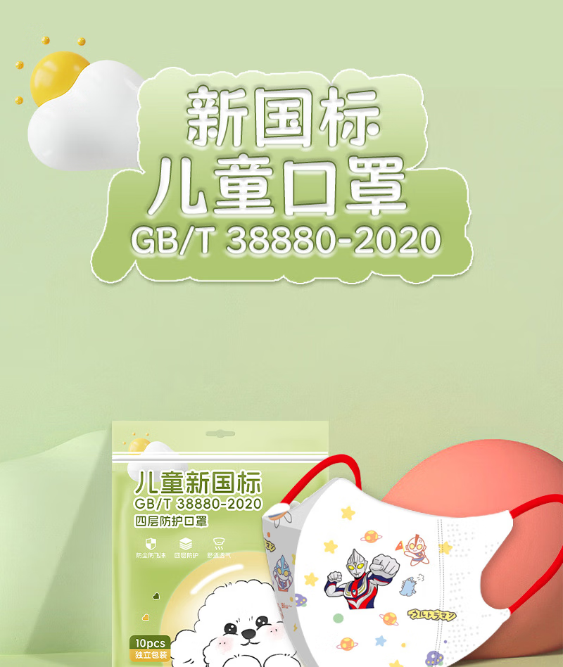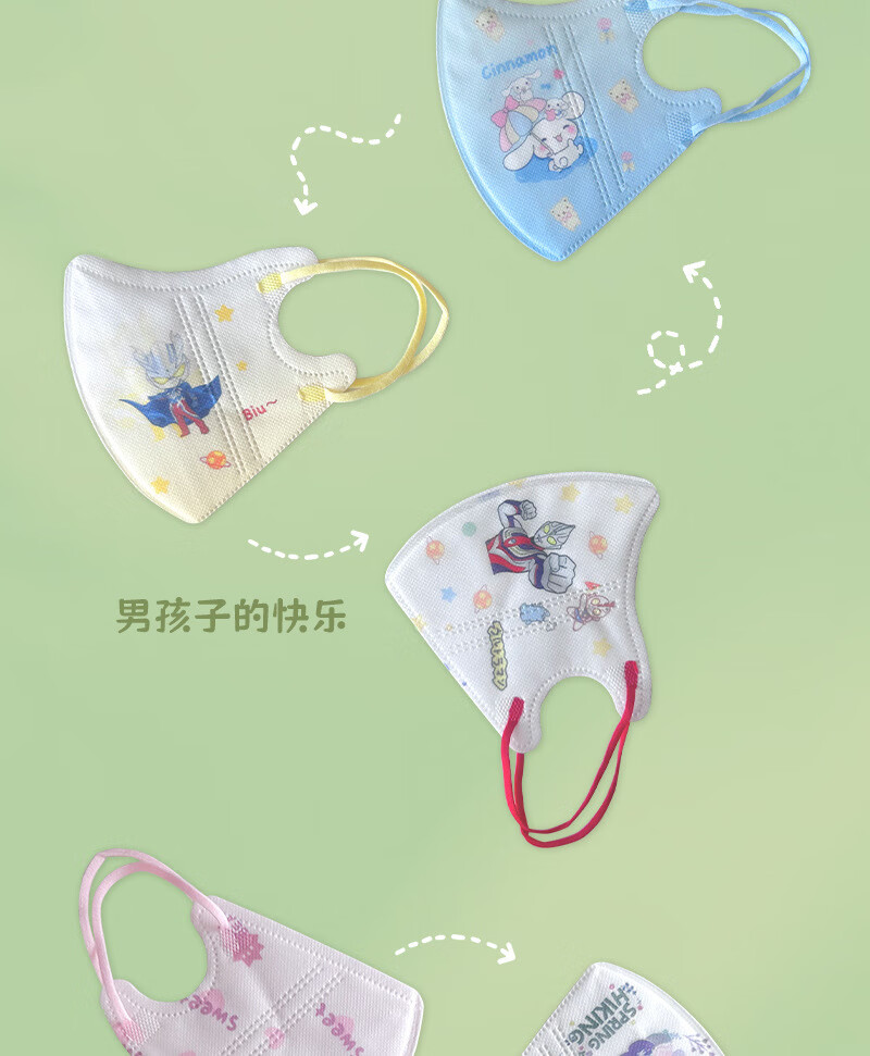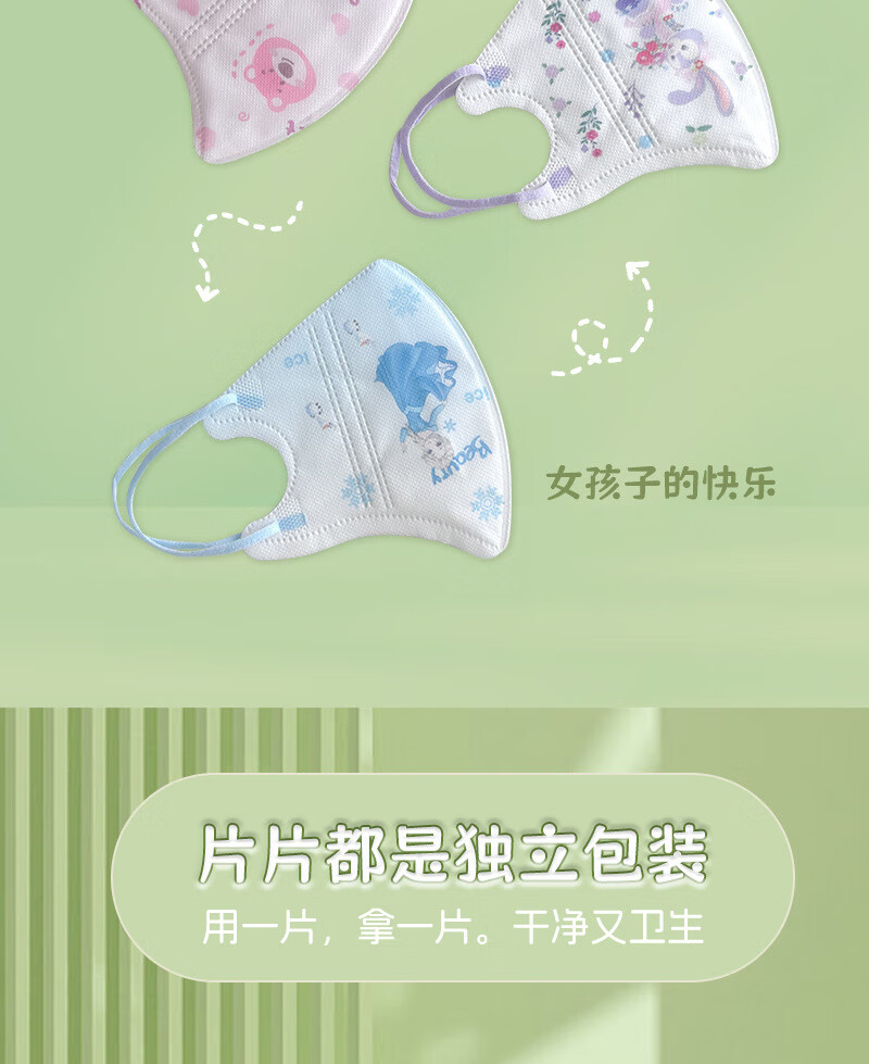 新国标38880儿童口罩3D立体防护可爱卡通超人公主印花独立包装 儿童爱莎【3-12岁】 50只-独立包装