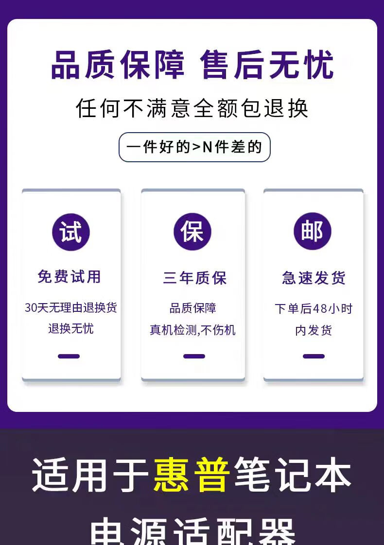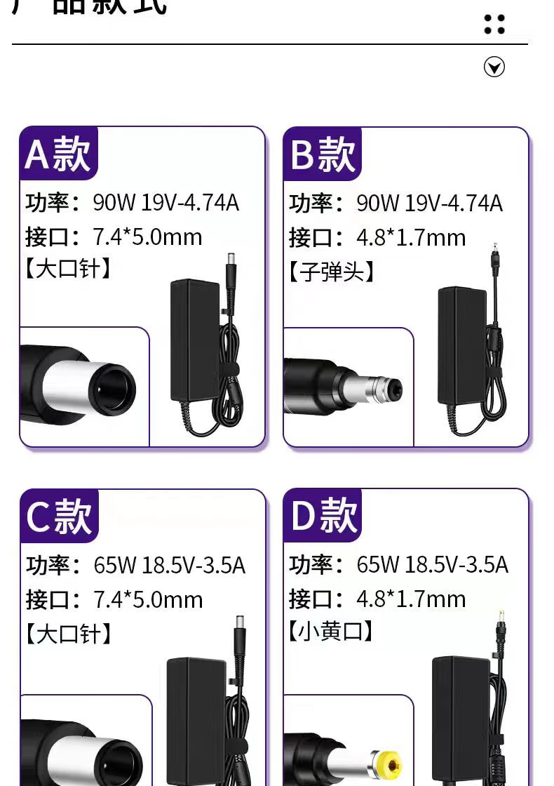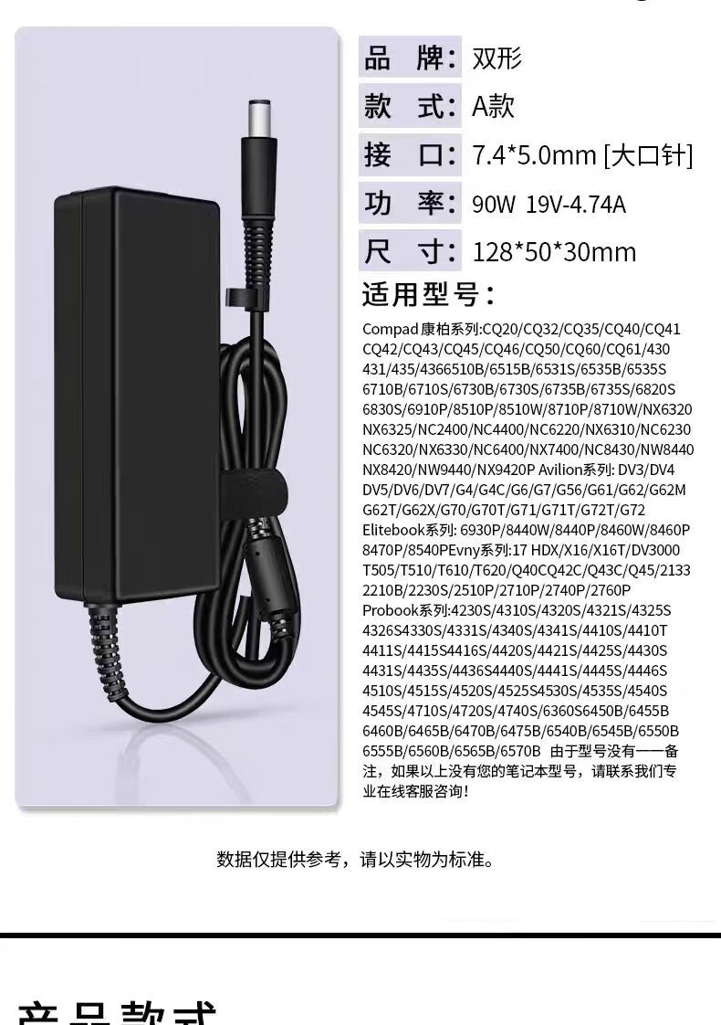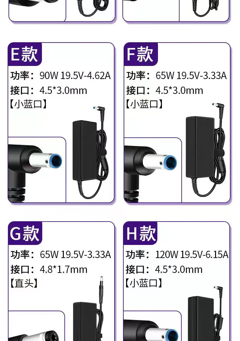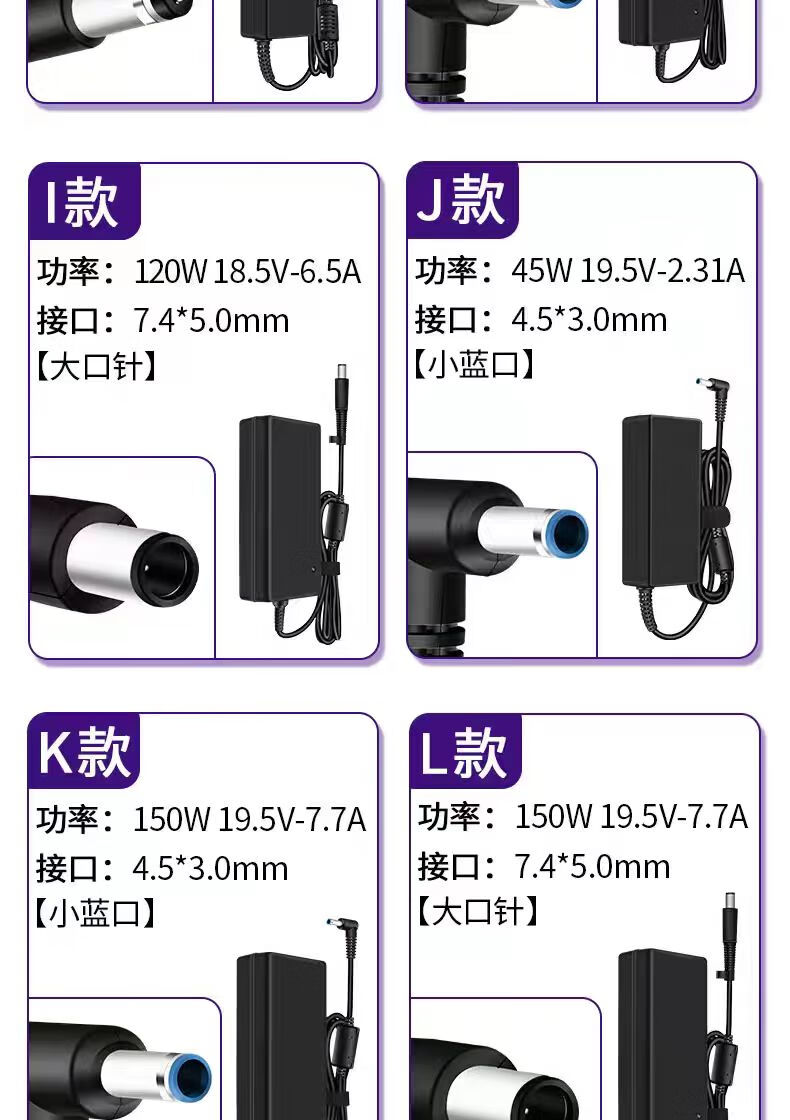 通用惠普笔记本充电器 65W 战66 Pavilion 15 Envy14 电源适配器 12款19.5V-7.7A 150W 大口针长款