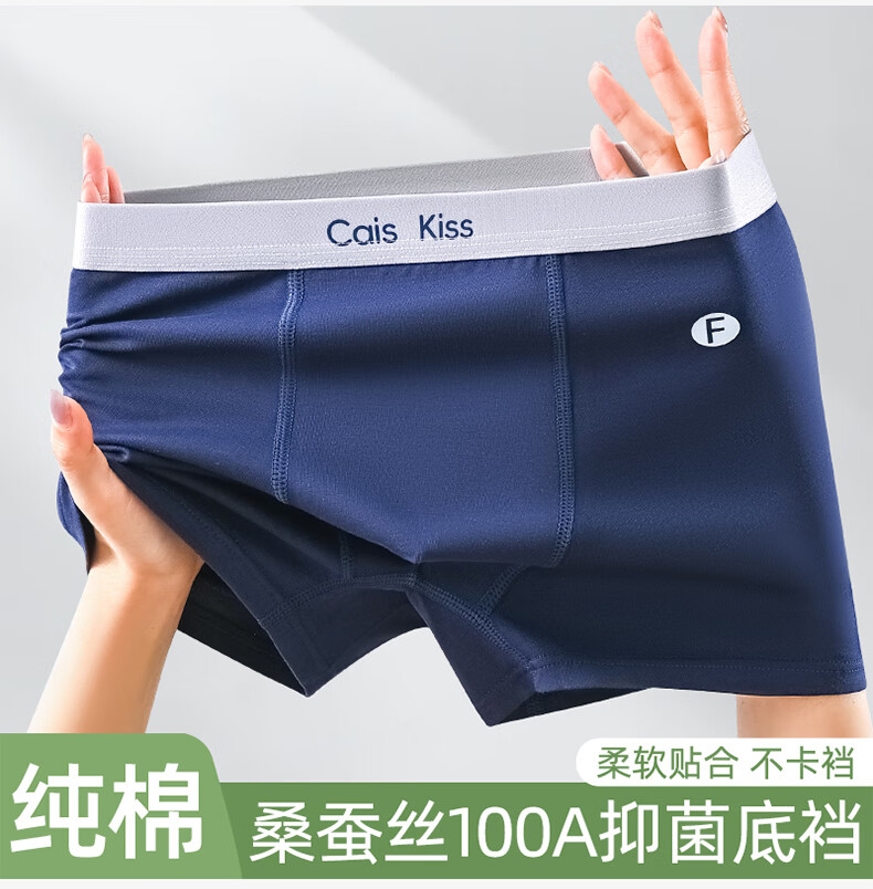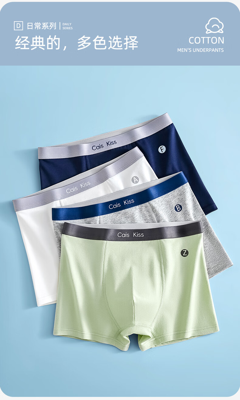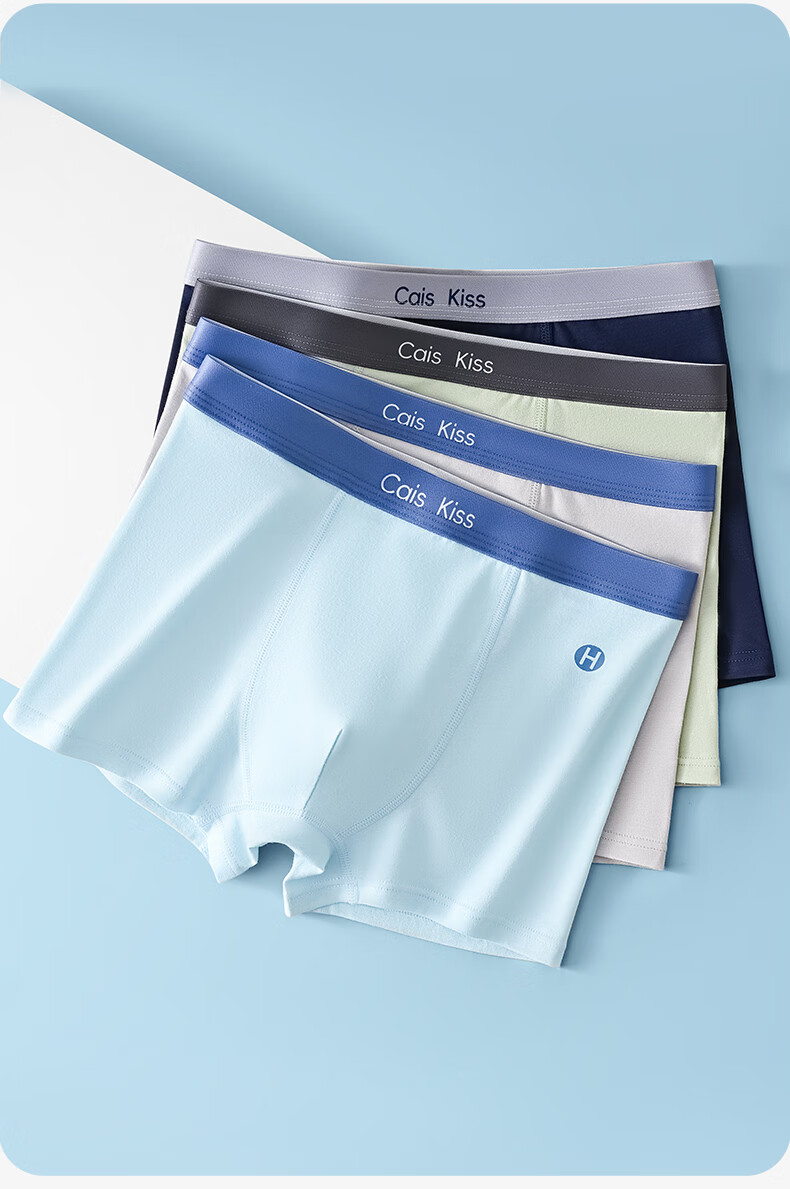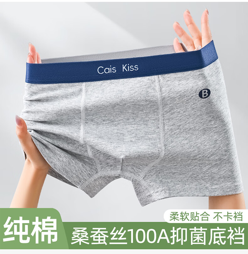 原选青少年纯棉内裤男童发育期学生高中生中大童100A抑菌男童平角裤 宝蓝+花灰+浅灰+白色(4条装) /发育期100A桑蚕丝底裆 180 3XL(135-170)斤