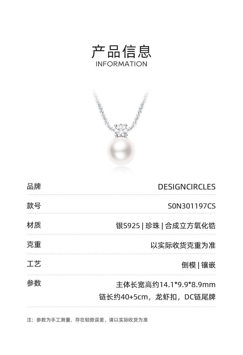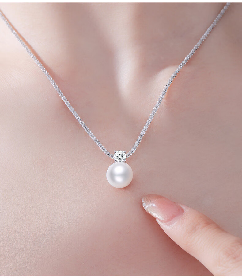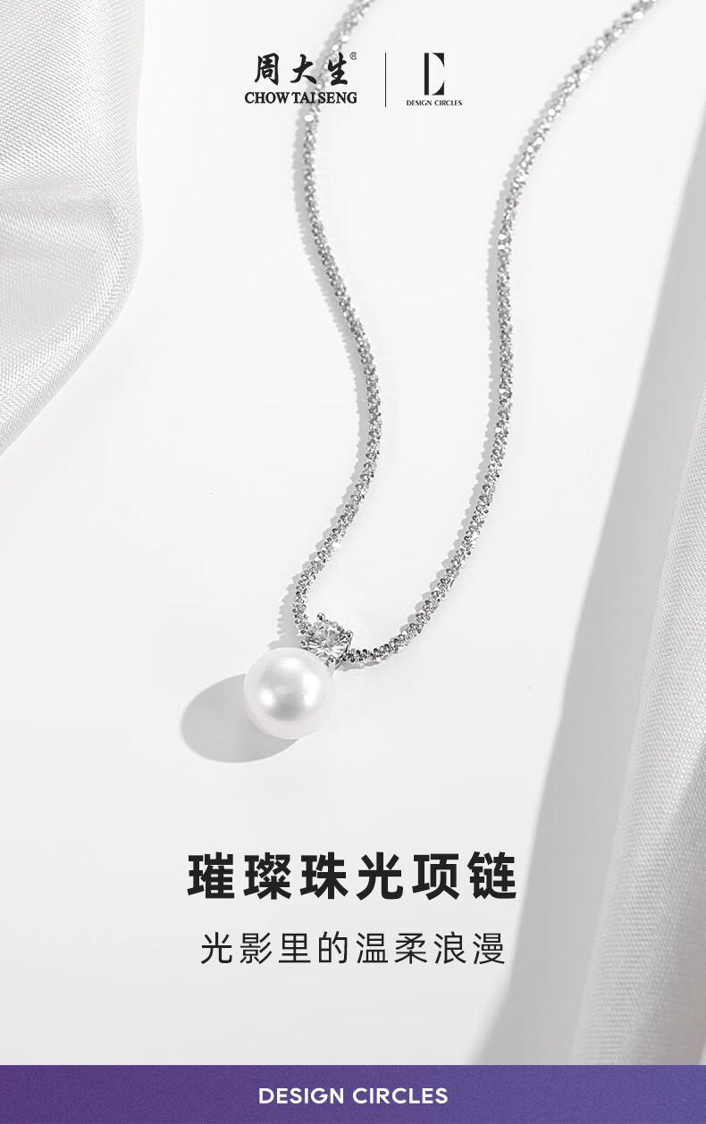 周大生*DC碎银子珍珠吊坠项链纯银轻奢素珠锁骨链生日礼物送女生 珍珠项链