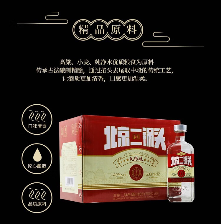 永丰牌北京二锅头永丰 纯粮酿造 白酒整箱清香型白酒方瓶 节日礼品 42度 500mL 12瓶 纯粮酿