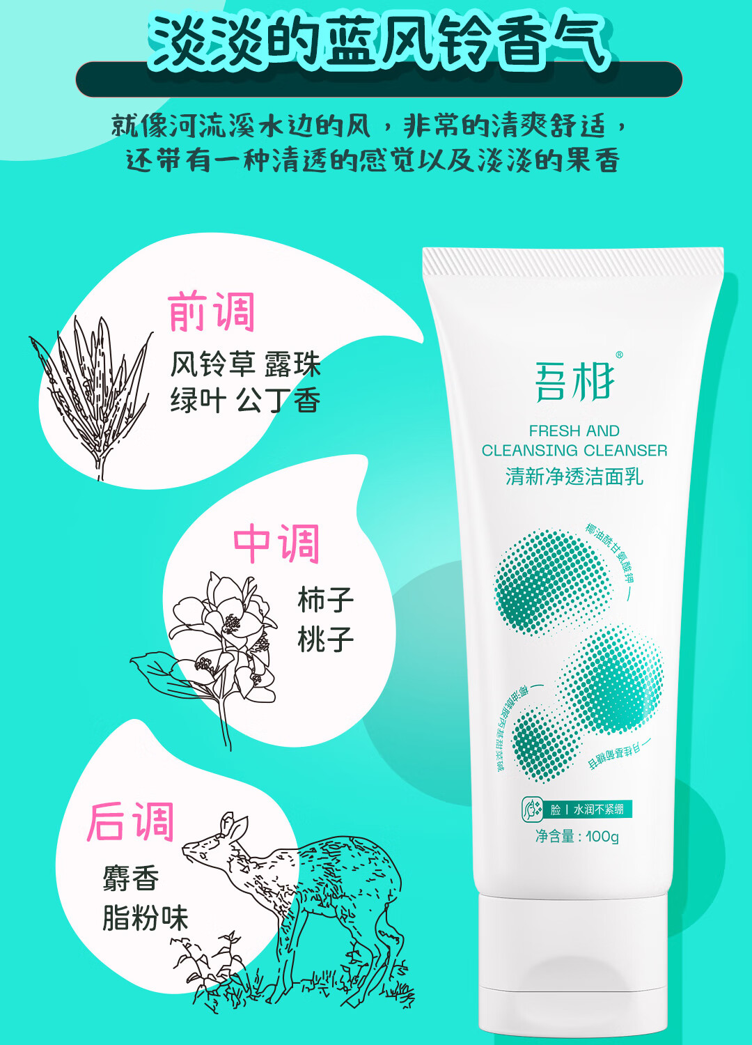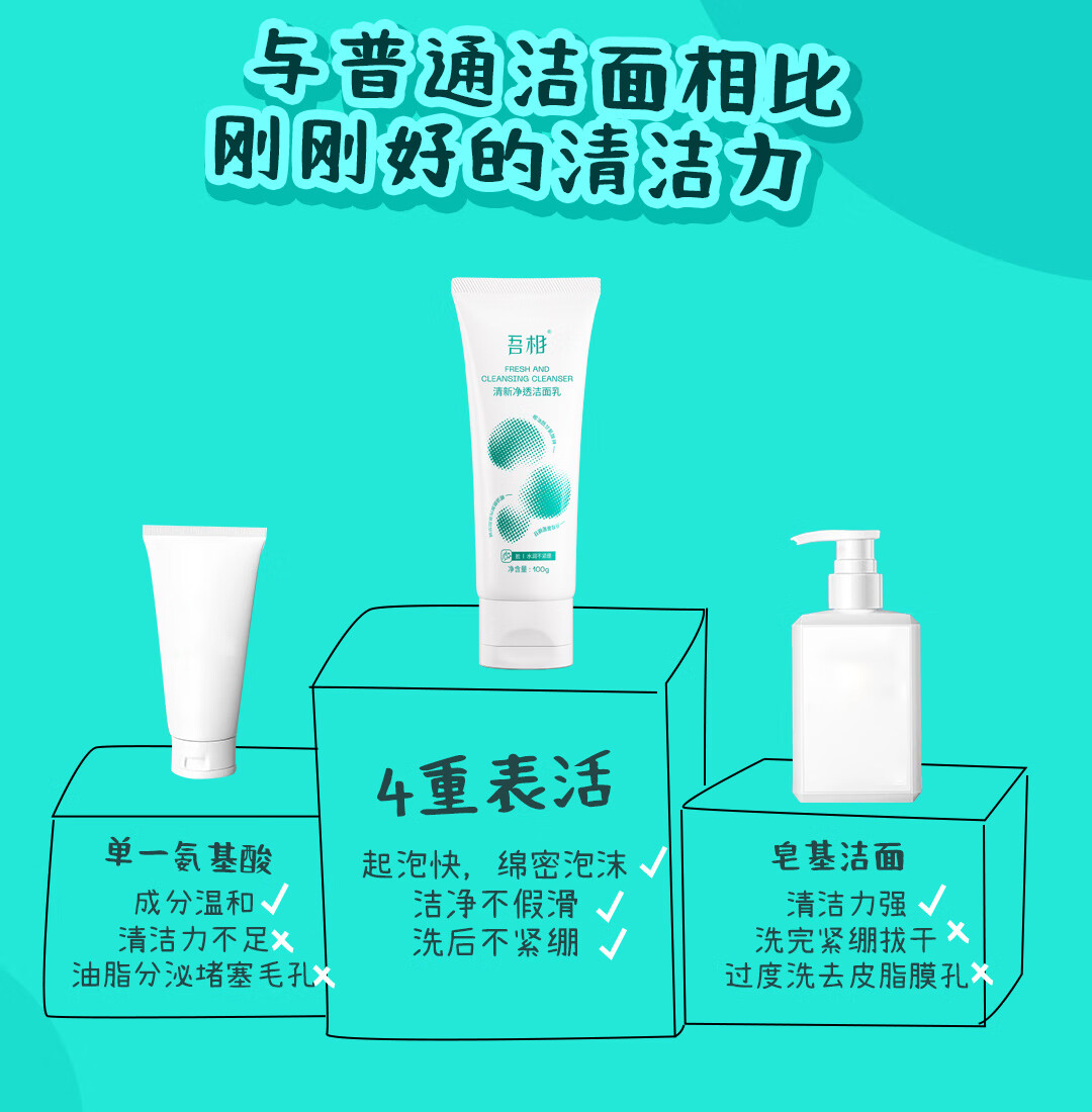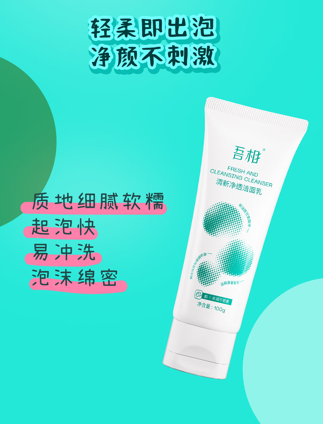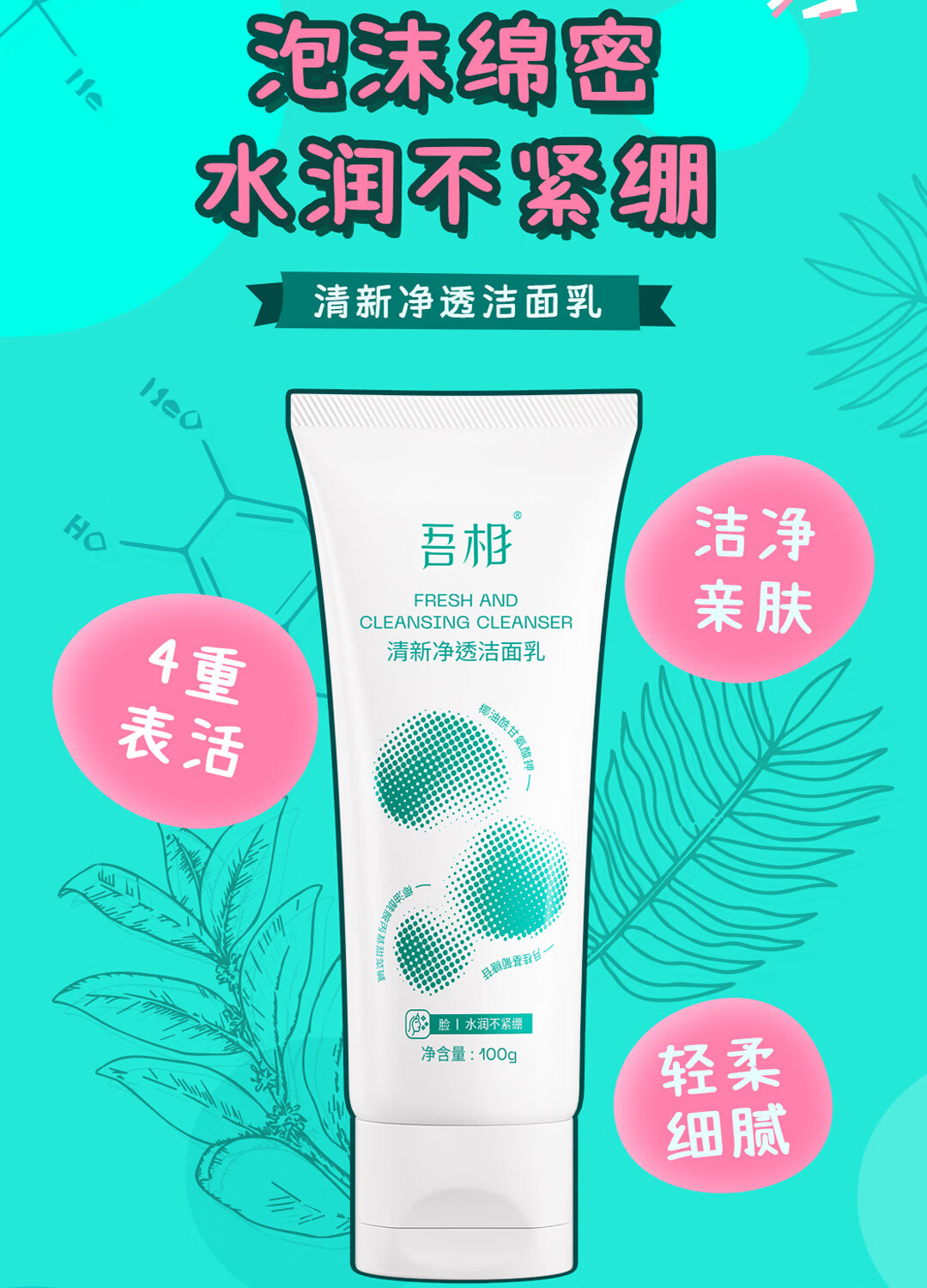 吾相氨基酸洗面奶女敏感肌水润清洁毛孔学生清爽男士泡沫洁面乳100g 100