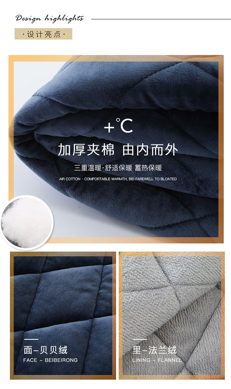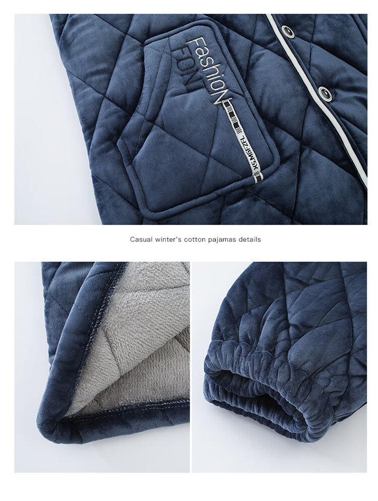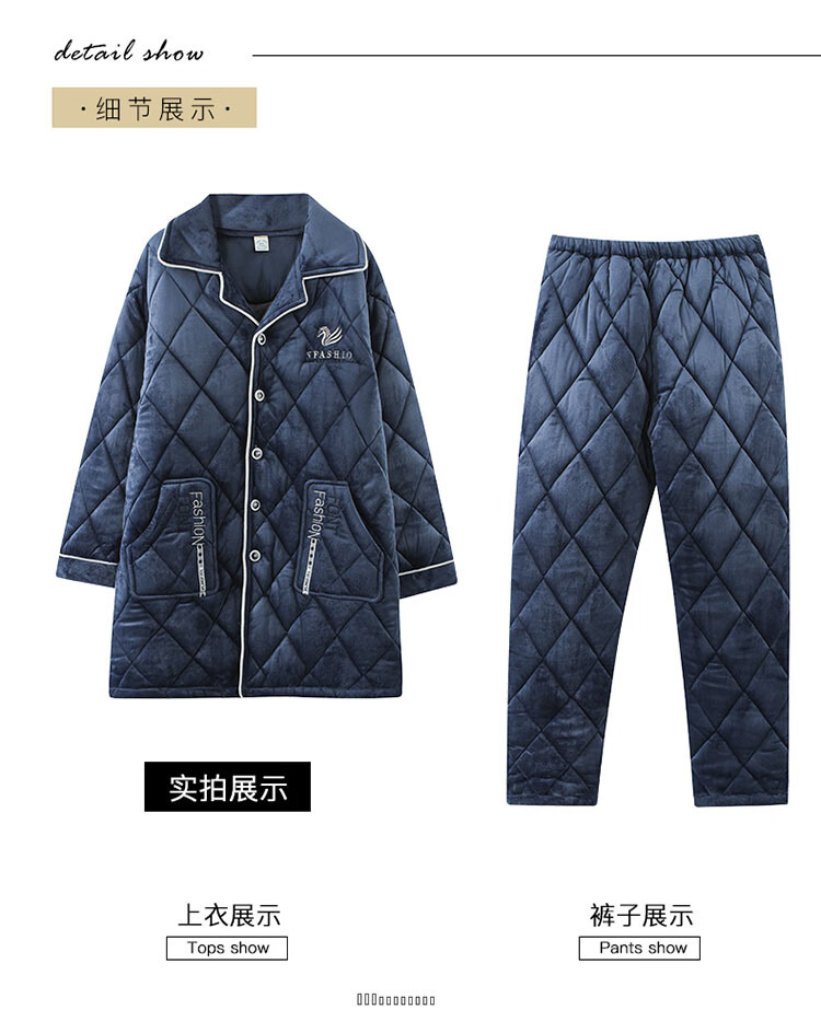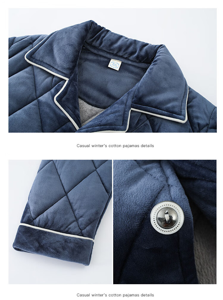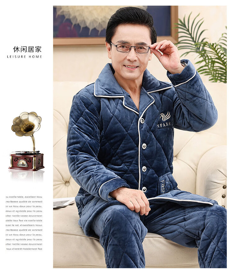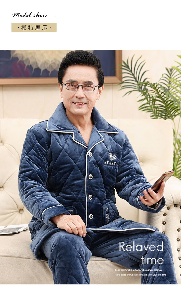LangSha男士睡衣秋冬季珊瑚绒三层加厚夹棉中长款超厚爸爸保暖加绒家居服 1815 L