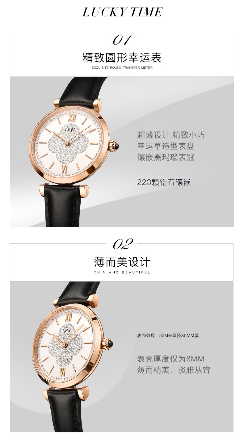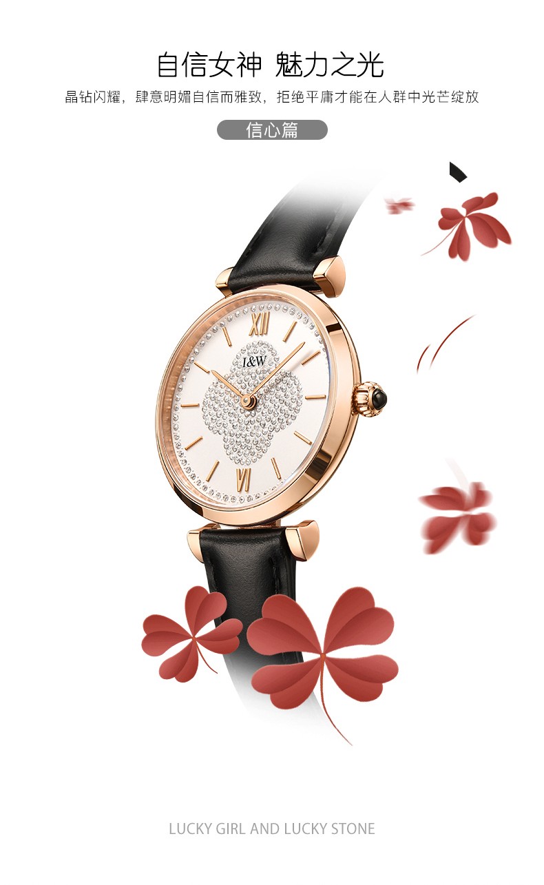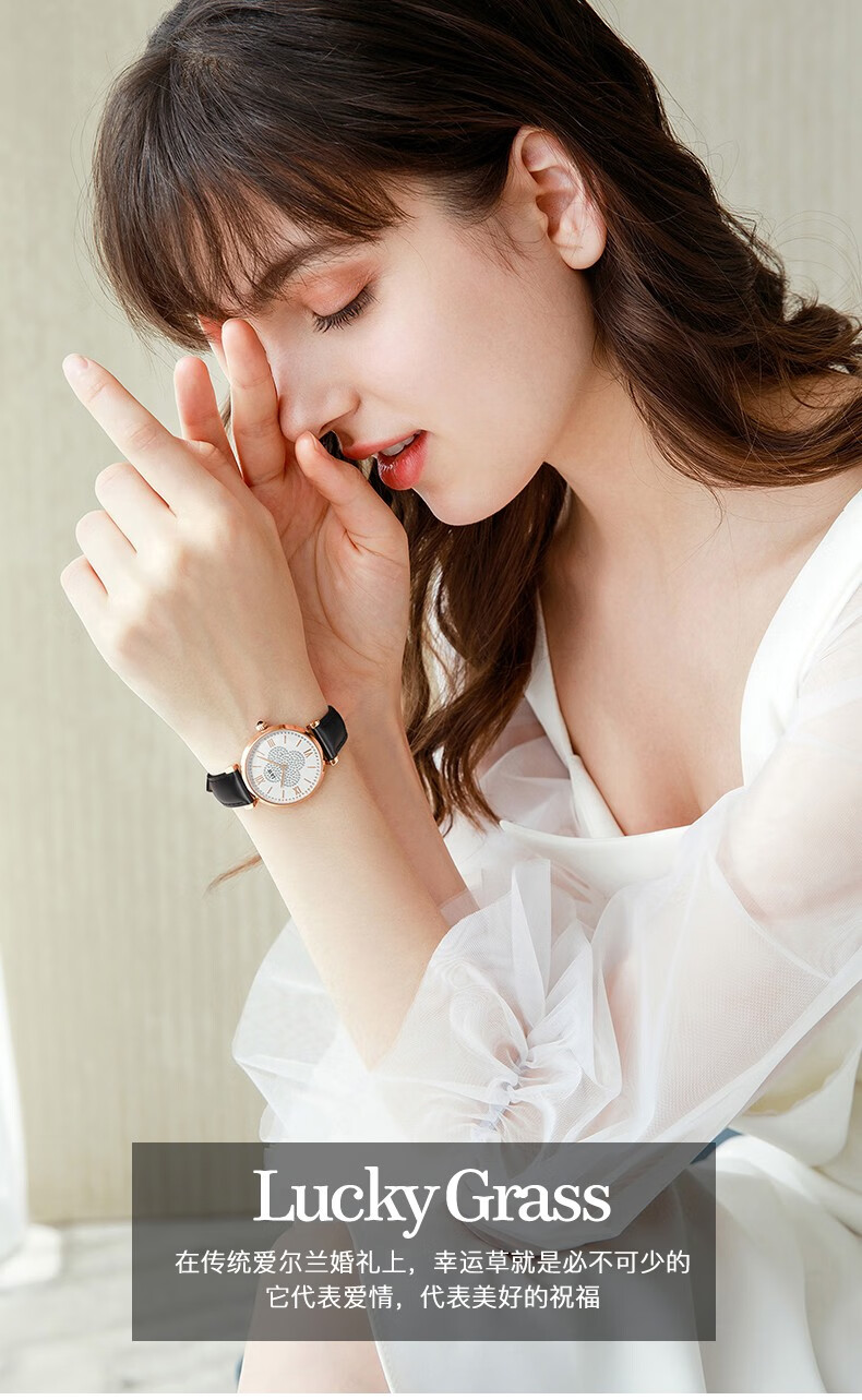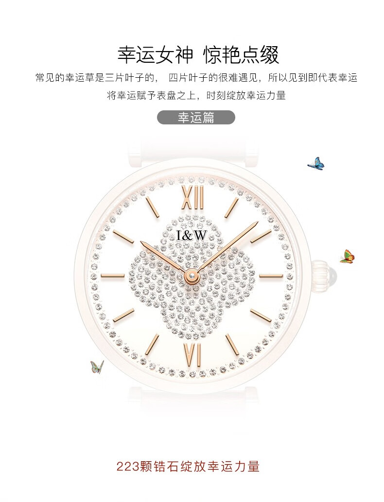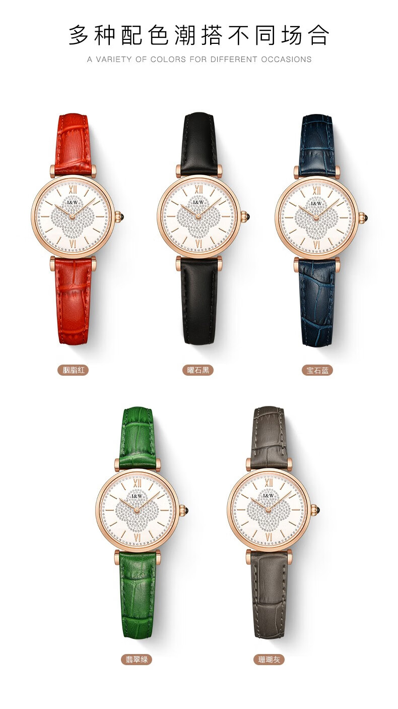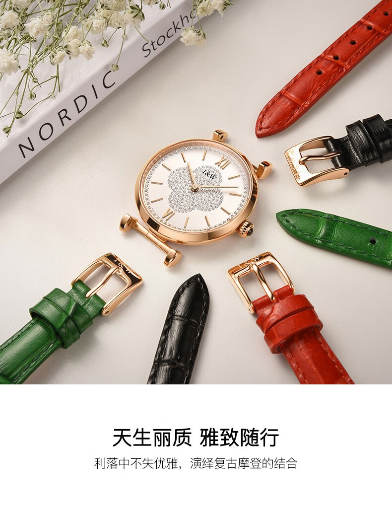 爱沃驰瑞士幸运草系列时尚防水石英手表女士表七夕生日礼物送女友 胭脂红竹纹皮|电池寿命约5年