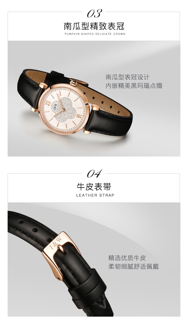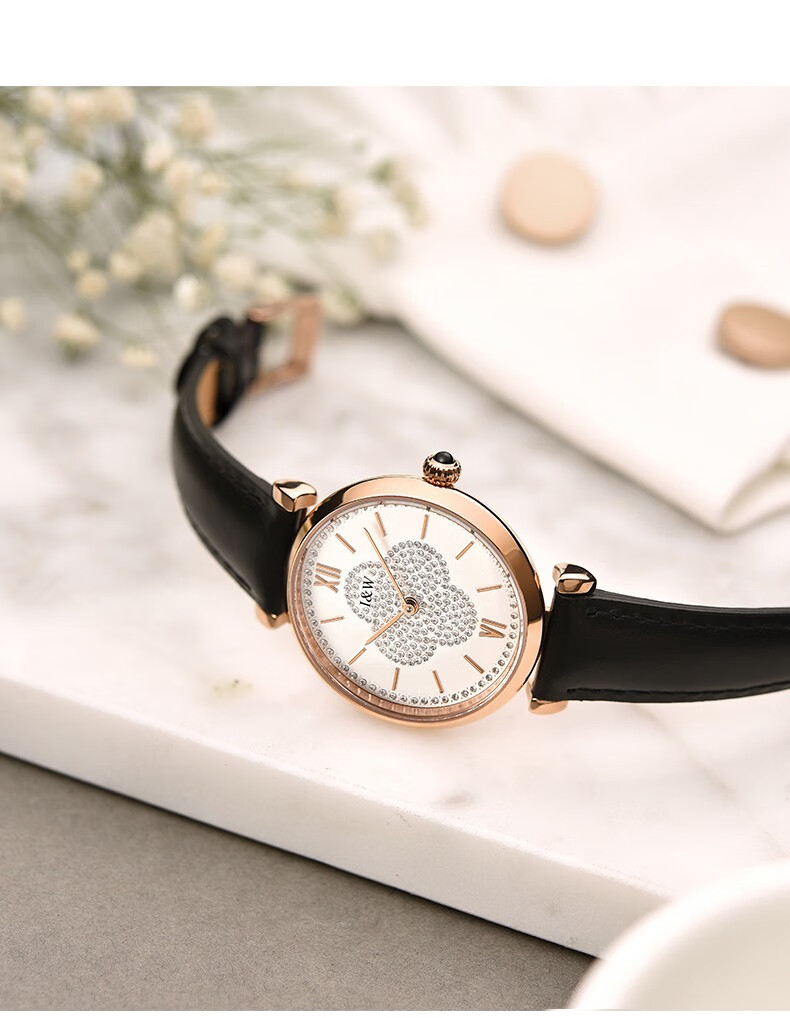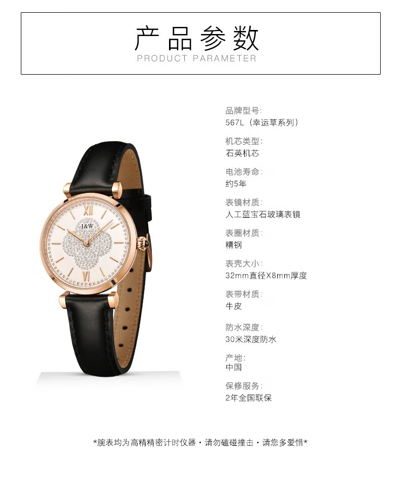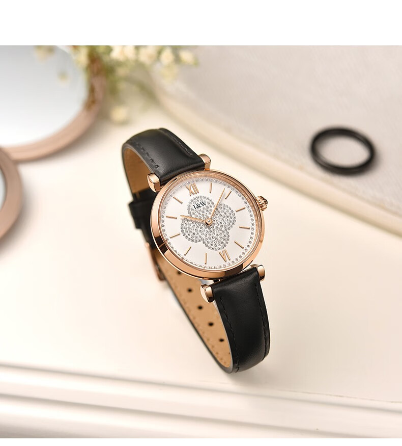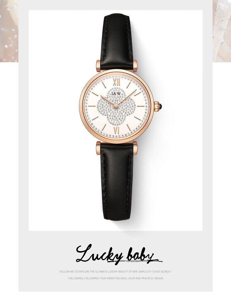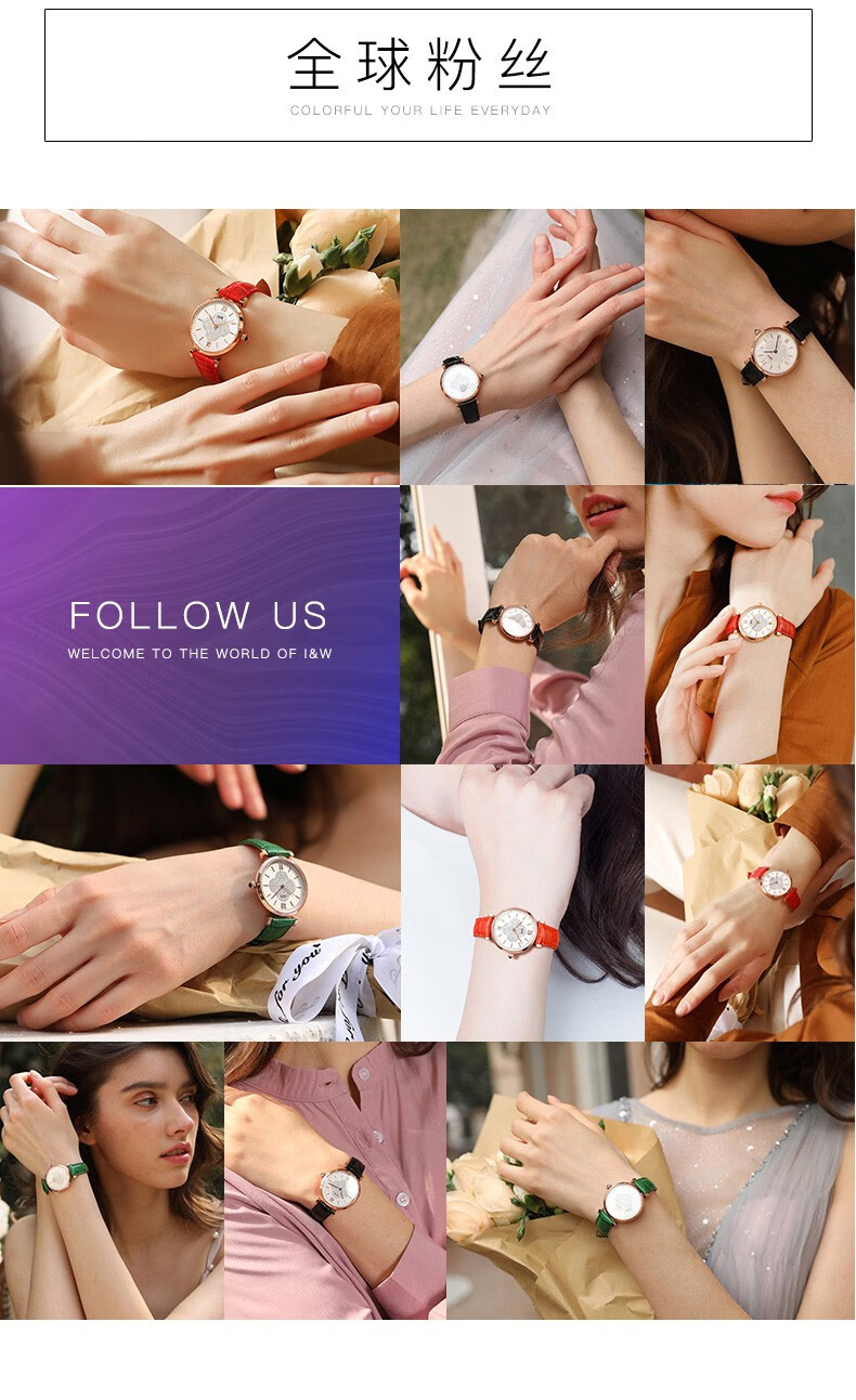 爱沃驰瑞士幸运草系列时尚防水石英手表女士表七夕生日礼物送女友 胭脂红竹纹皮|电池寿命约5年