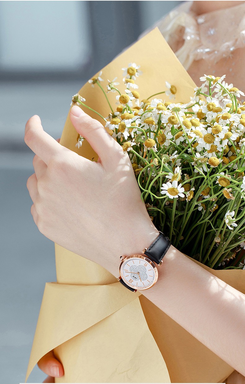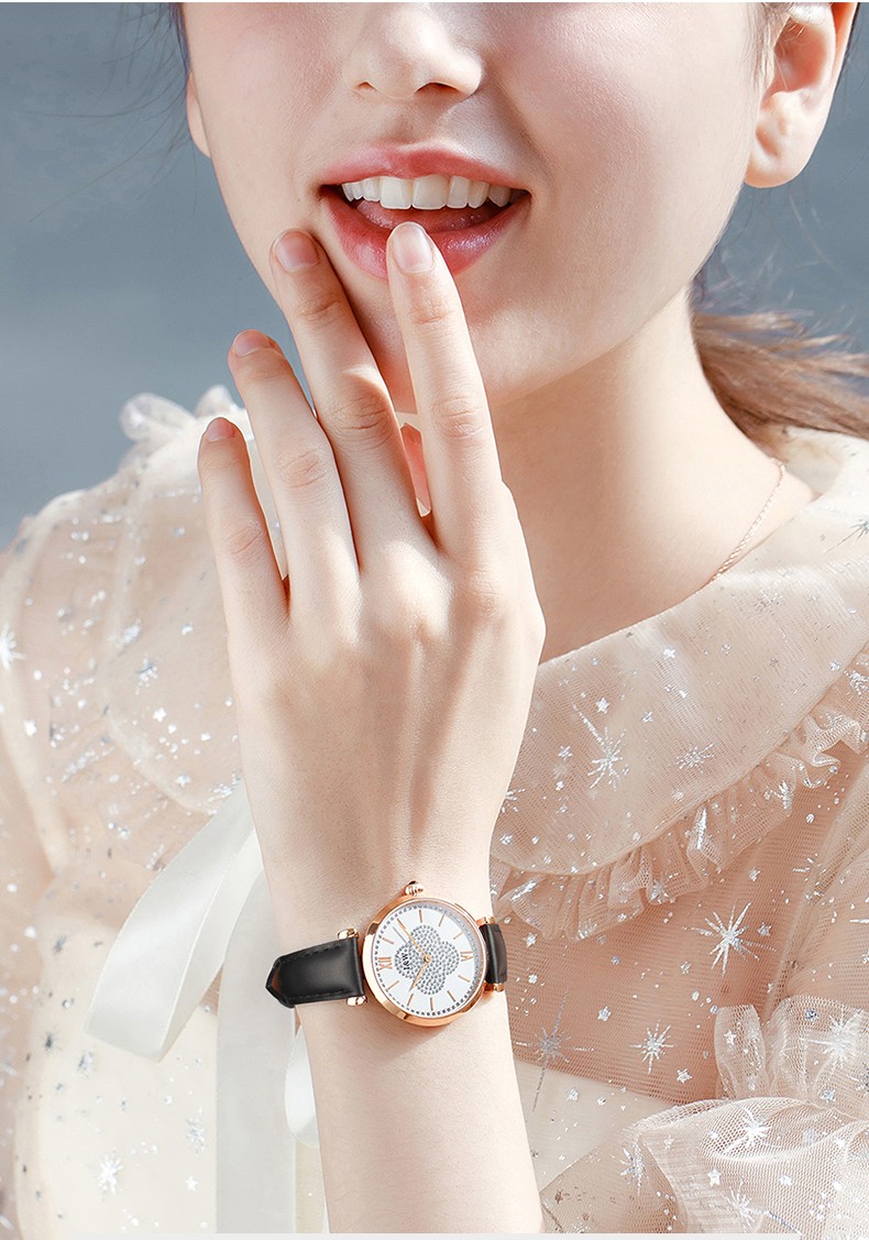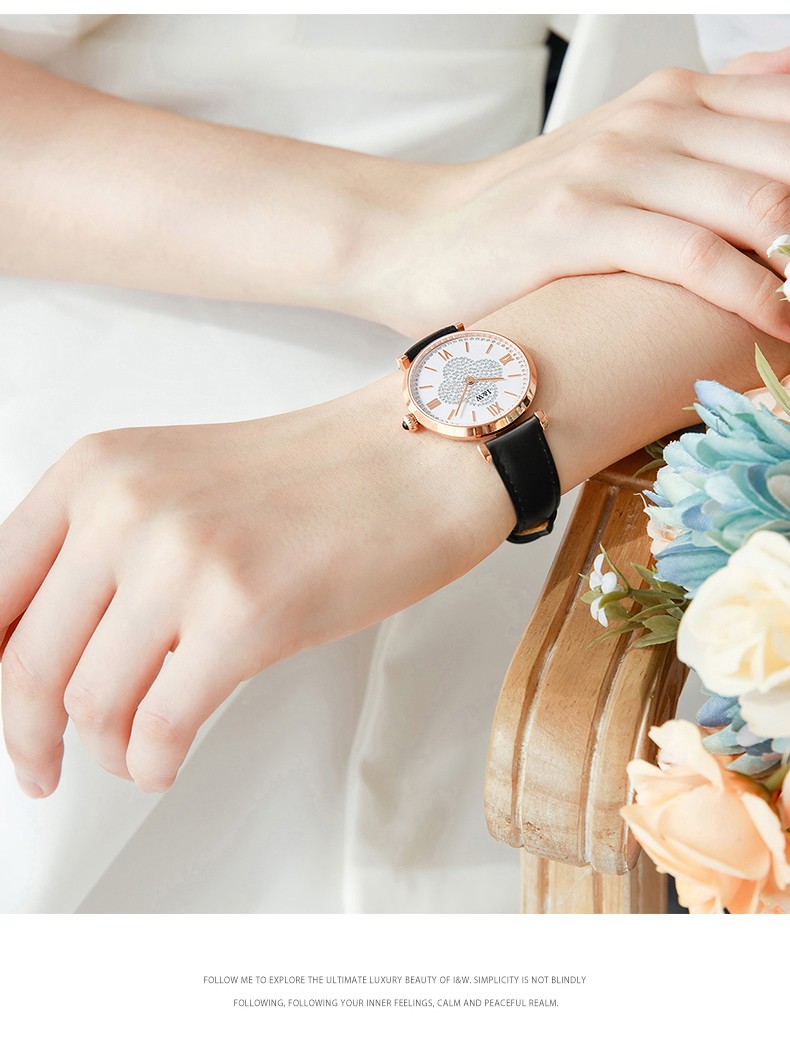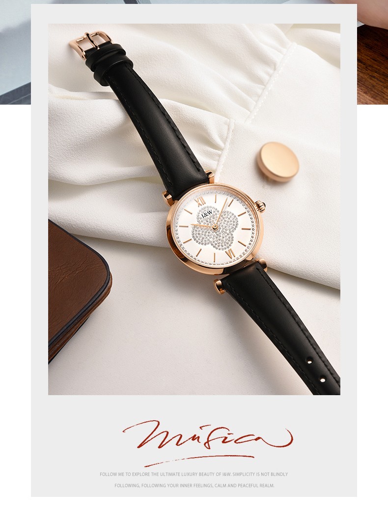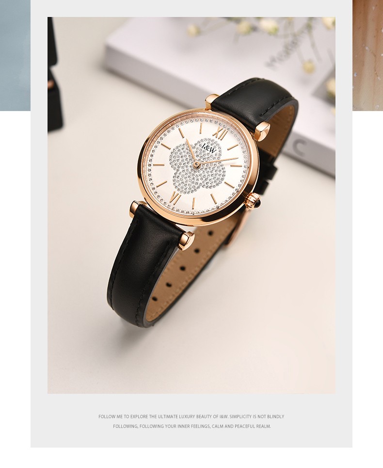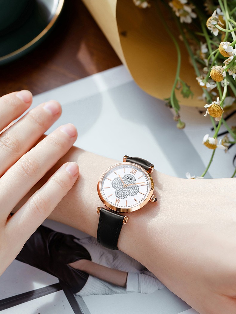 爱沃驰瑞士幸运草系列时尚防水石英手表女士表七夕生日礼物送女友 胭脂红竹纹皮|电池寿命约5年