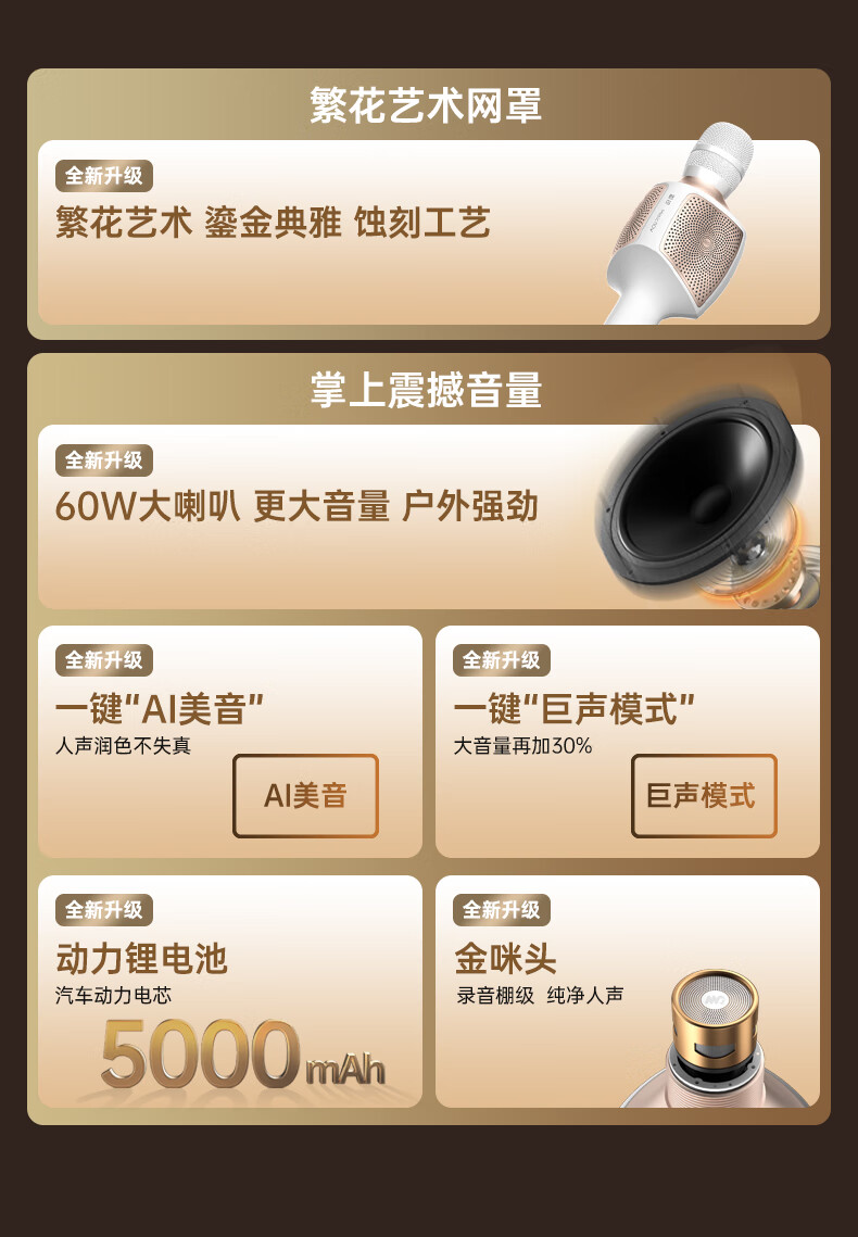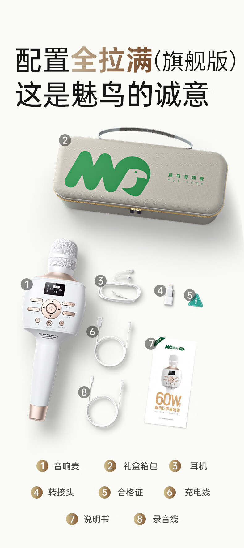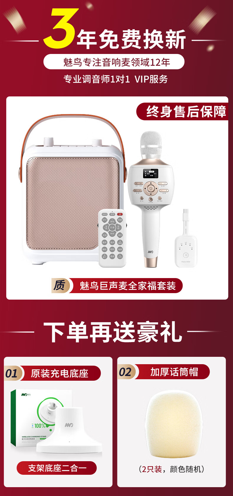 魅鸟 巨声音响麦60W话筒音响一体麦克风家用全民电视k歌车载唱歌无线蓝牙手机直播录音声卡设备套装 巨声音响麦旗舰豪华版【3年换新】+豪华大礼包