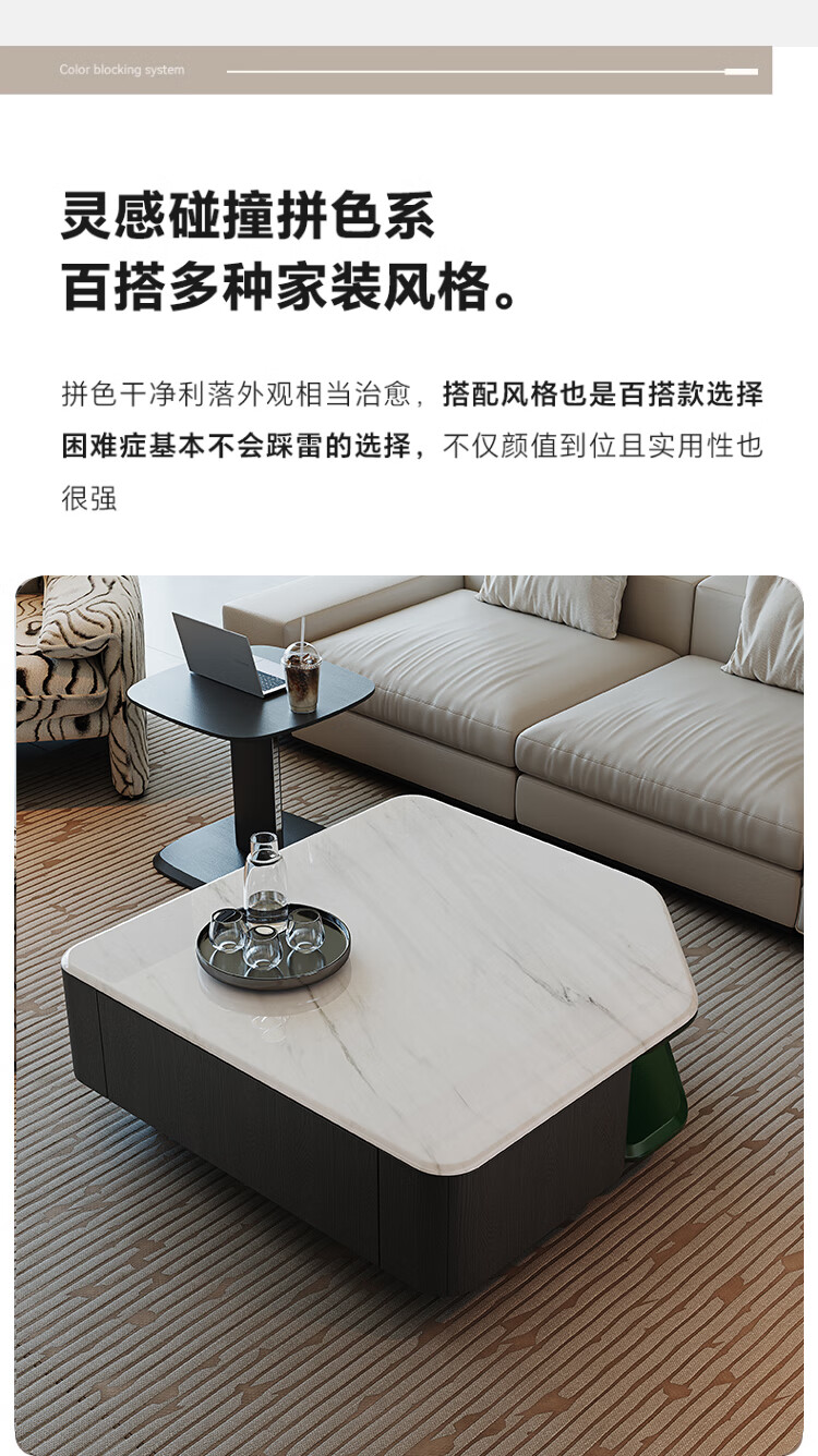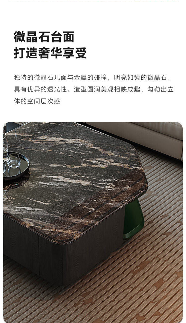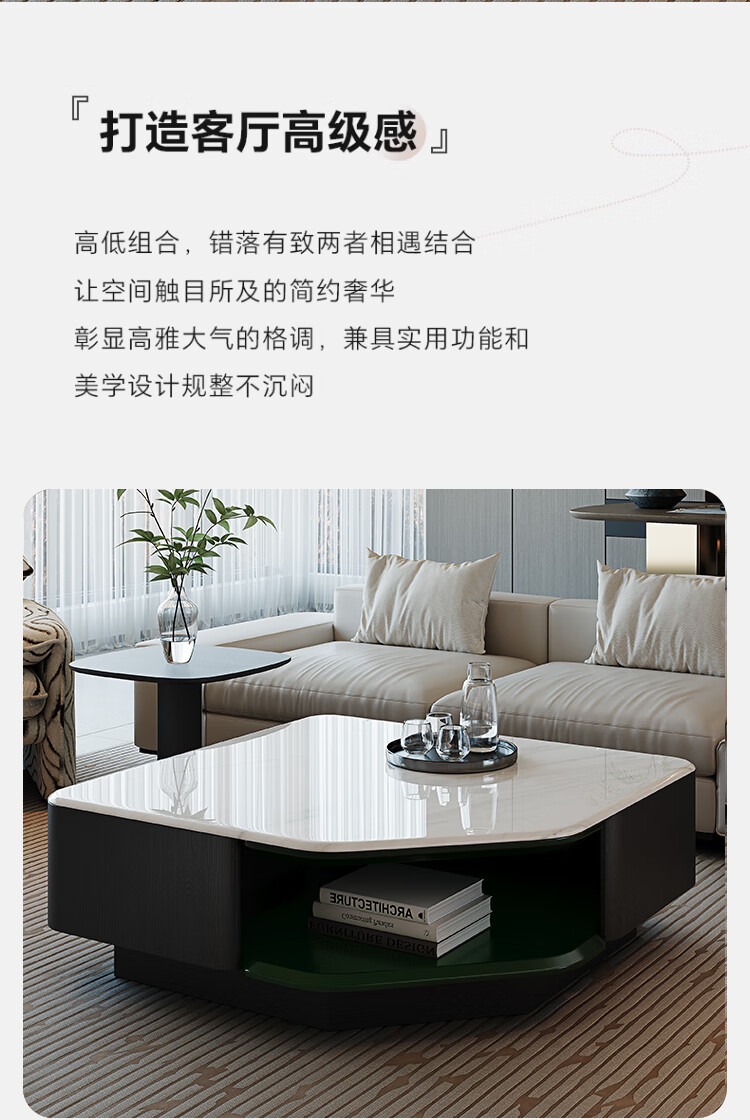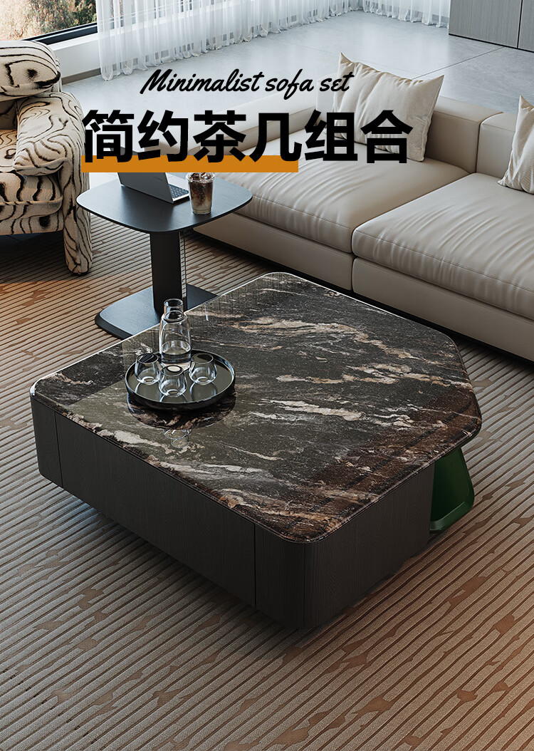 布特莱顿现代意式简约微晶石方形茶几边几组合客厅高级设计师家用大小茶几 0.85M方茶几