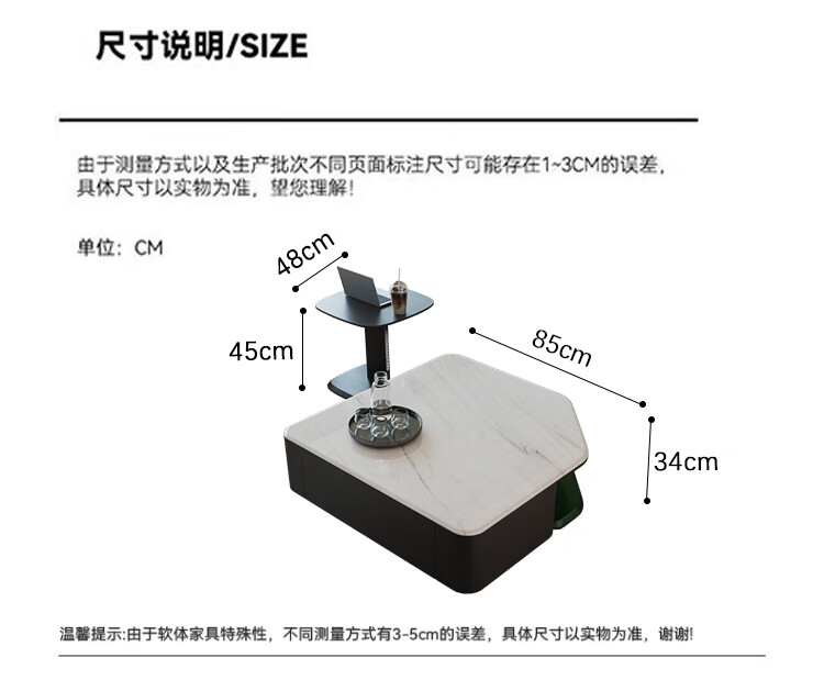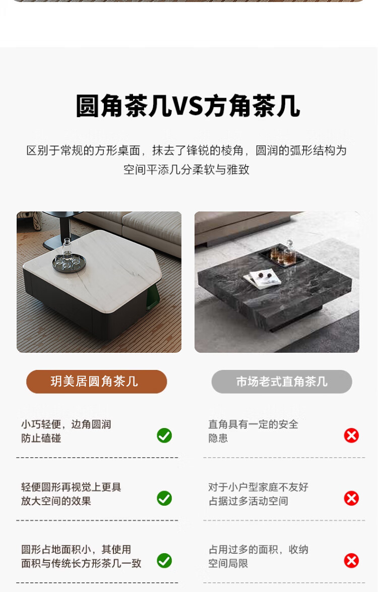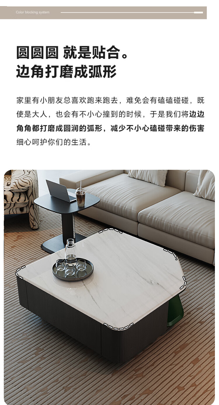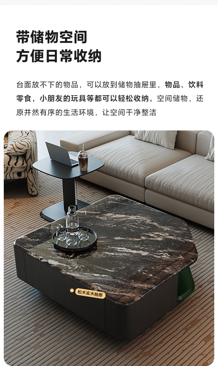 布特莱顿现代意式简约微晶石方形茶几边几组合客厅高级设计师家用大小茶几 0.85M方茶几