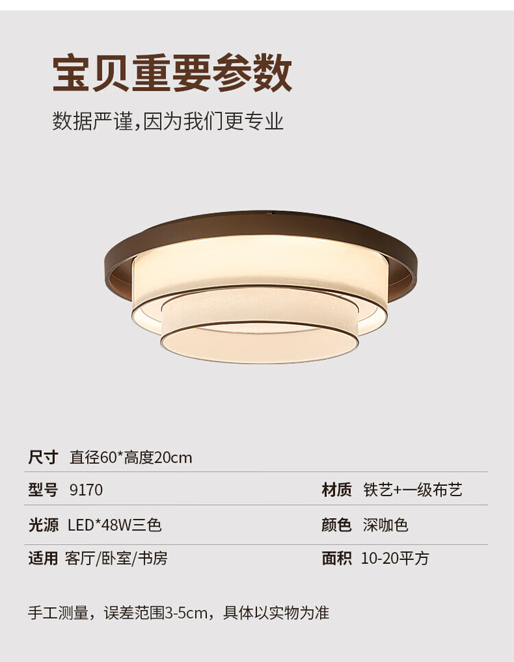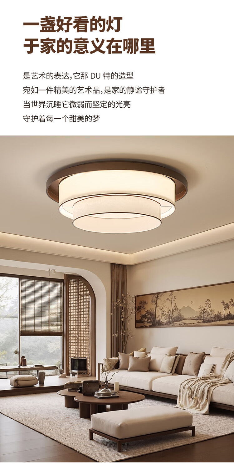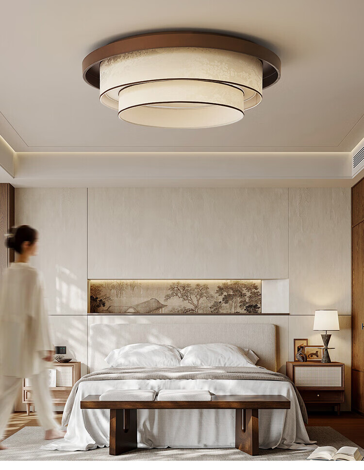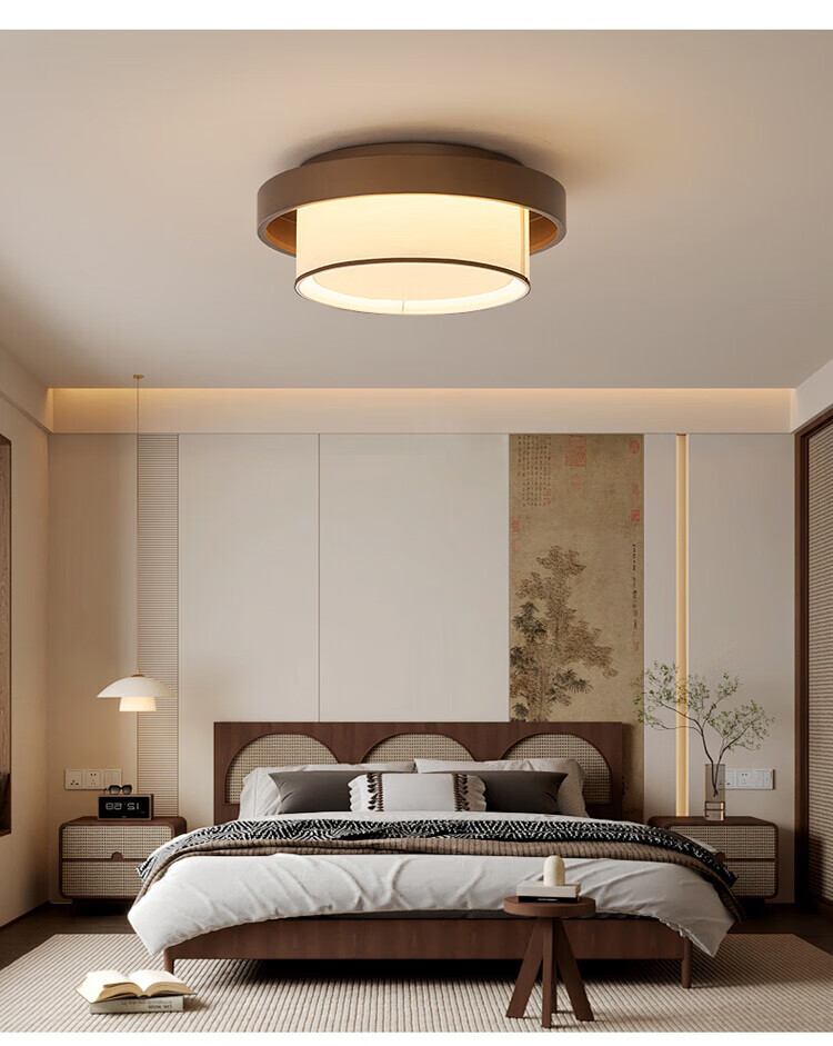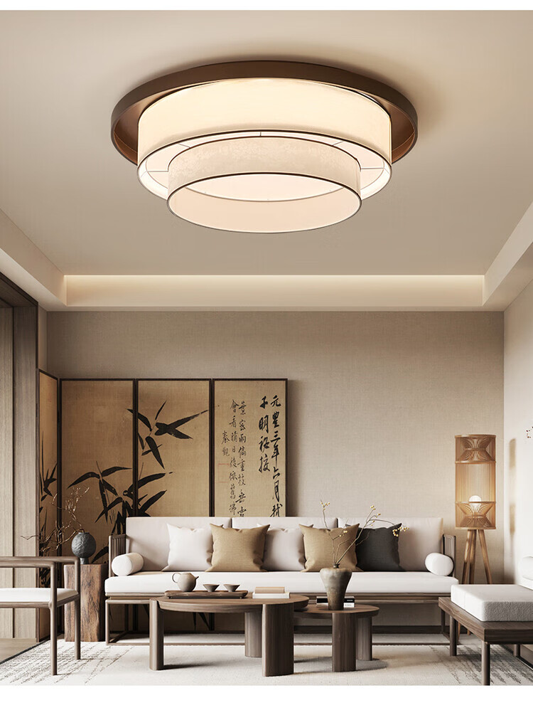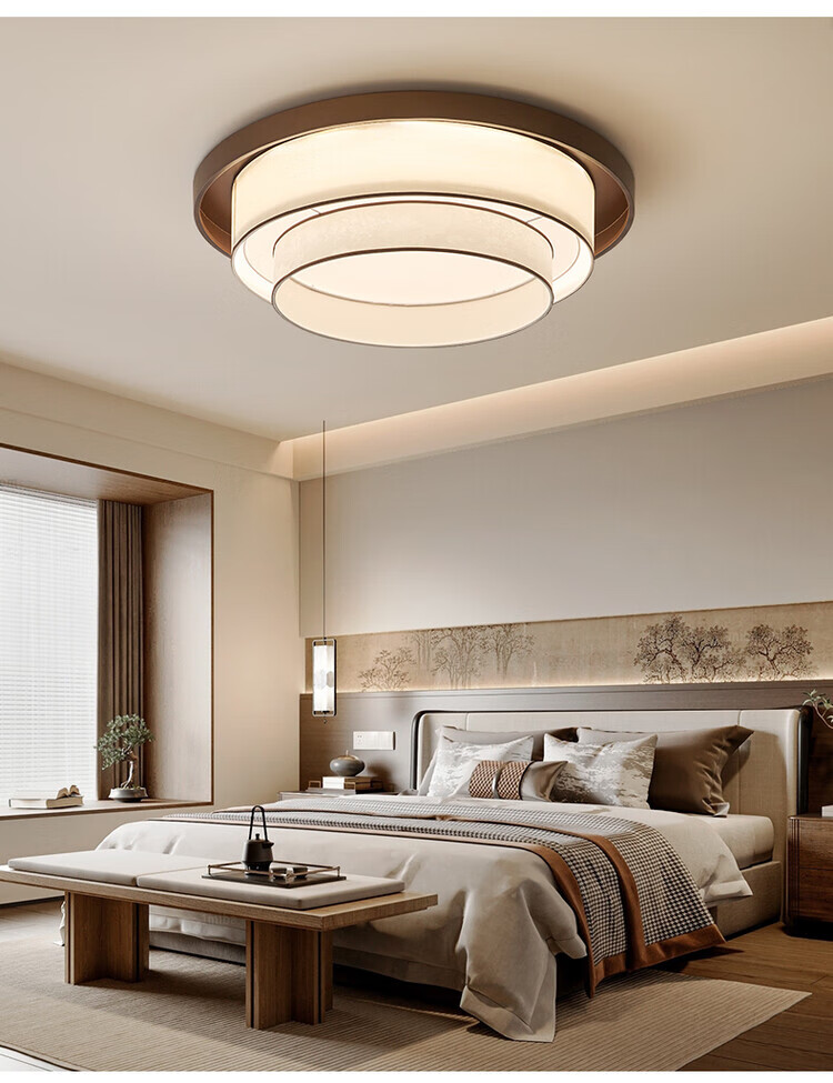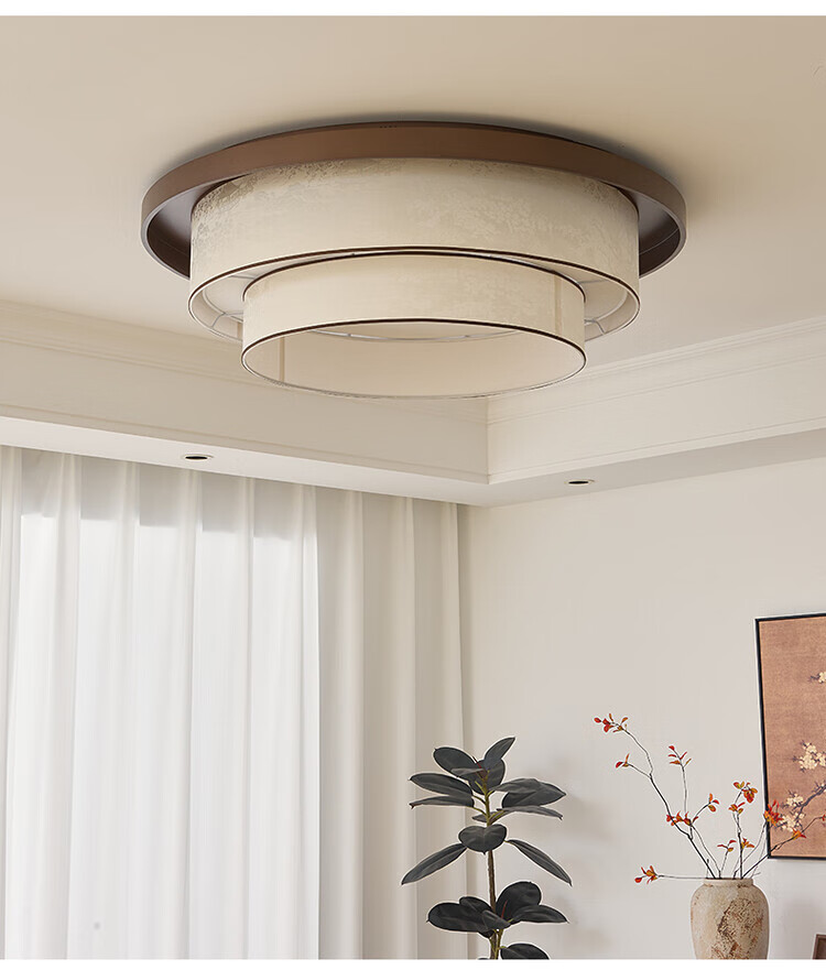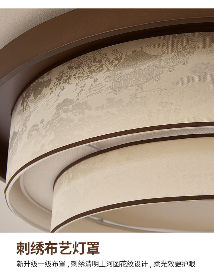 大自然照明中古风复古客厅吊灯2025新款布艺宋式美学高级感大厅主灯中山灯具 【全光谱护眼光源】卧室 A款 三色变光