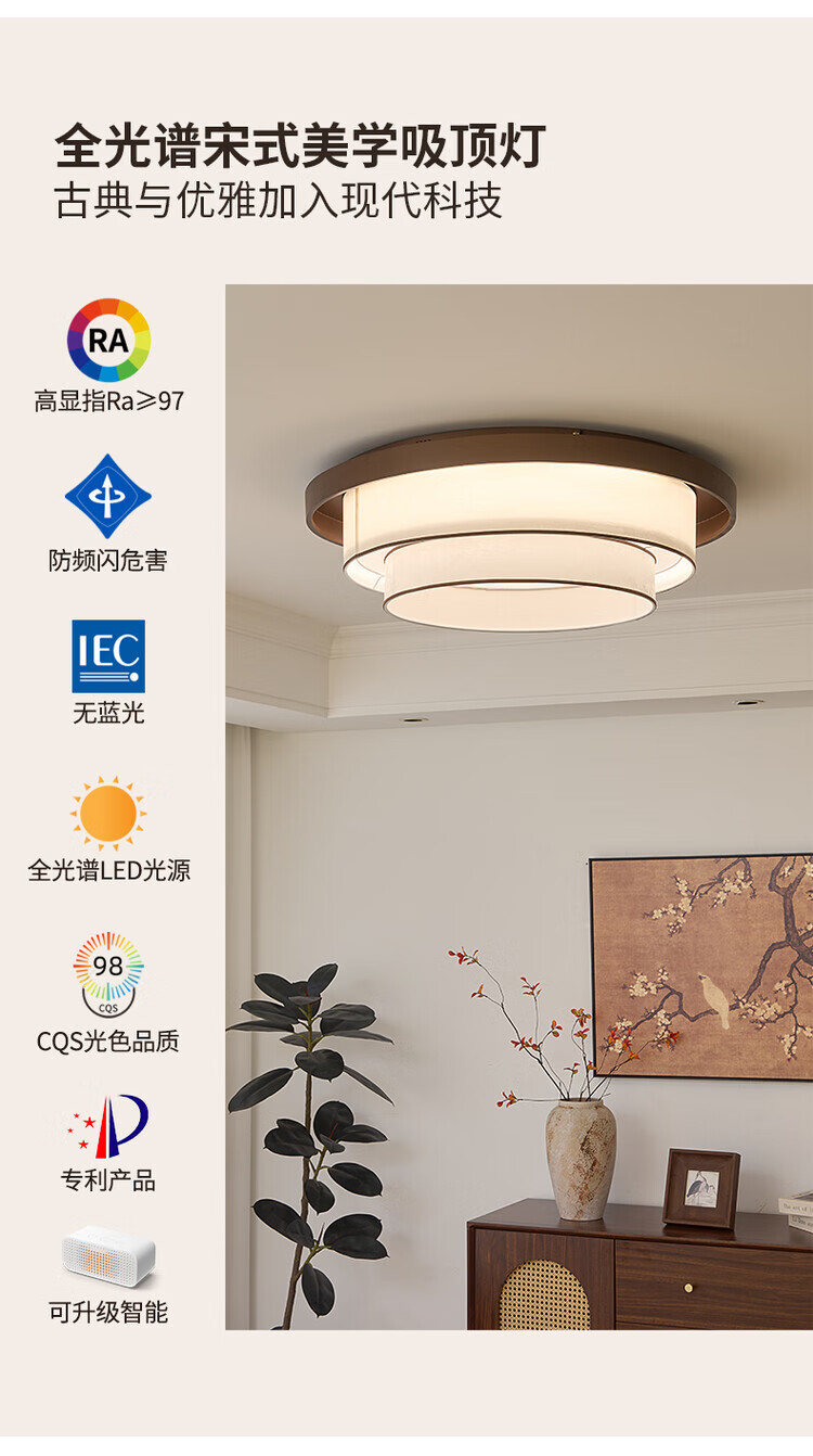 大自然照明(NATURE)宋式美学客厅吸顶灯宋代美学禅意茶室书房卧室灯复古国风卧室灯具 40cm24W三色变光
