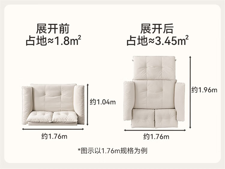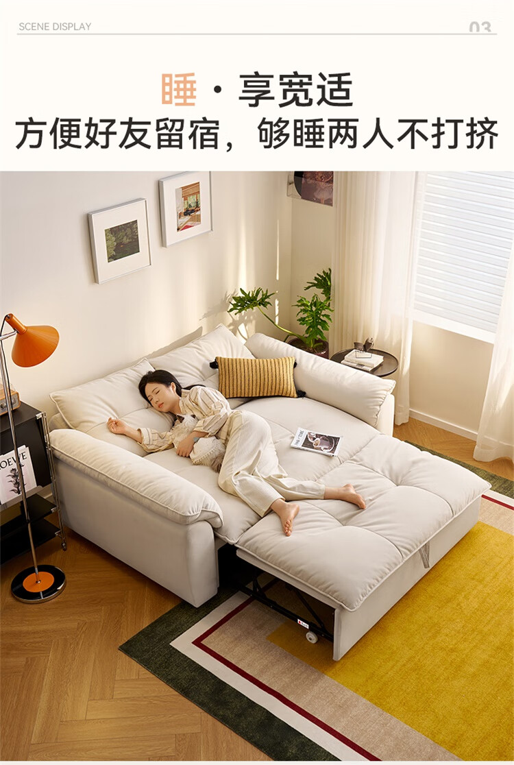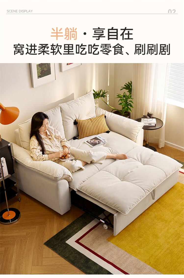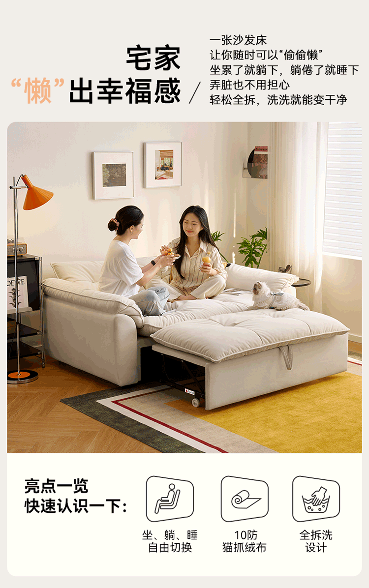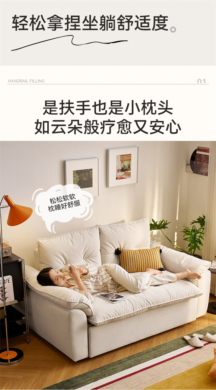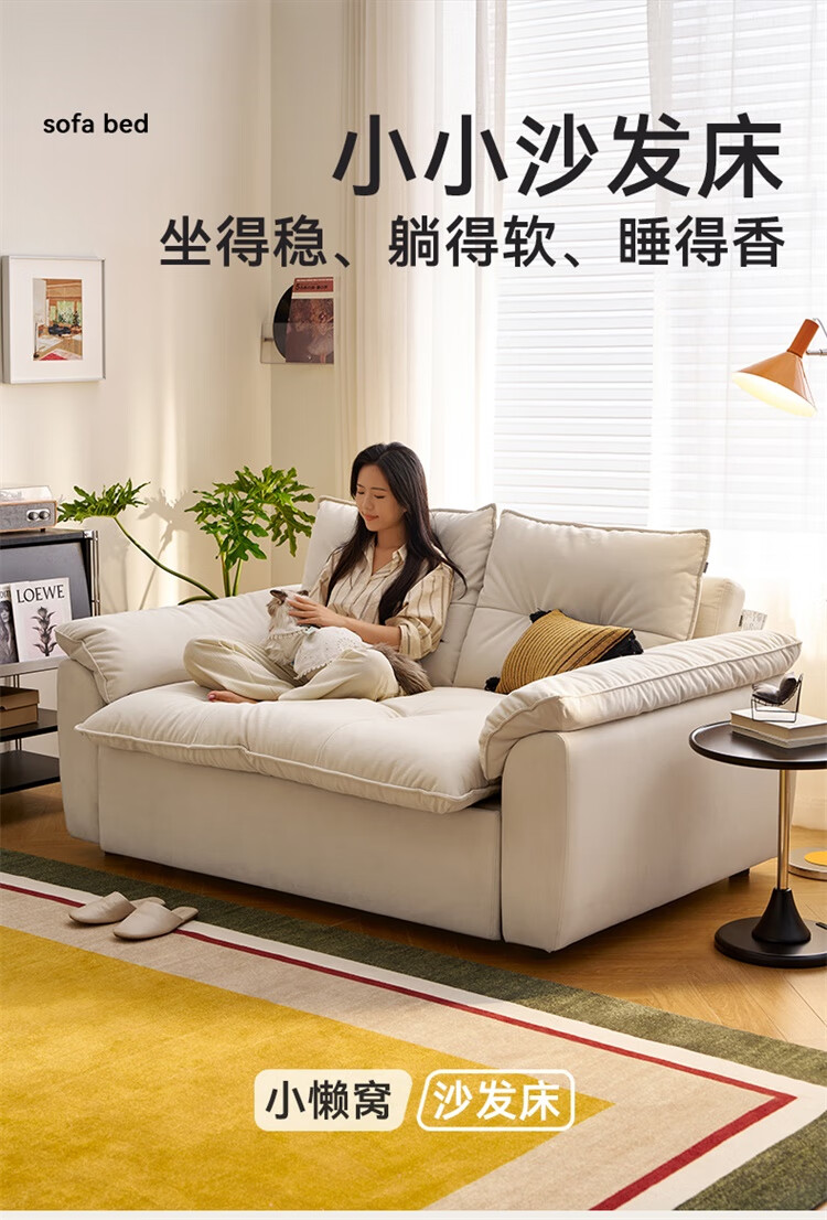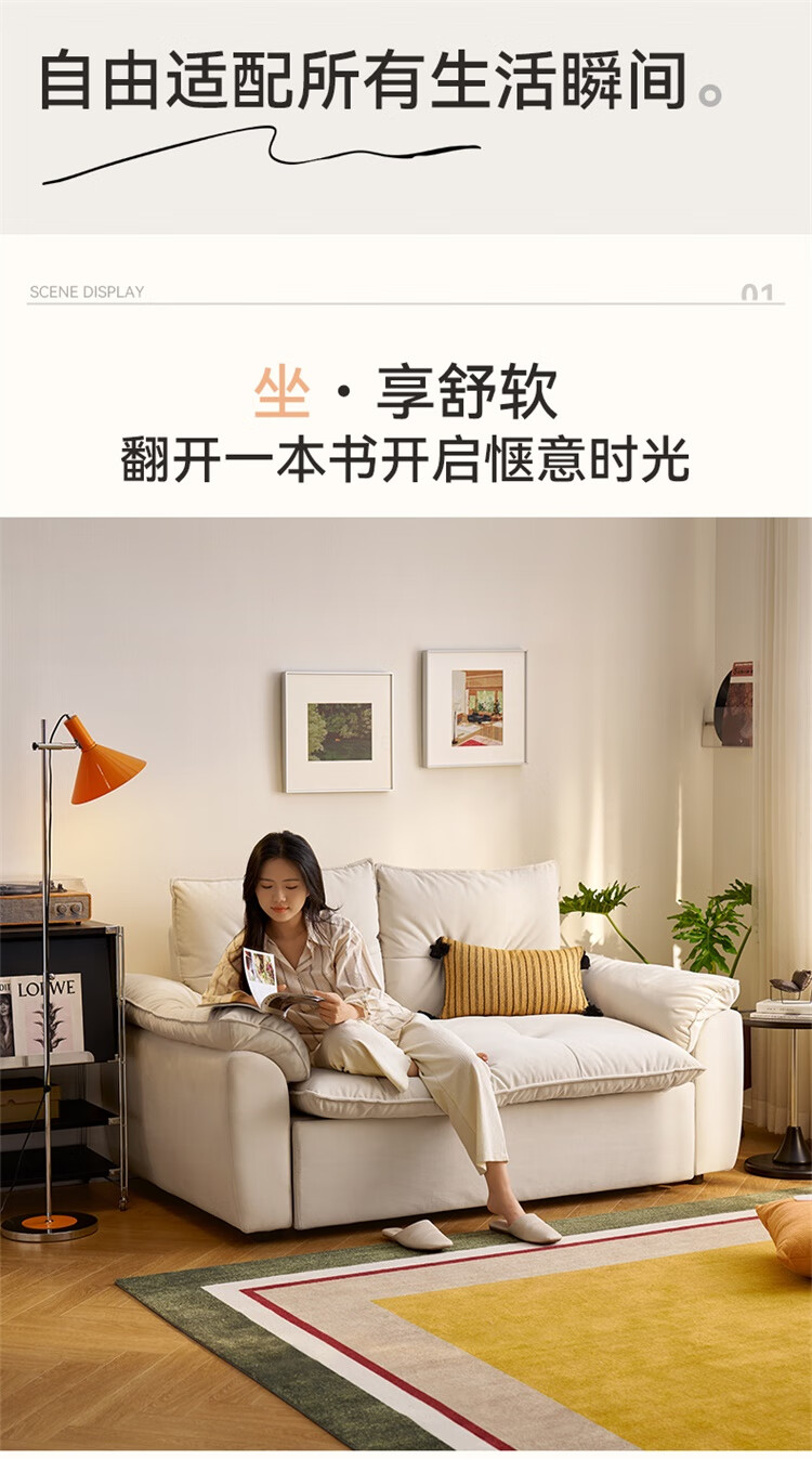 全友家居奶油风布艺沙发床可延伸懒人沙发可躺可睡全身可拆洗沙发躺椅 【奶酪白|10防猫抓绒】1.76m沙发床 4档可调+可变床+全拆洗+羽绒