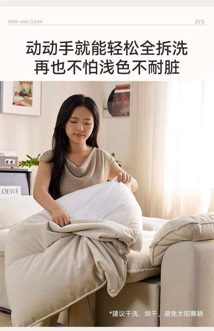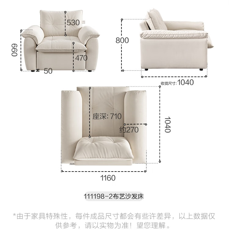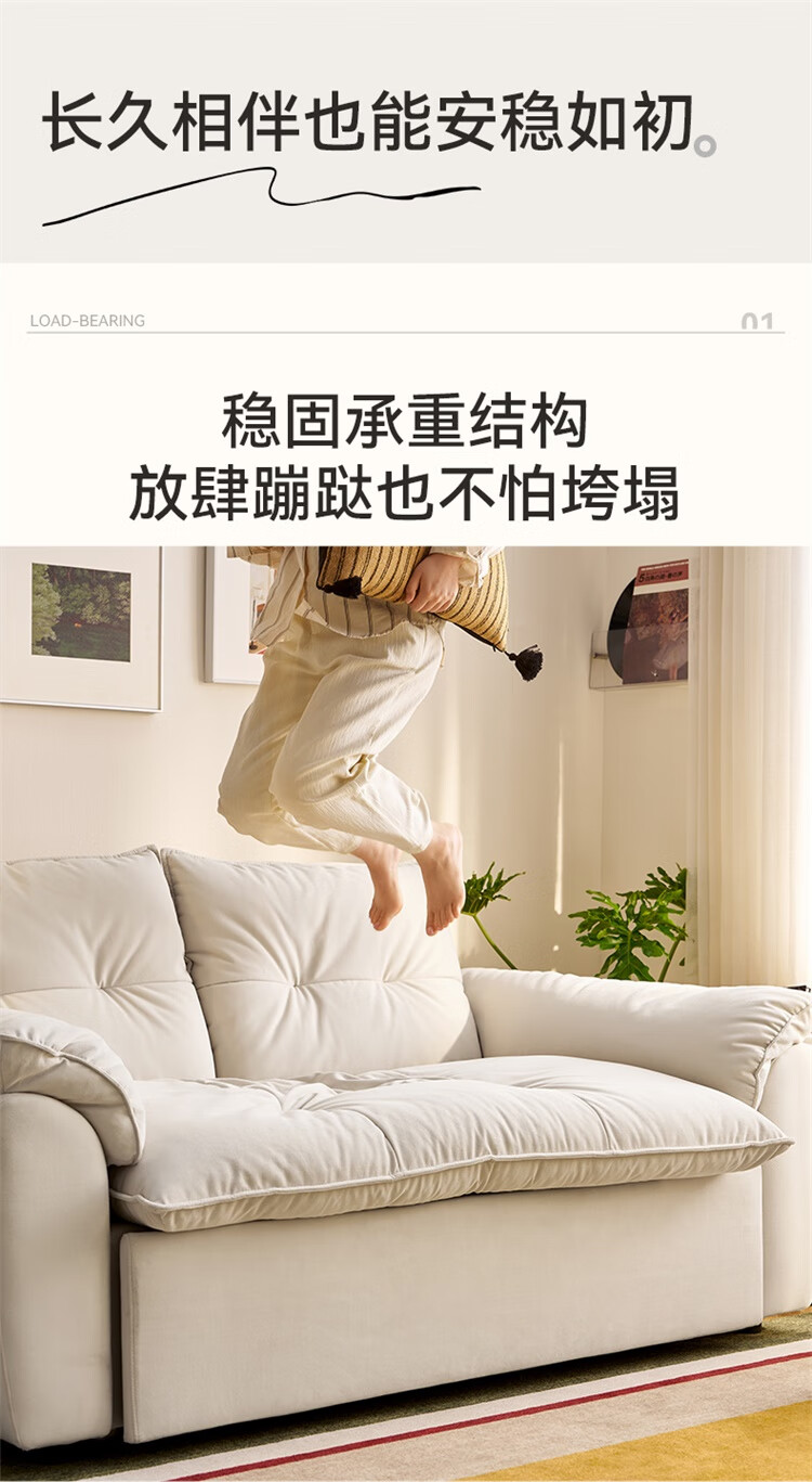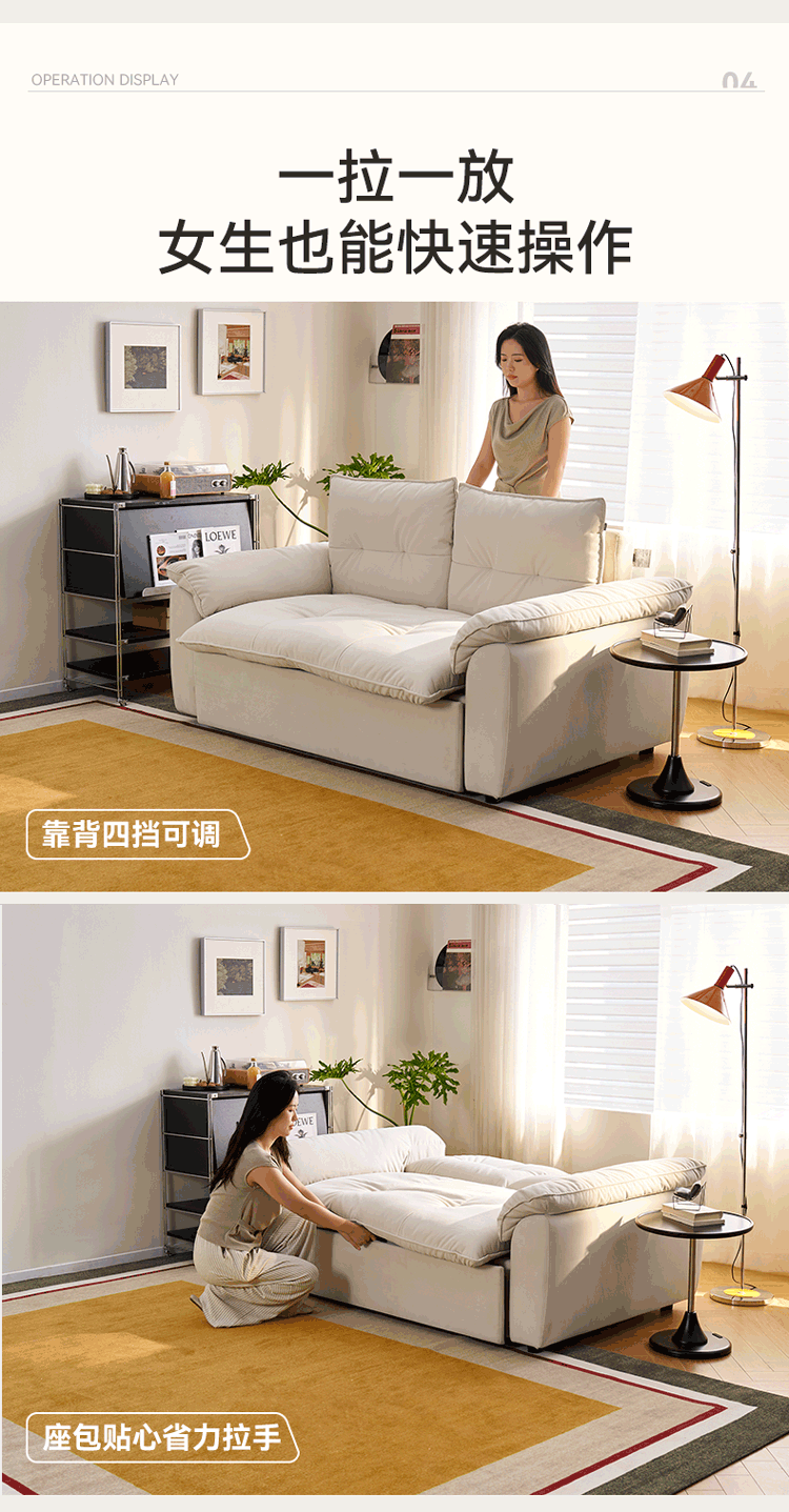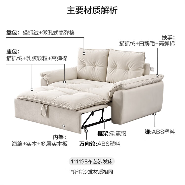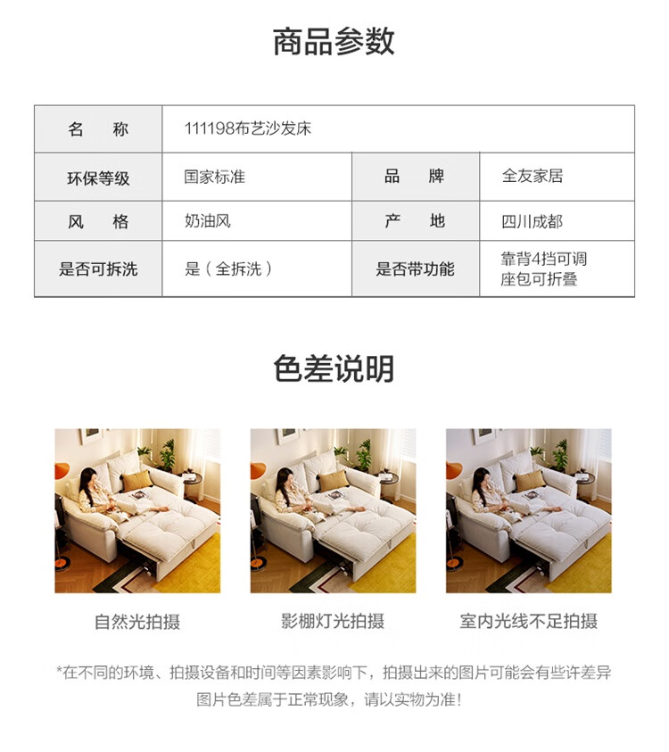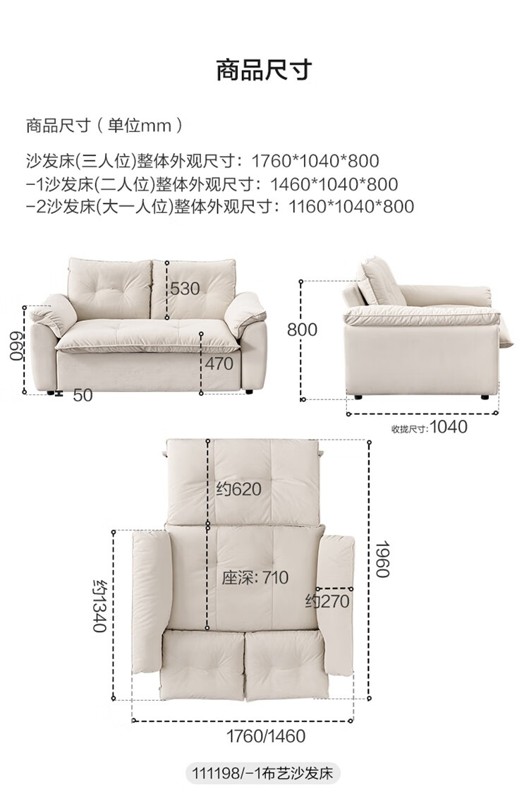 全友家居奶油风布艺沙发床可延伸懒人沙发可躺可睡全身可拆洗沙发躺椅 【奶酪白|10防猫抓绒】1.76m沙发床 4档可调+可变床+全拆洗+羽绒