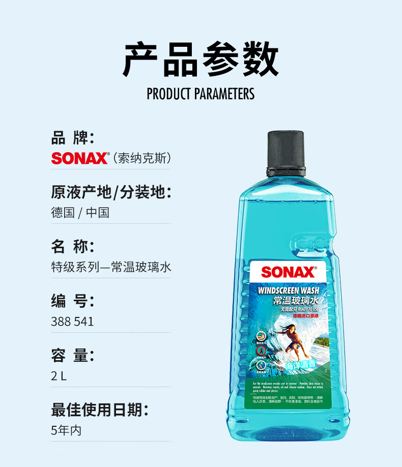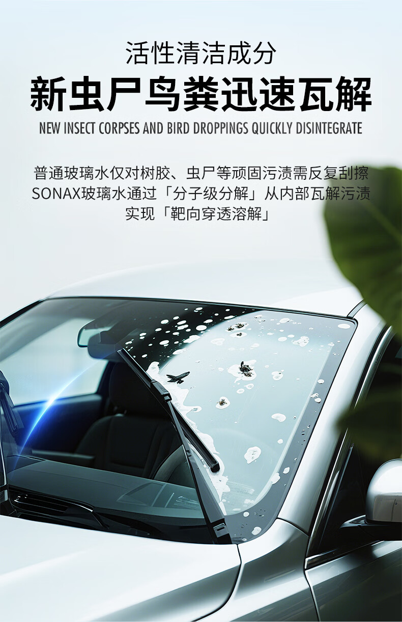 索纳克斯(SONAX)德国进口汽车玻璃水强力去污去油膜虫胶雨刷精2L大容量清洁剂 【0°C 特级系列】8L玻璃水