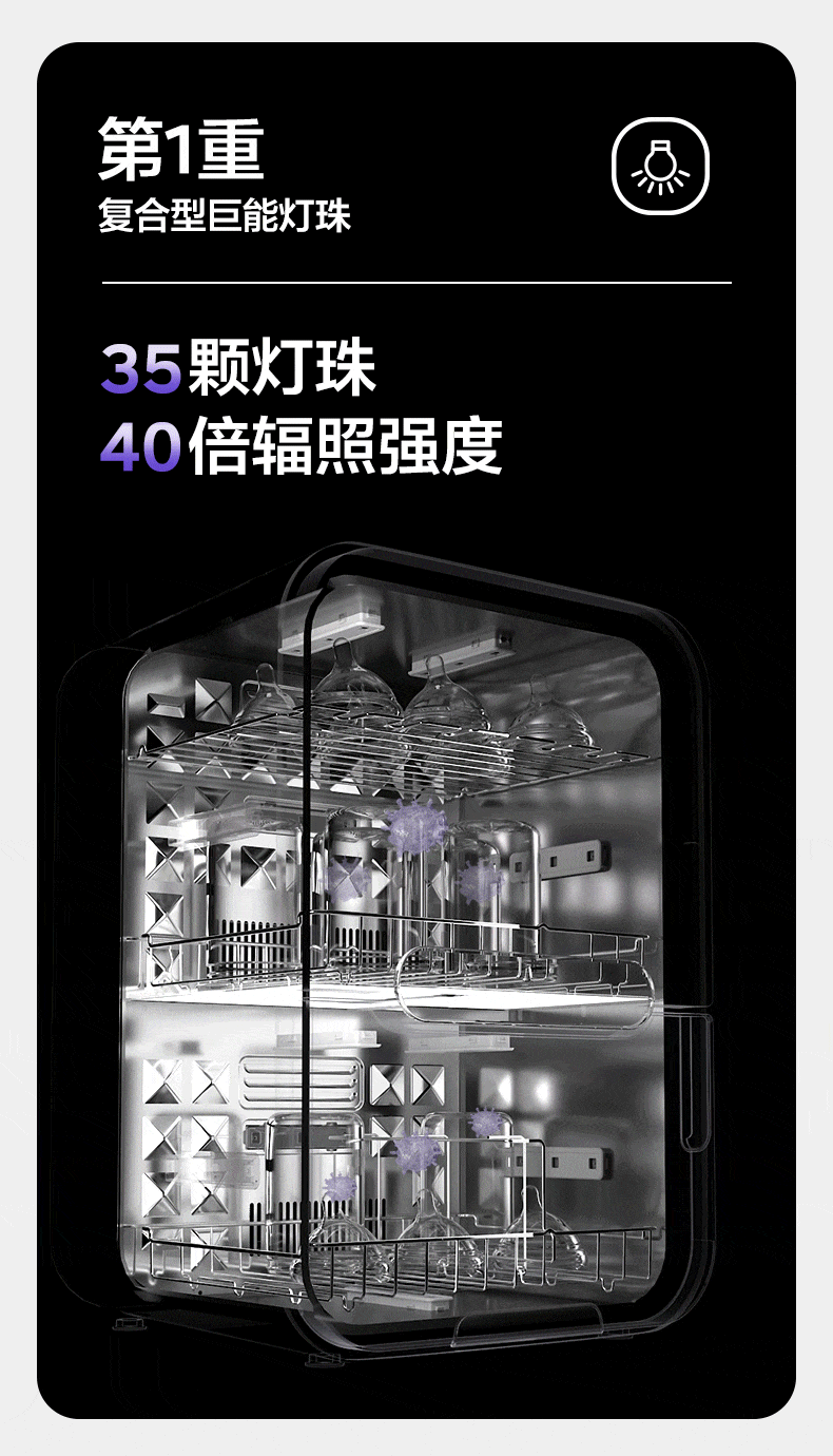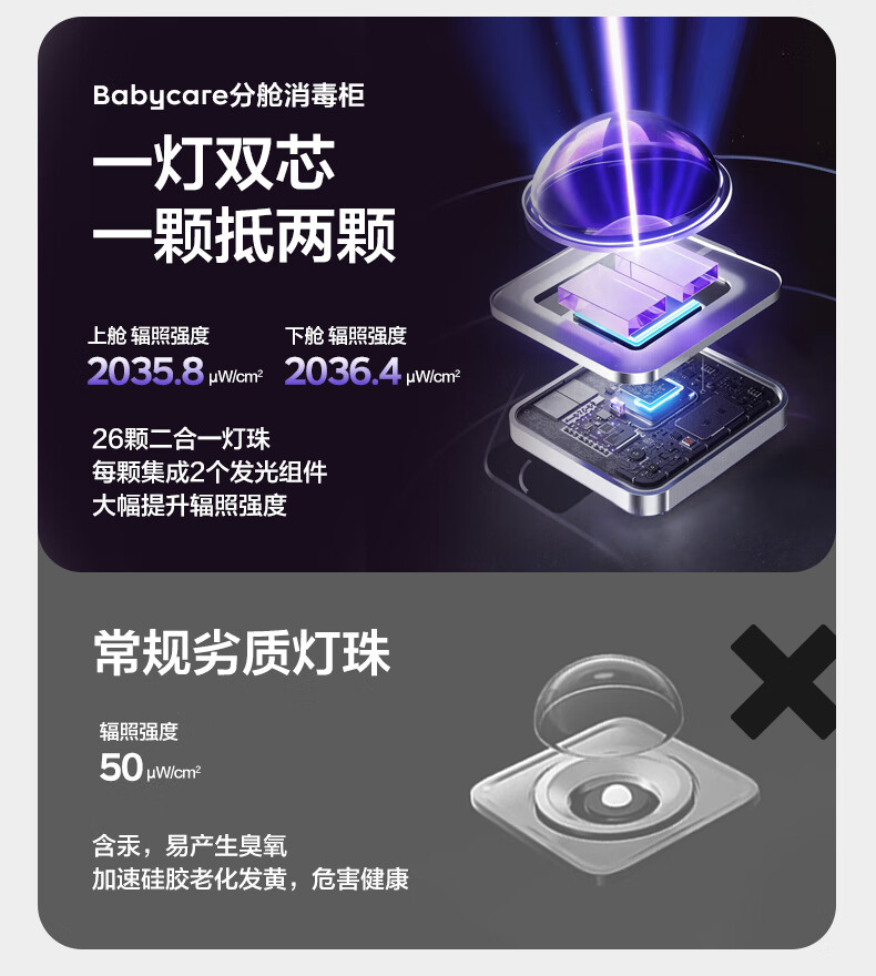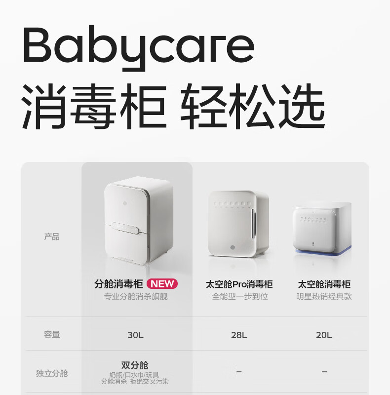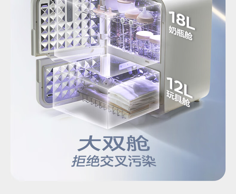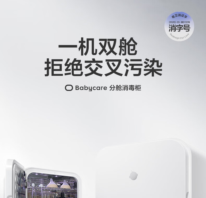 babycare分舱消毒柜 带烘干婴儿奶瓶紫外线消毒器家用 35颗灯珠 30L