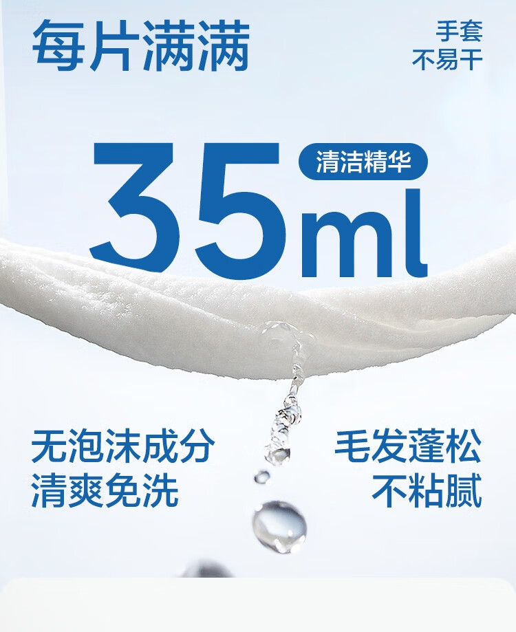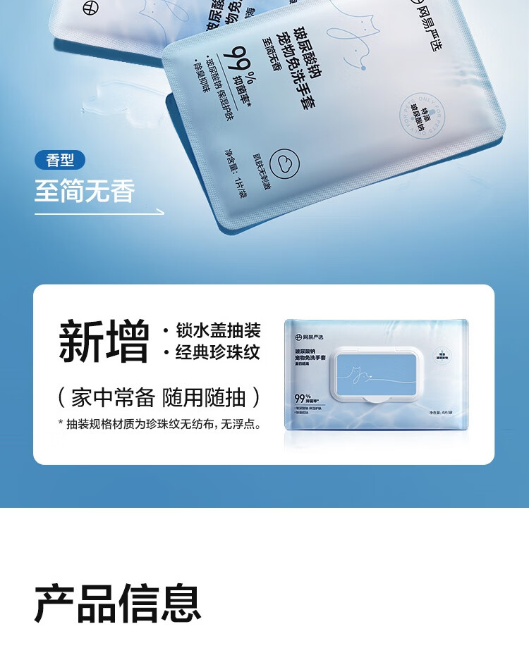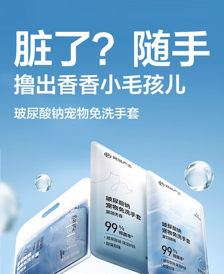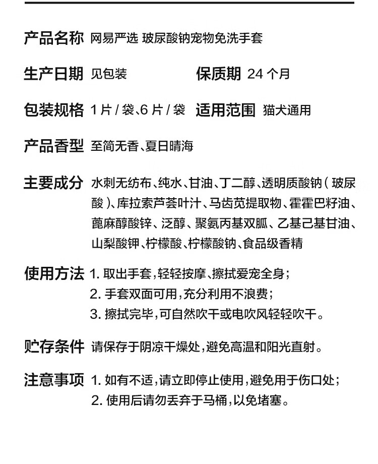 网易严选宠物猫犬通用SPA免洗手套玻尿酸钠宠物免洗手套 抽取式6片装