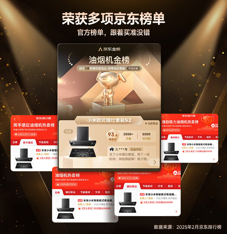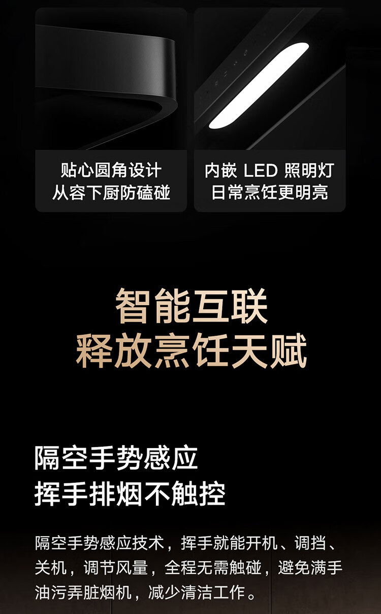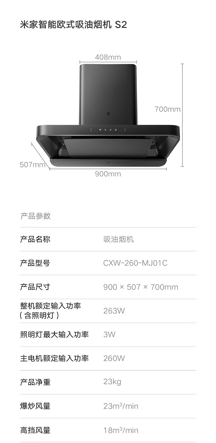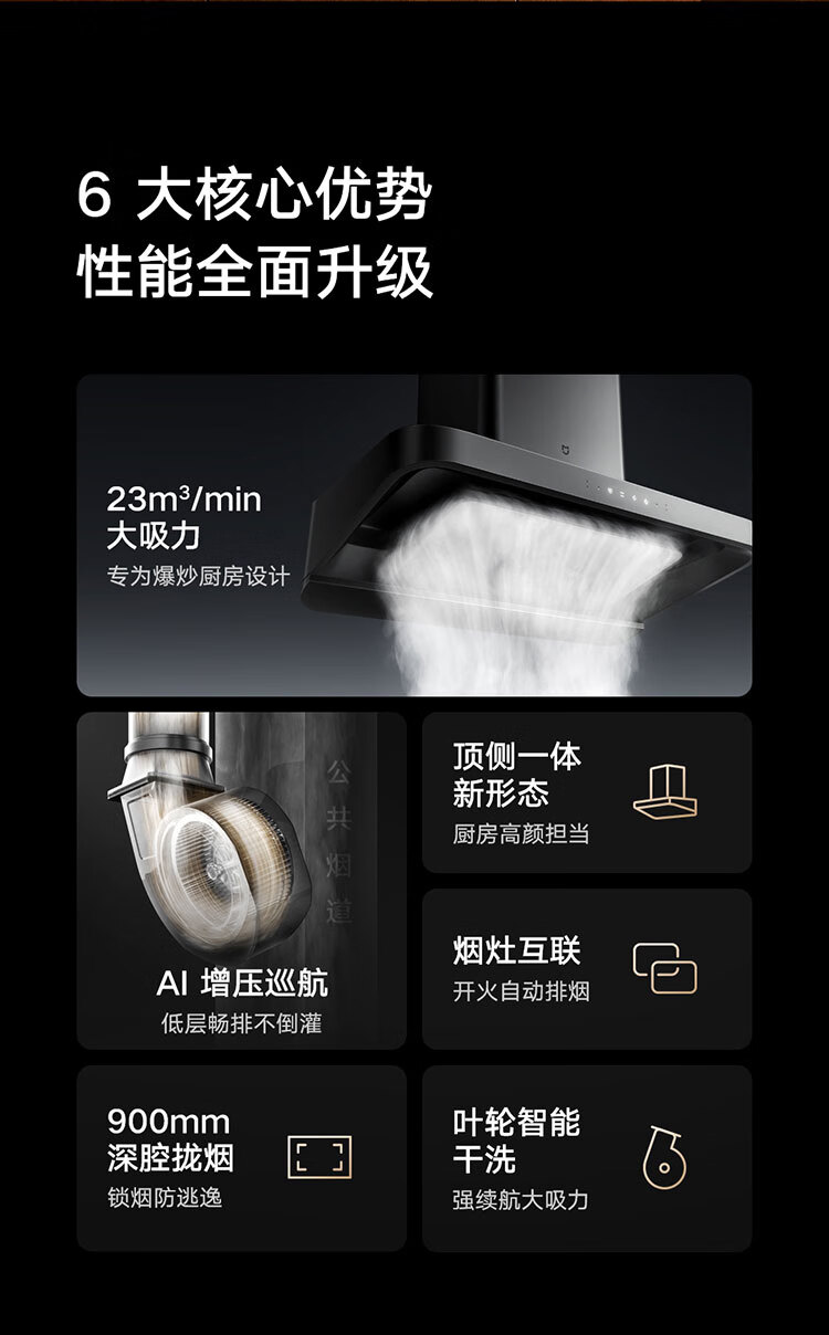 米家小米欧式顶吸油烟机S2 23立方大吸力小尺寸抽油烟机家用厨房烟灶联动家电国家补贴以旧换新MJ01C