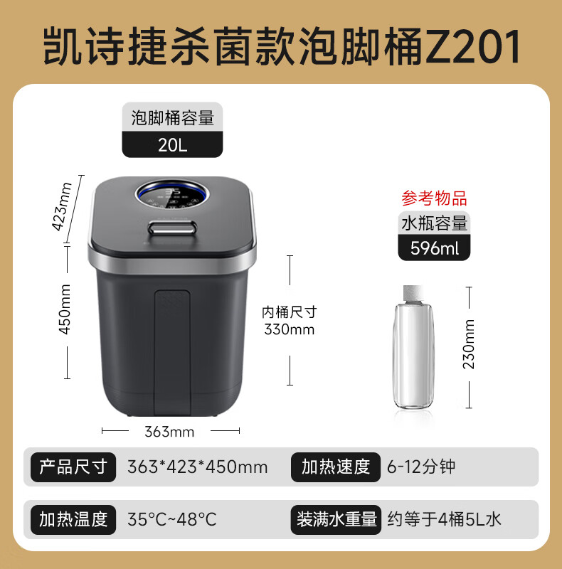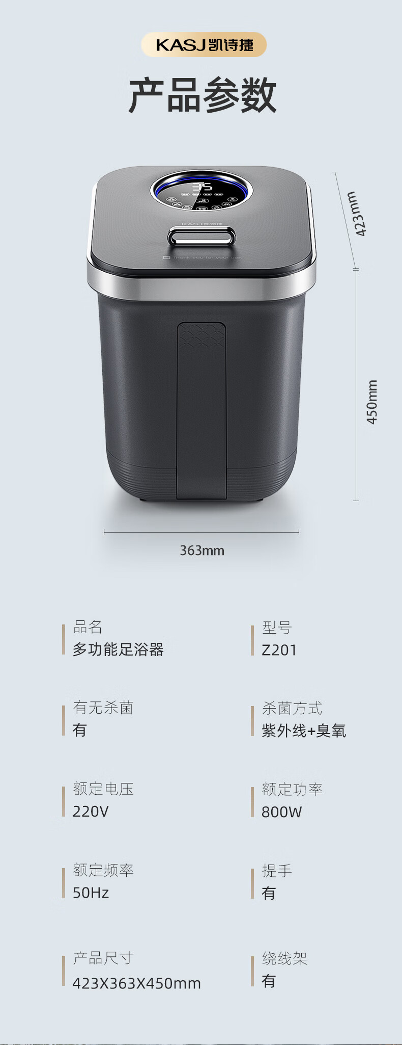 凯诗捷(KASJ)杀菌泡脚桶全自动按摩电动过膝足浴盆恒温足疗洗脚送长辈礼品生日中秋礼物Z201