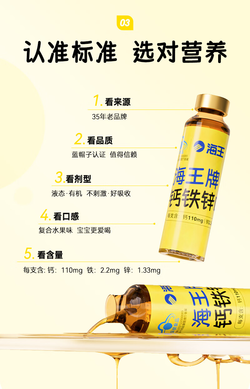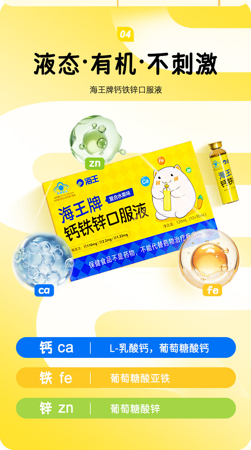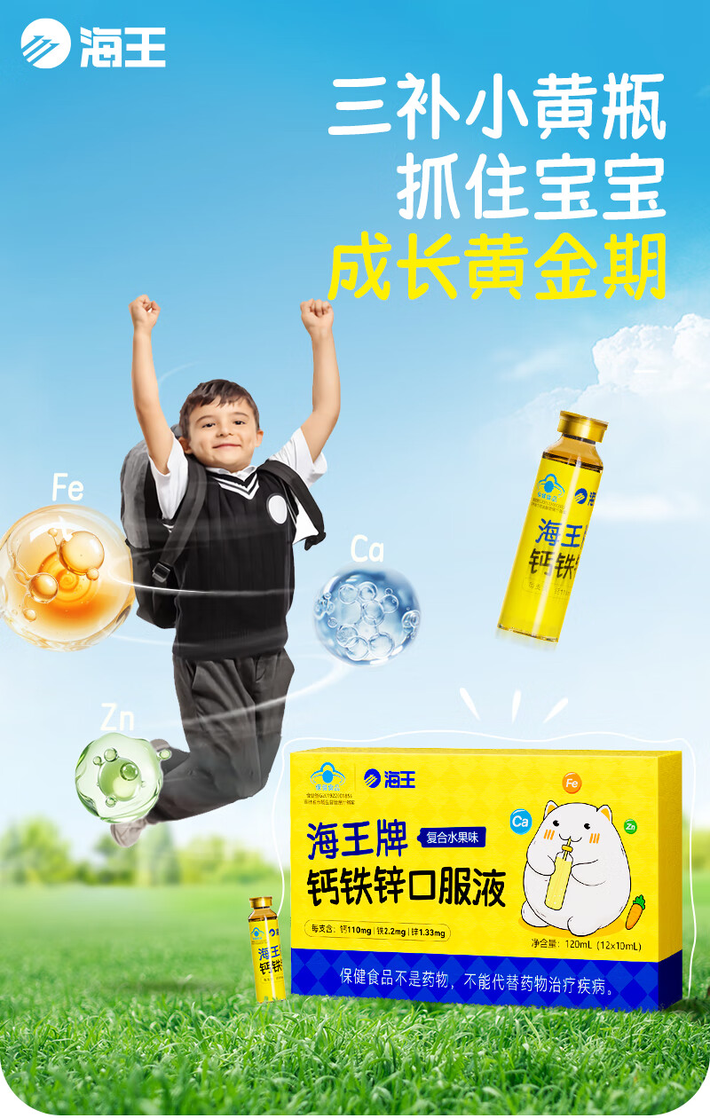 海王钙铁锌口服液12支婴幼儿童孕妇补钙液体钙宝宝厌食葡萄糖酸锌