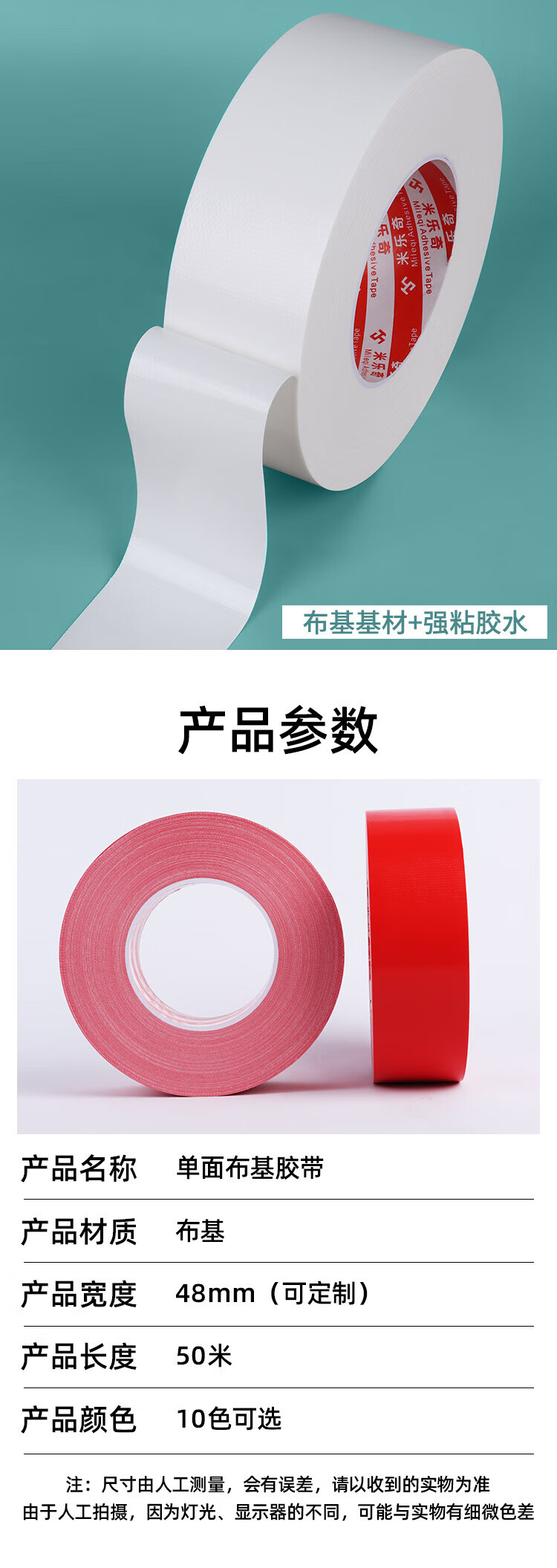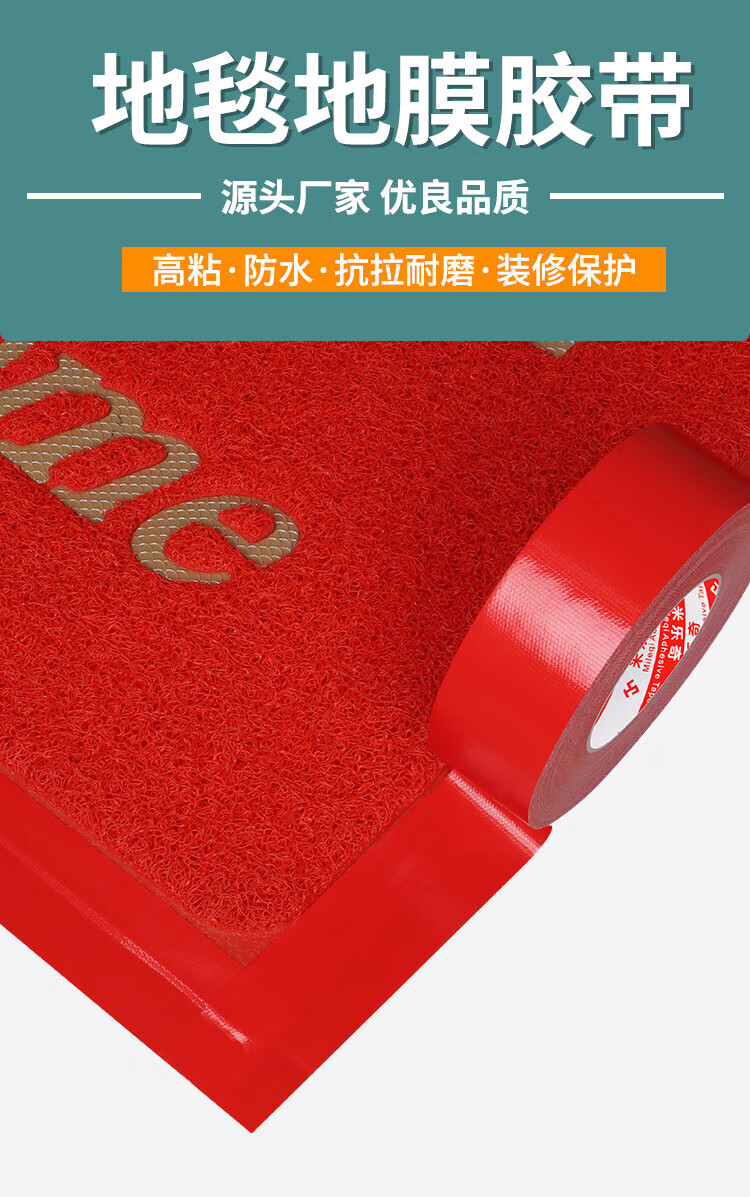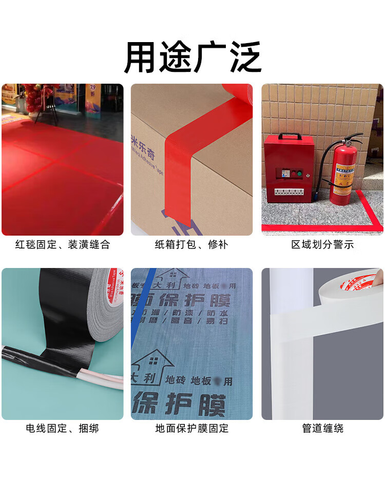米乐奇布基胶带 强粘无痕防水耐磨 婚庆酒店地毯固定易手撕 红色-4.8cm宽*20米