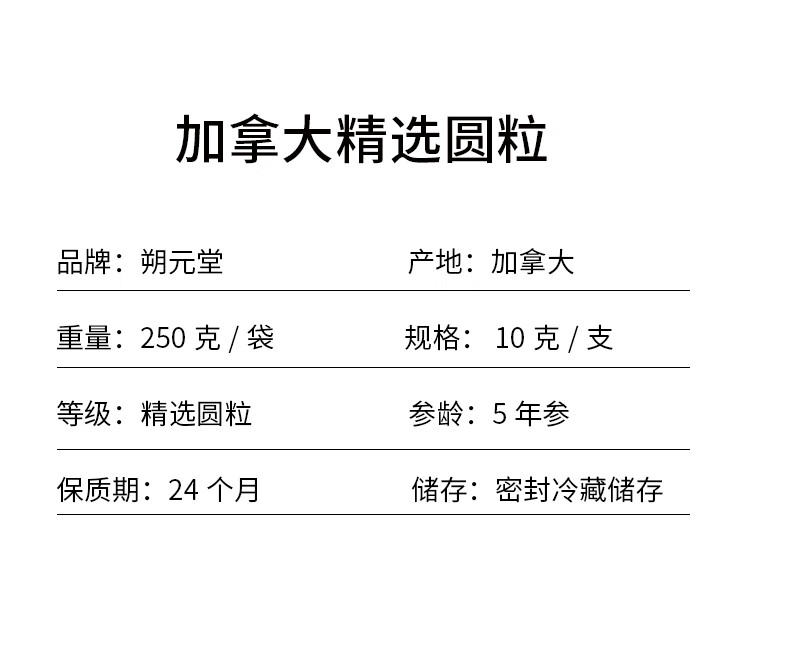 朔元堂加拿大进口精选圆粒西洋参250g/袋 正宗花旗参单支10克老参送礼