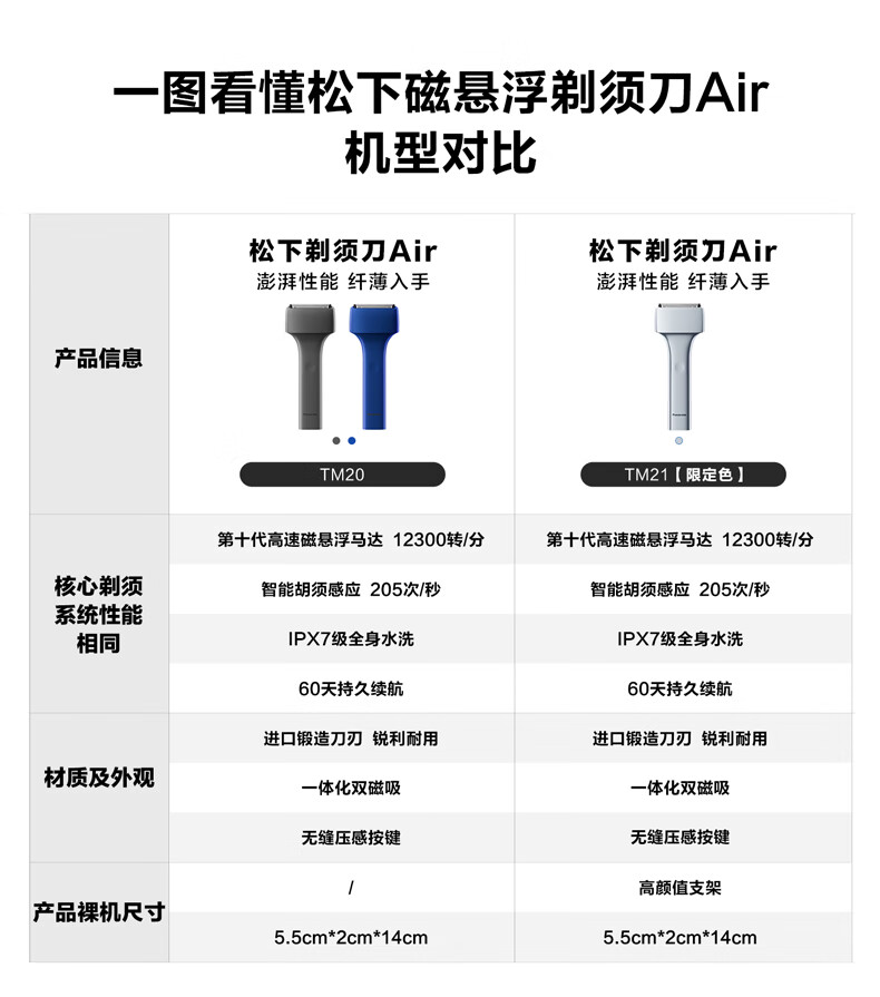松下(Panasonic)电动剃须刀便携磁悬浮剃须刀Air纤薄往复式电动刮胡刀Type-c生日礼物男士2025新款TM20灰 国家补贴