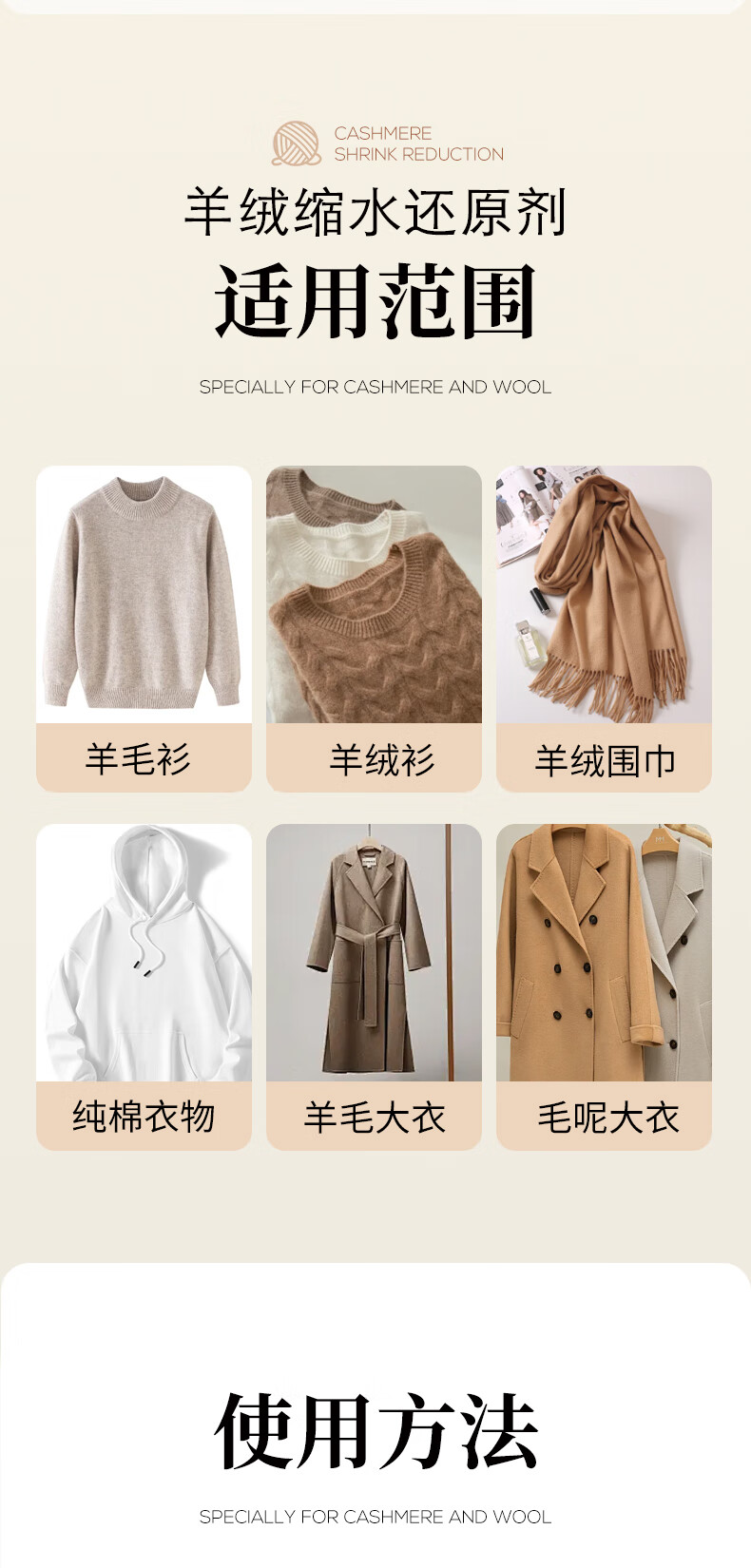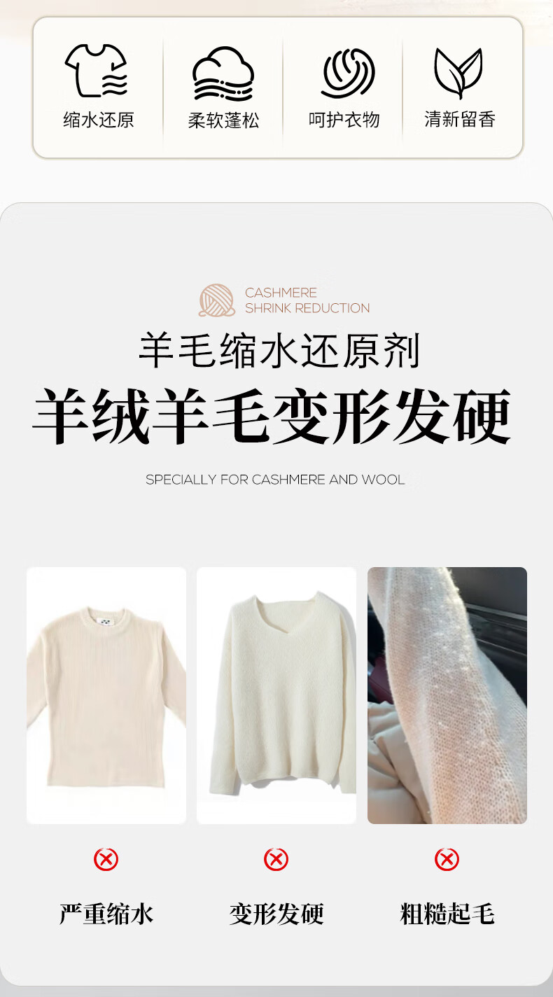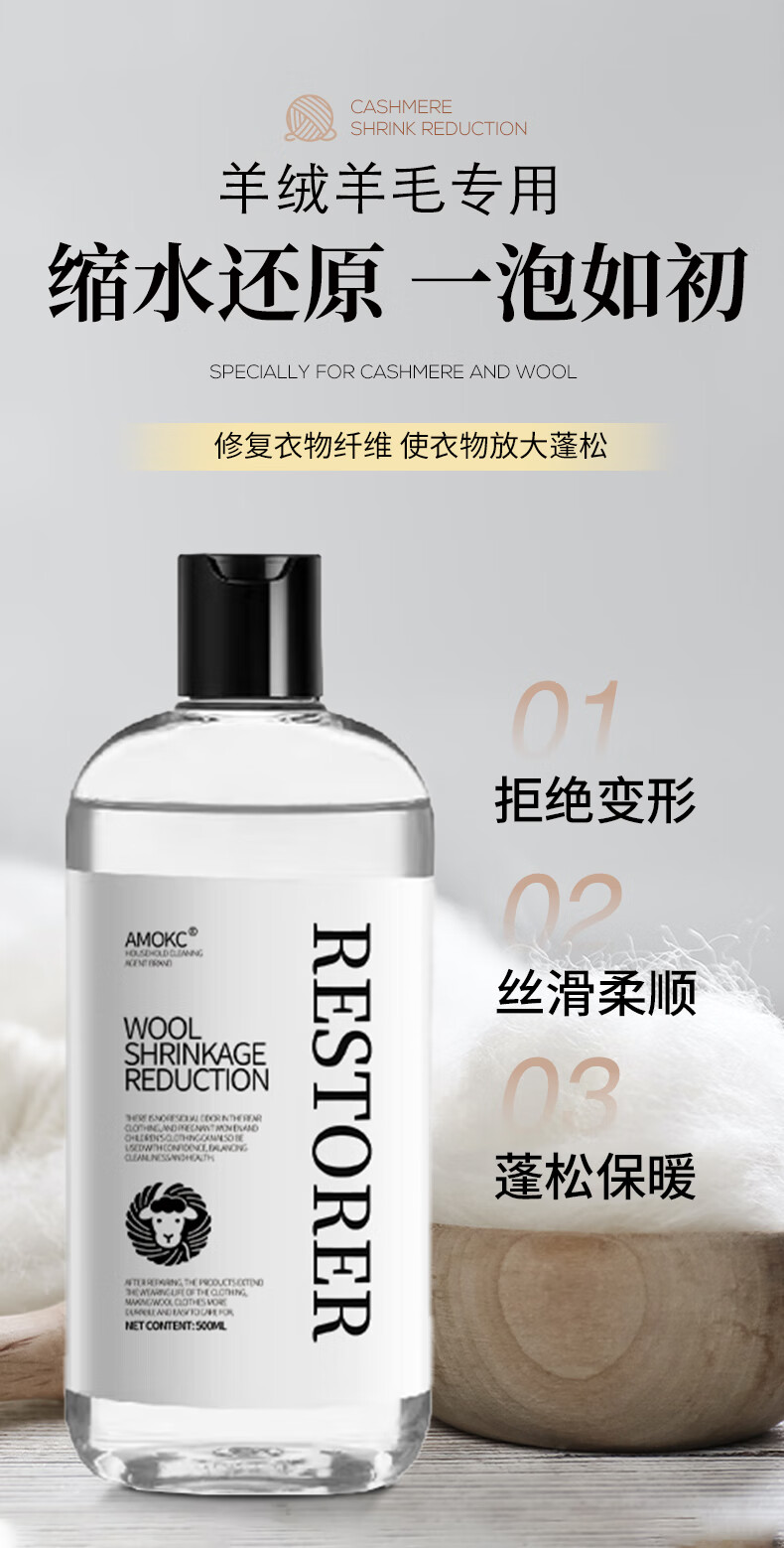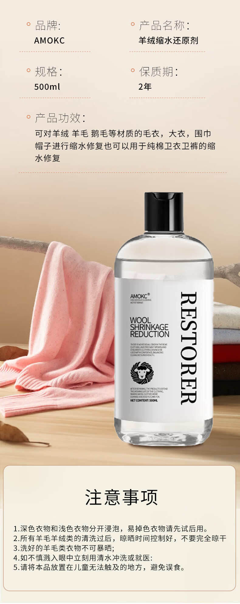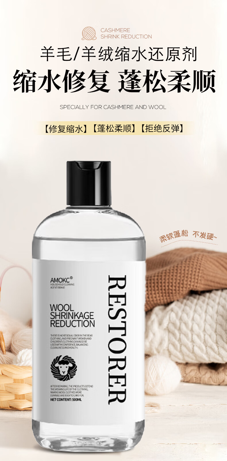 AMOKC羊毛衫缩水还原恢复剂羊绒衫毛衣蓬松洗涤剂衣服放大还原剂500ml