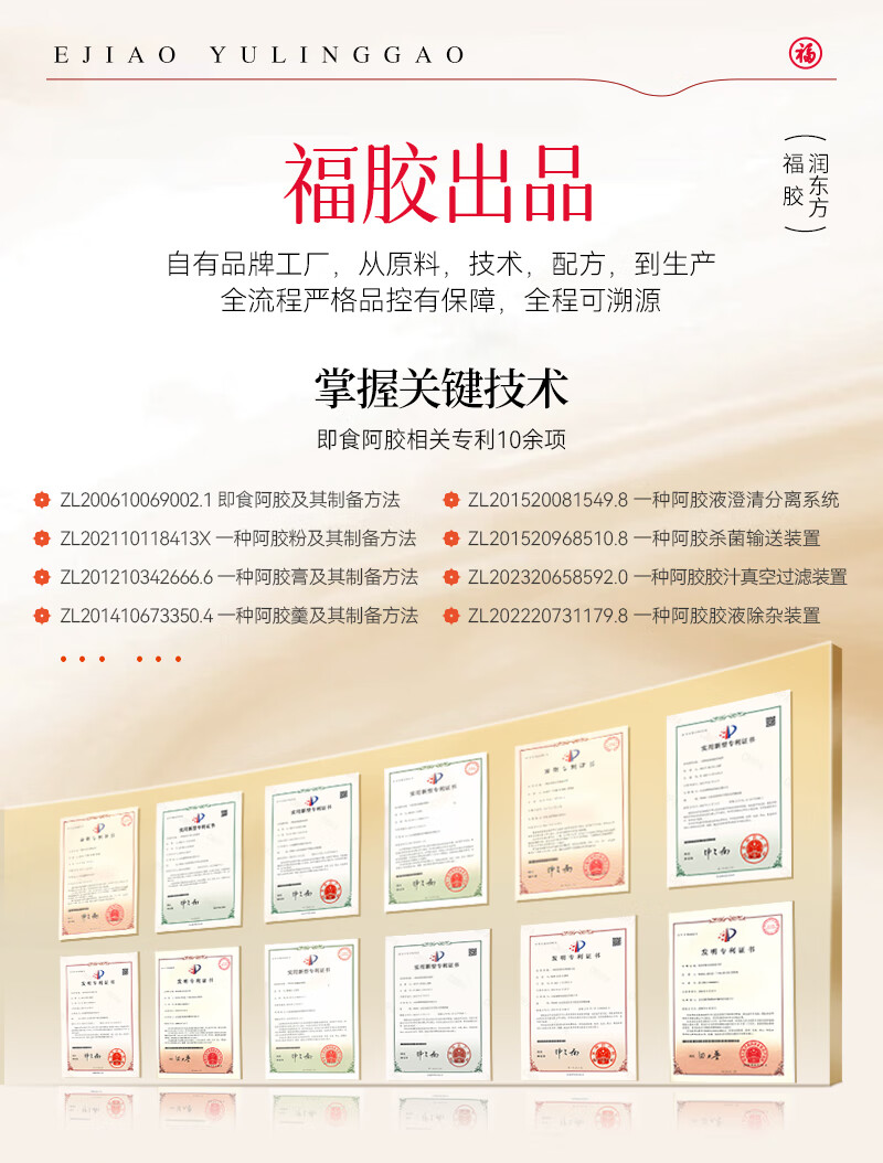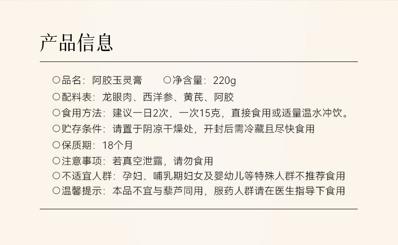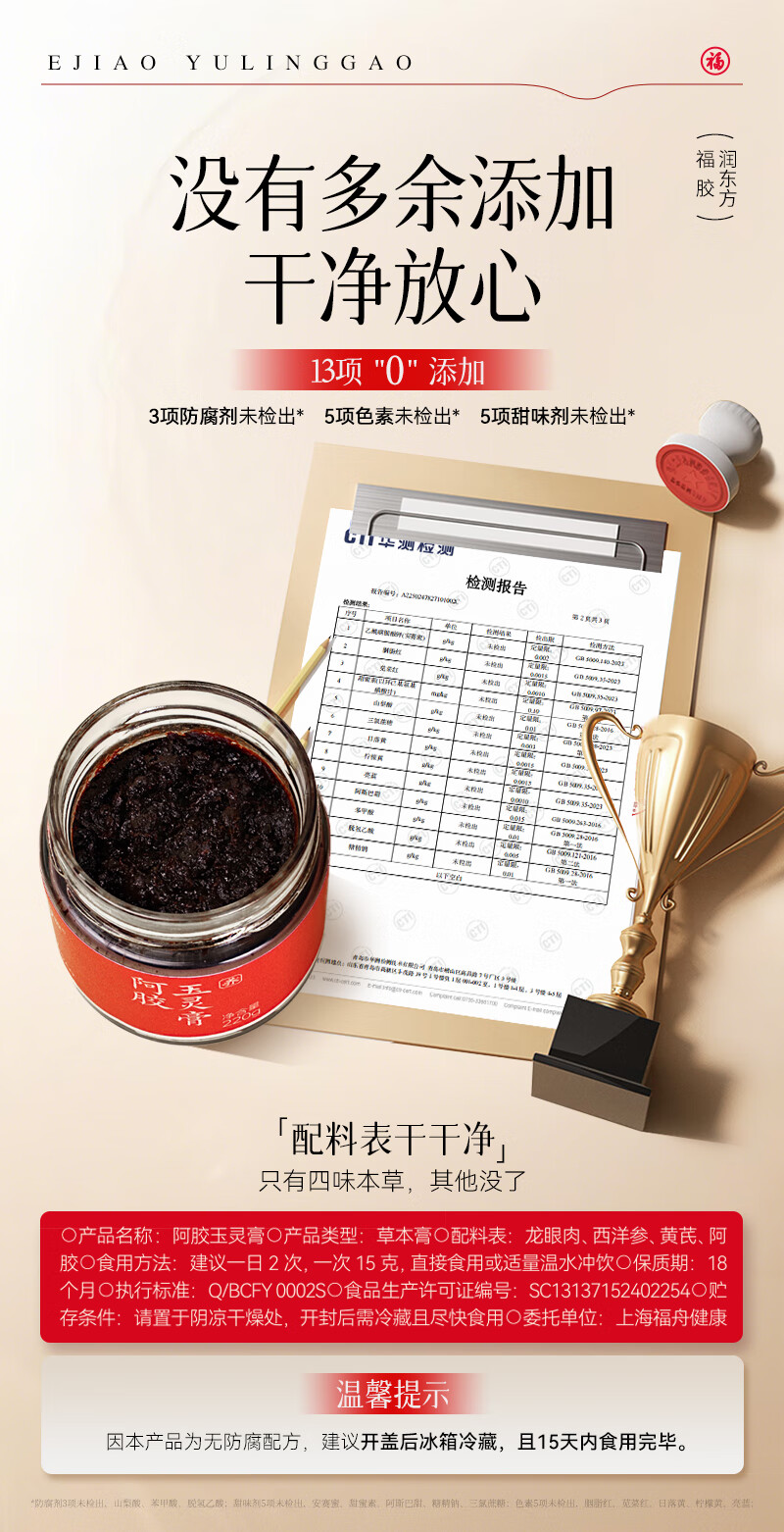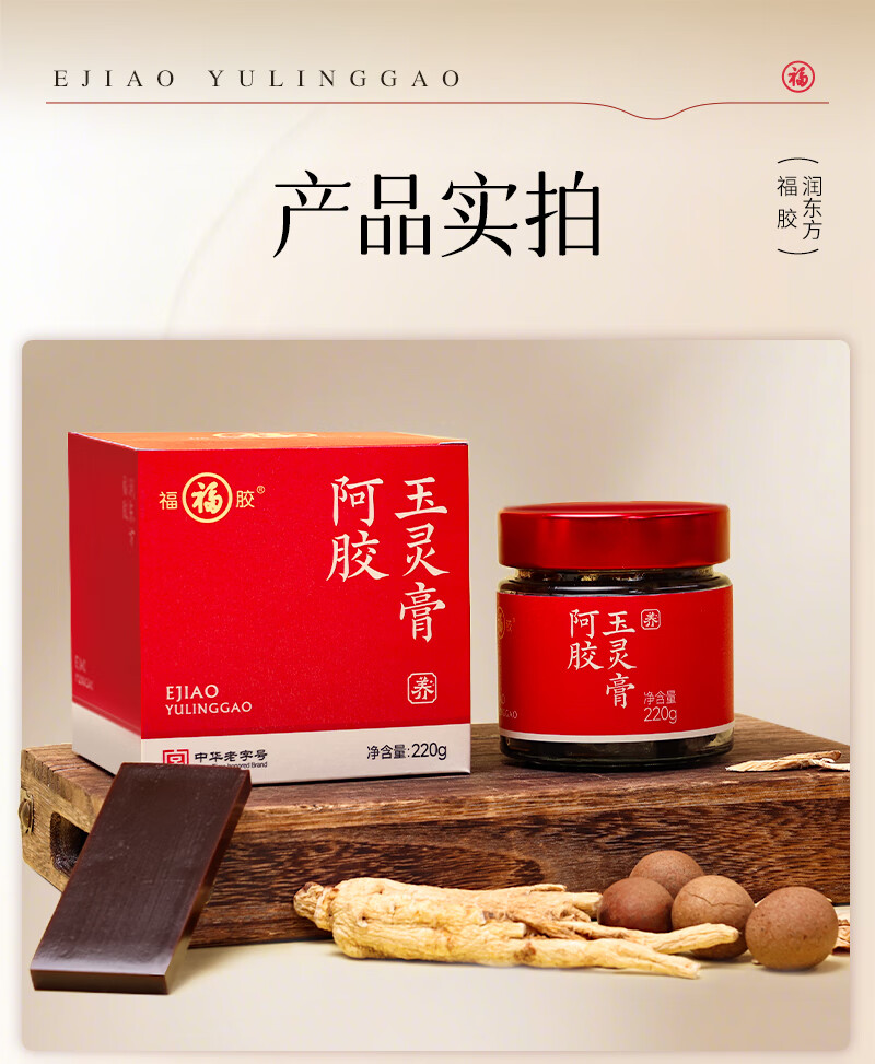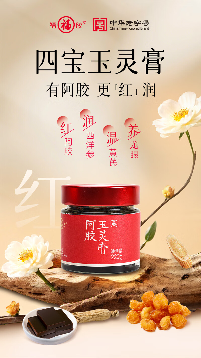 福牌阿胶阿胶玉灵膏 滋补营养品礼盒古方熬制气血养生补营养膏方220g*3瓶