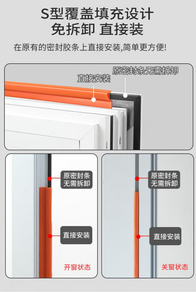 DEATKN德国高端平开窗户密封条防漏风断桥铝防尘保暖塑钢窗密封胶条 硅胶8米/白色[约2个窗户]隔音气囊