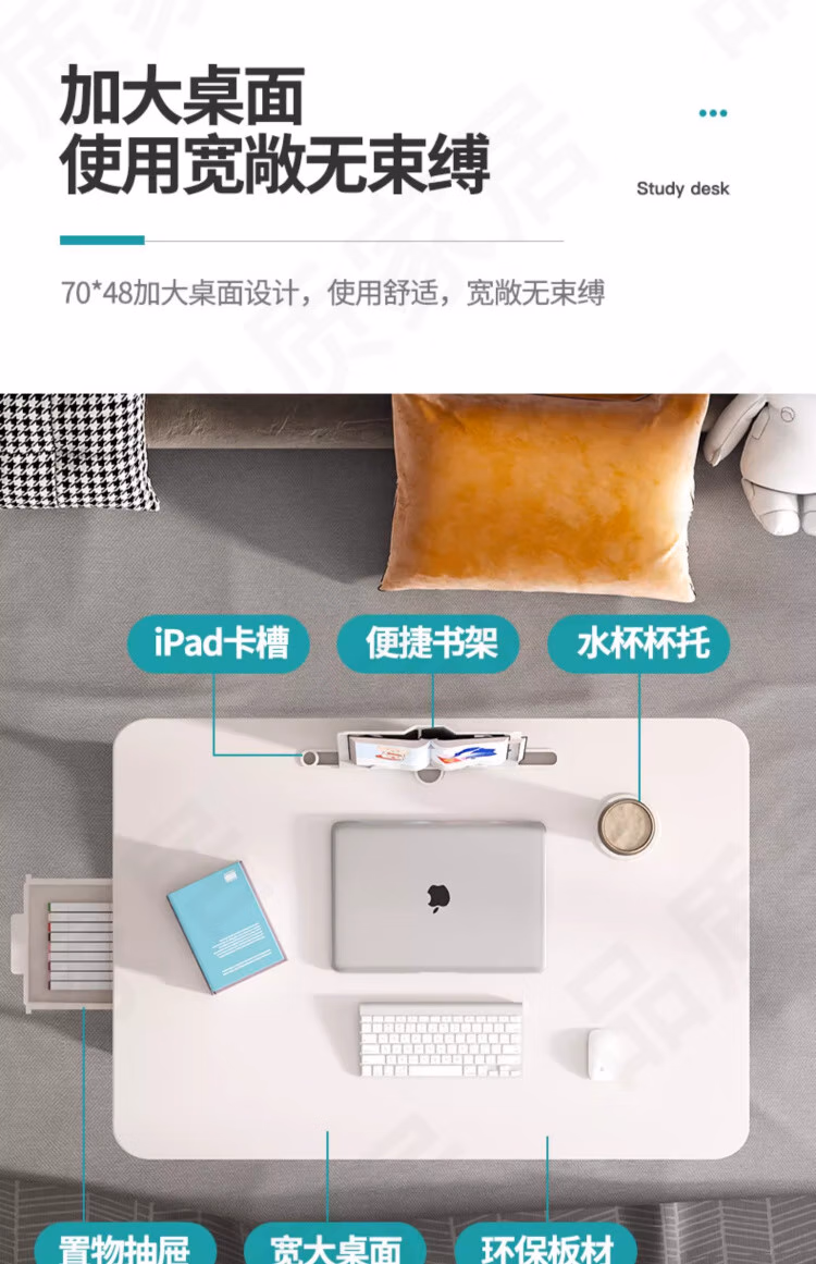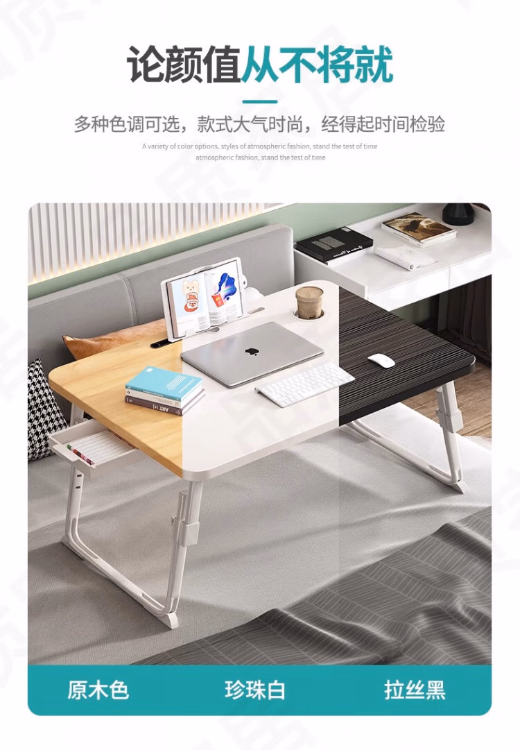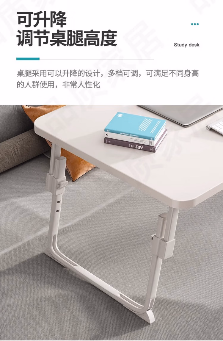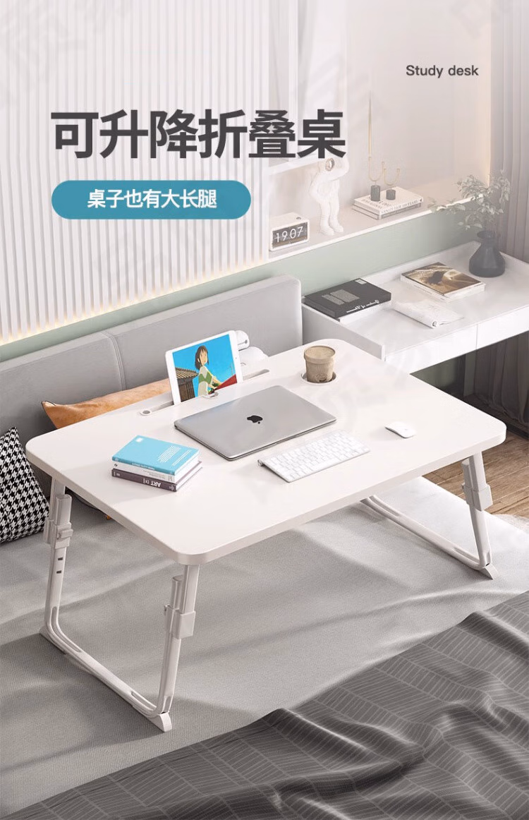 DEATKN德国床上桌可升降床上折叠桌子宿舍学习桌书桌学生电脑桌懒人桌板 【大号】(三档升降) 珍珠白