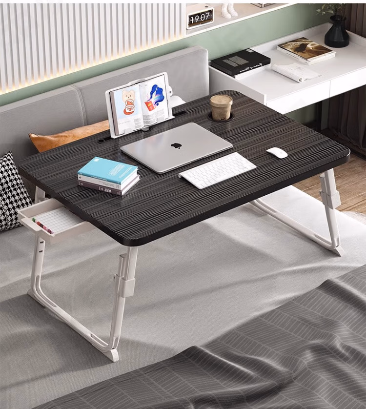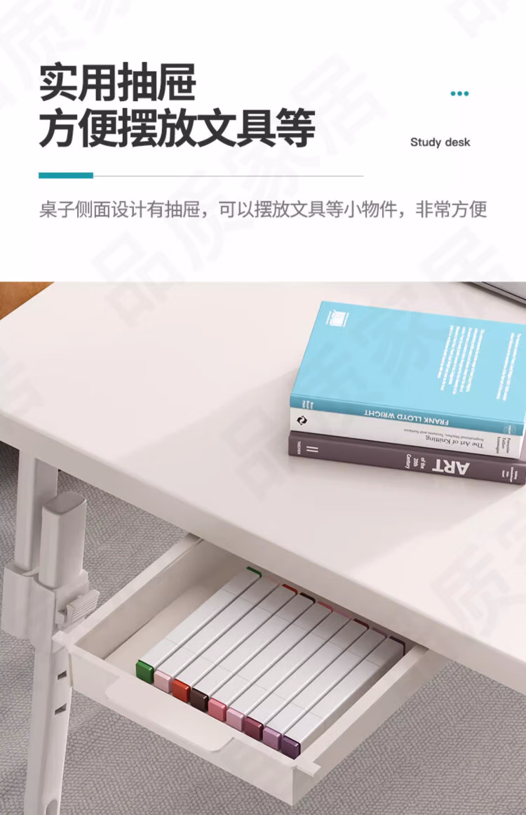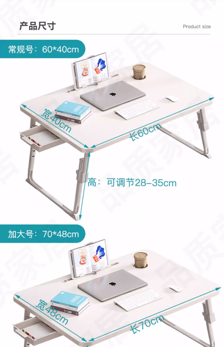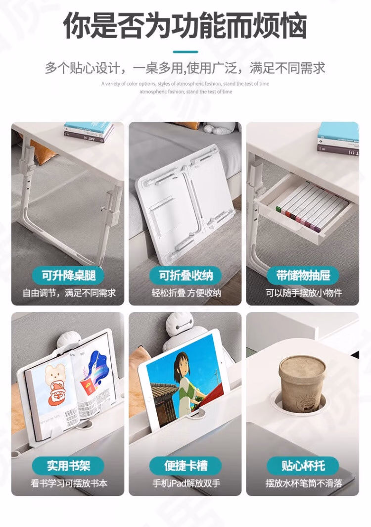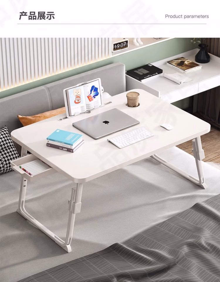 DEATKN德国床上桌可升降床上折叠桌子宿舍学习桌书桌学生电脑桌懒人桌板 【大号】(三档升降) 珍珠白