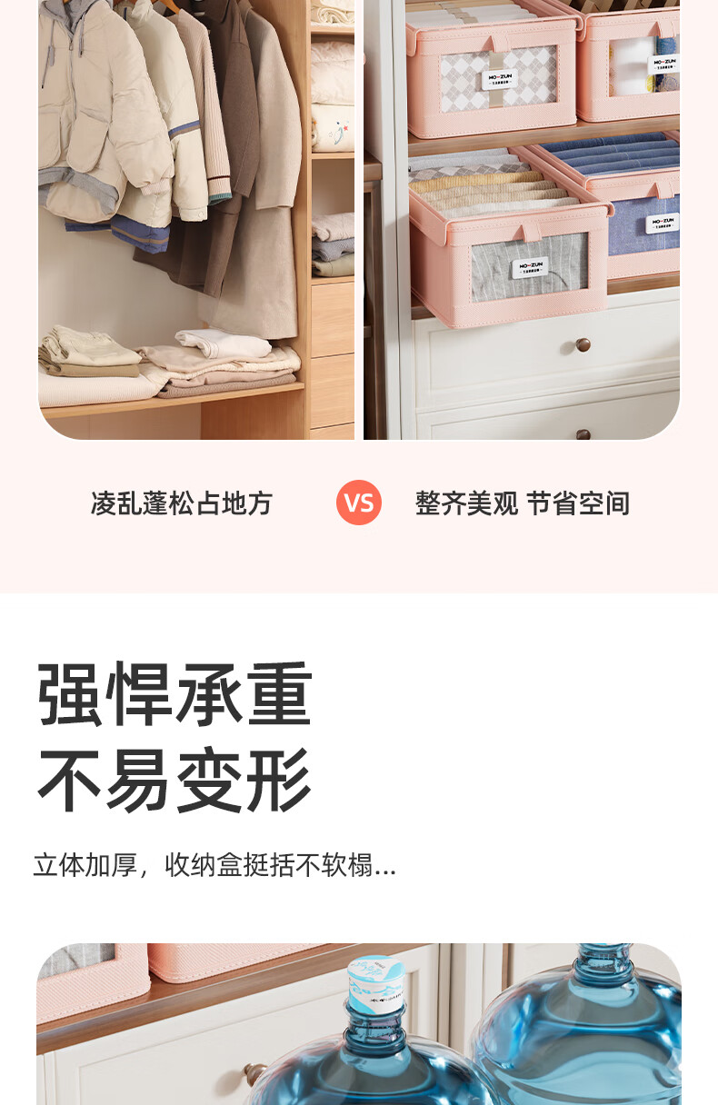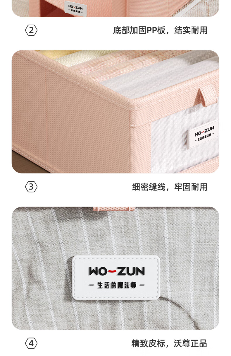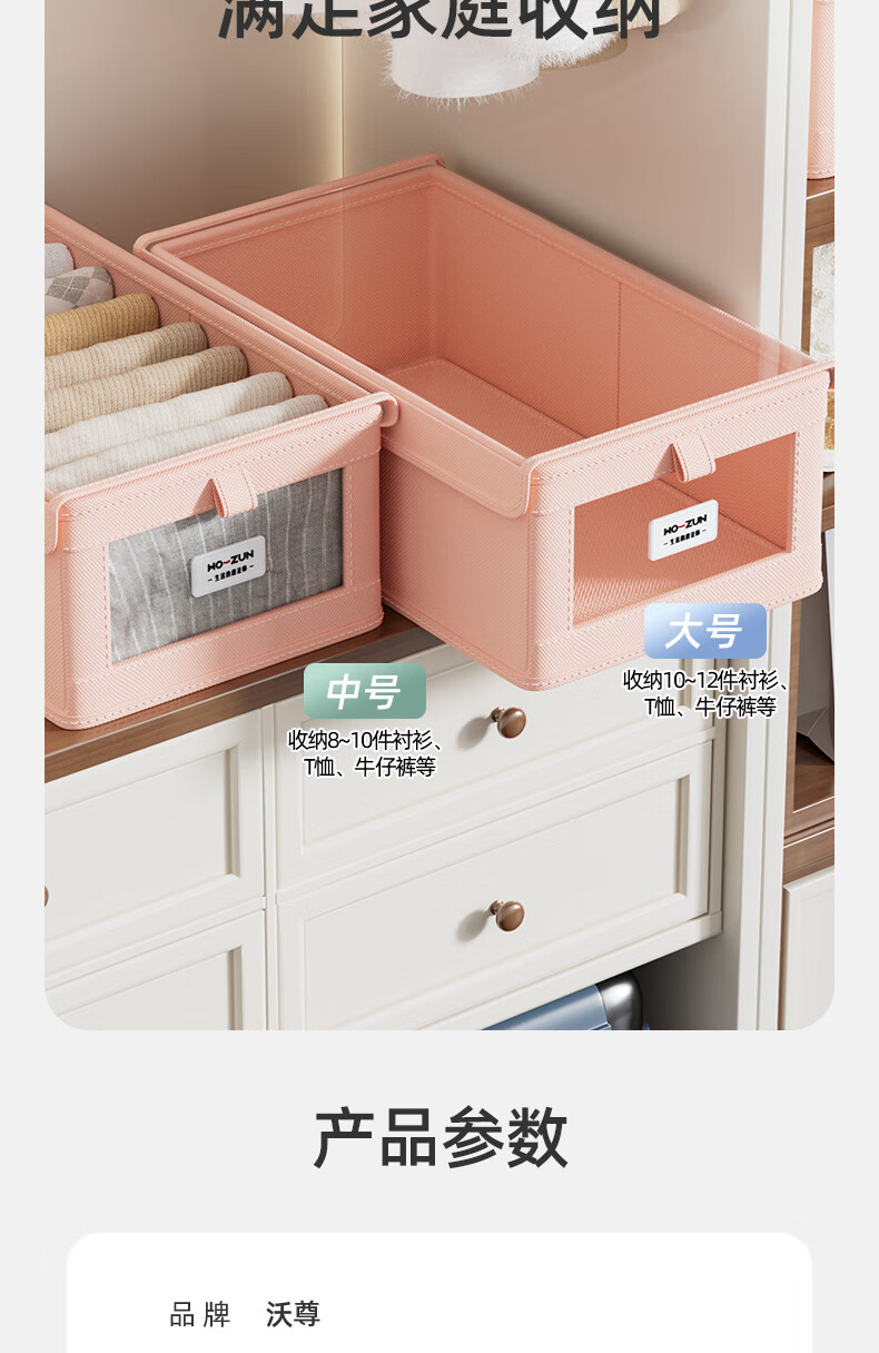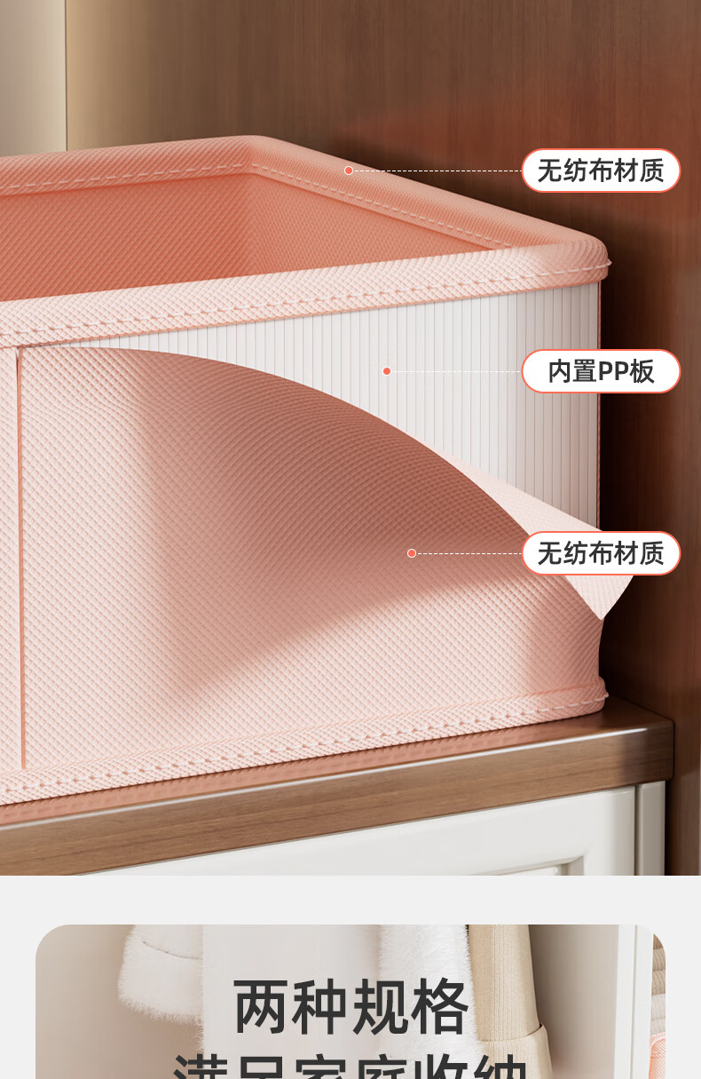 沃尊收纳盒衣柜大容量整理盒专用四件套裤子收纳神器透窗衣物收纳筐 粉色【中号】升级带盖款 1个装:25年新款 立省衣柜空间