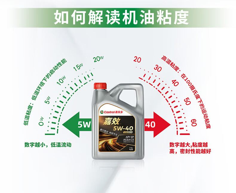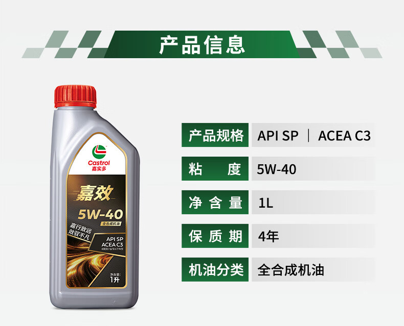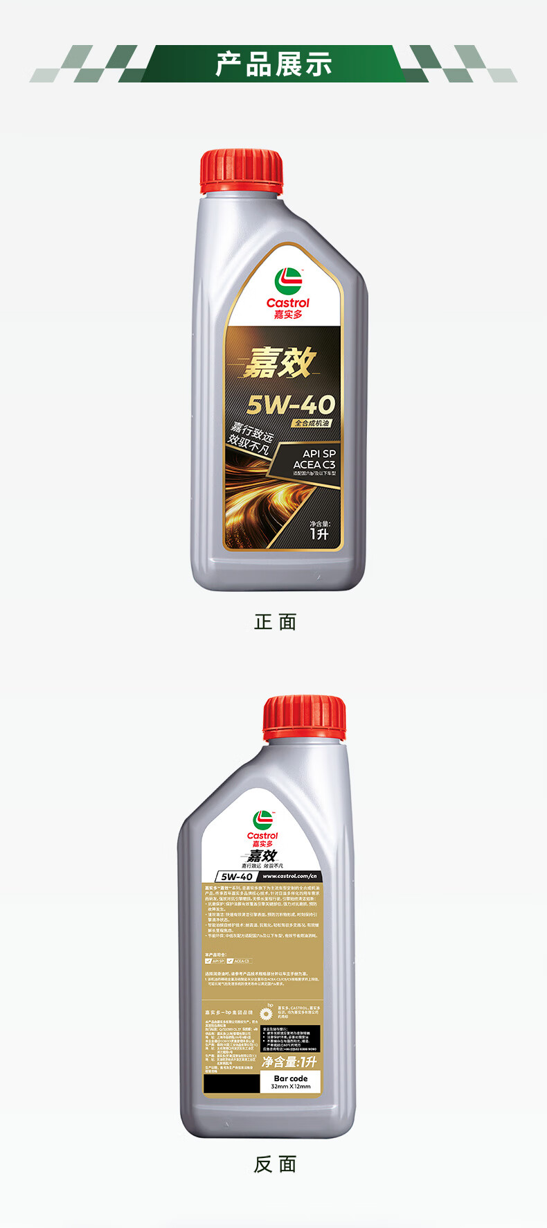 嘉实多(Castrol)嘉效 全合成机油 润滑油 5W-40 SP/C3 1L 汽车保养