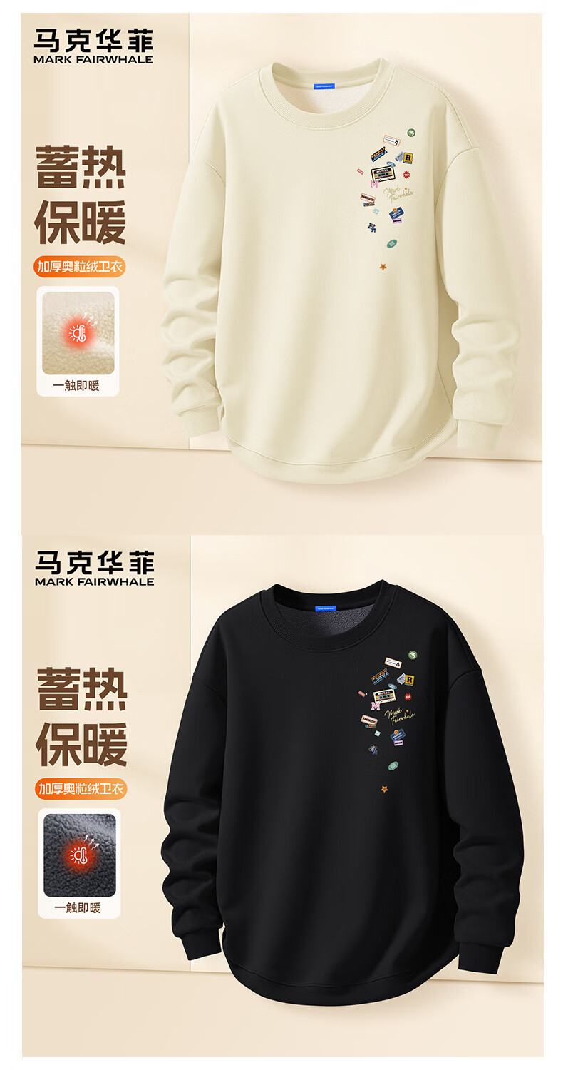 马克华菲卫衣男款加绒秋冬款美式潮牌圆领上衣男2025新款加厚保暖男士外套
