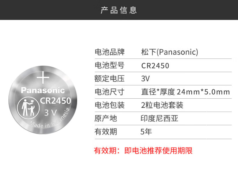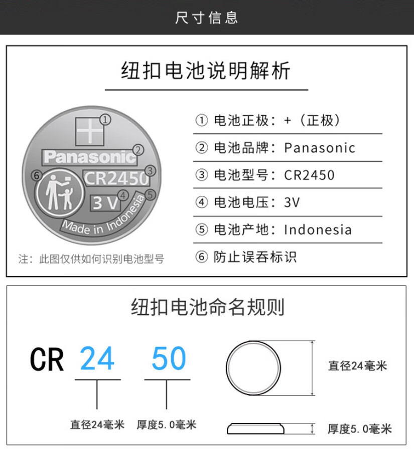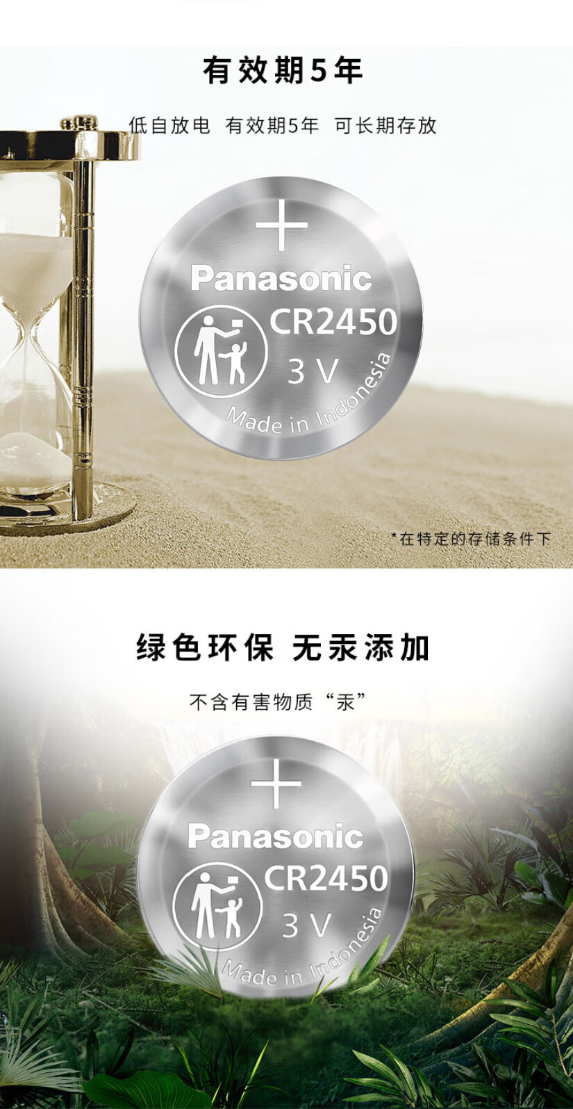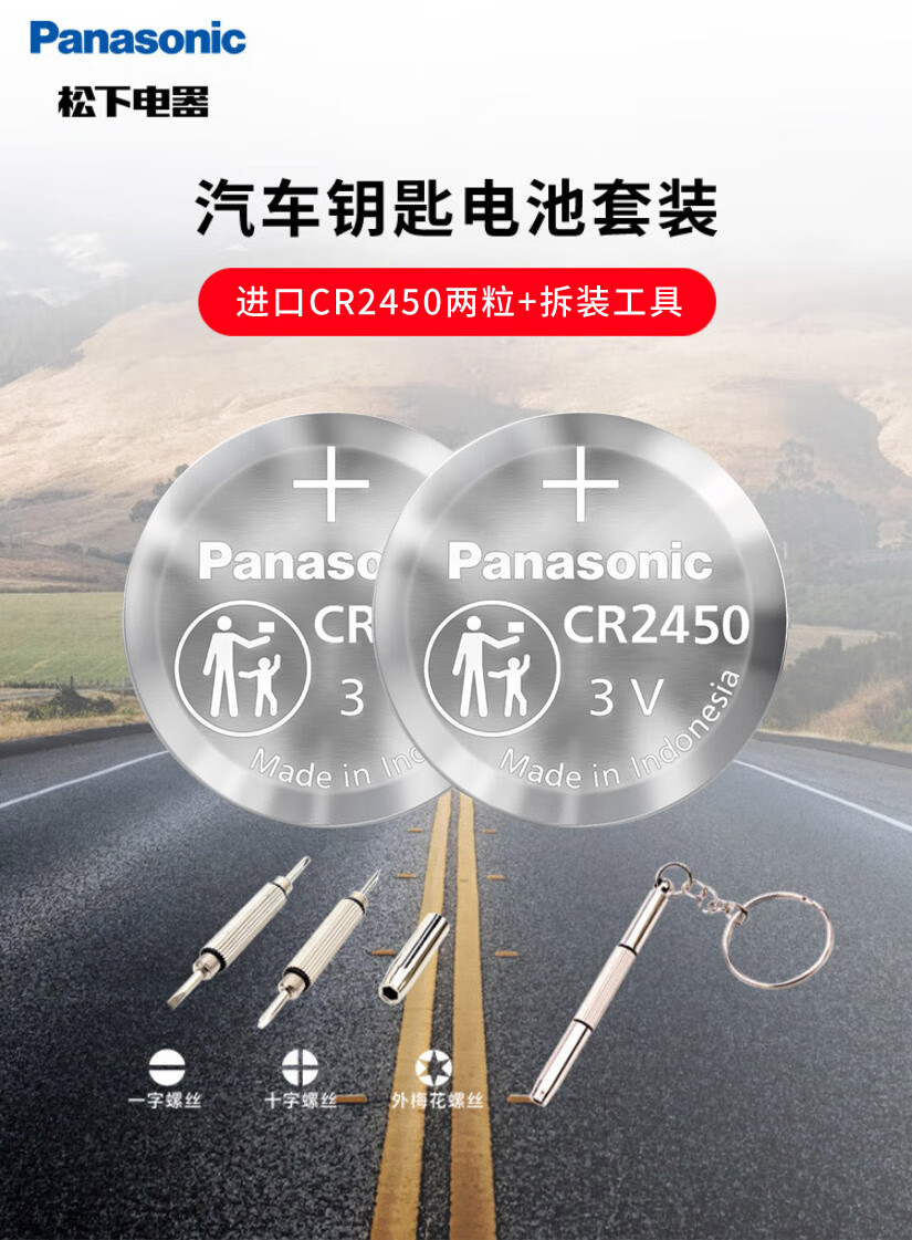 松下(Panasonic)CR2450纽扣电池汽车钥匙电池套装适用于宝马x1x3x4 1系2系3系4系5系6系7系车钥匙电池