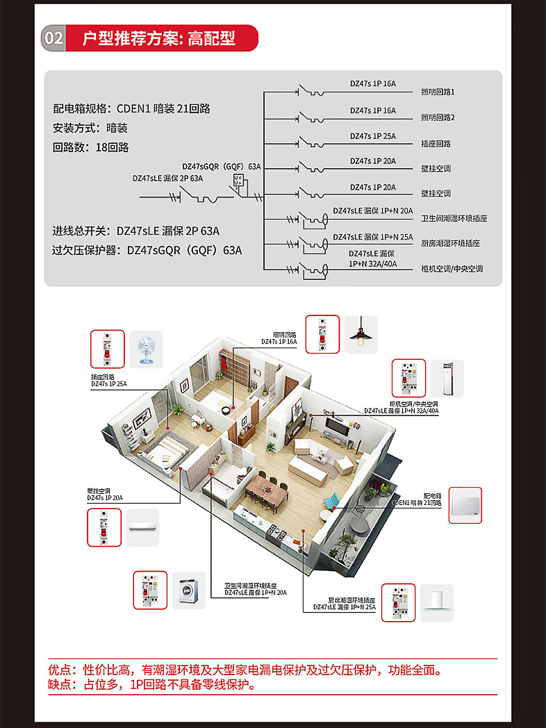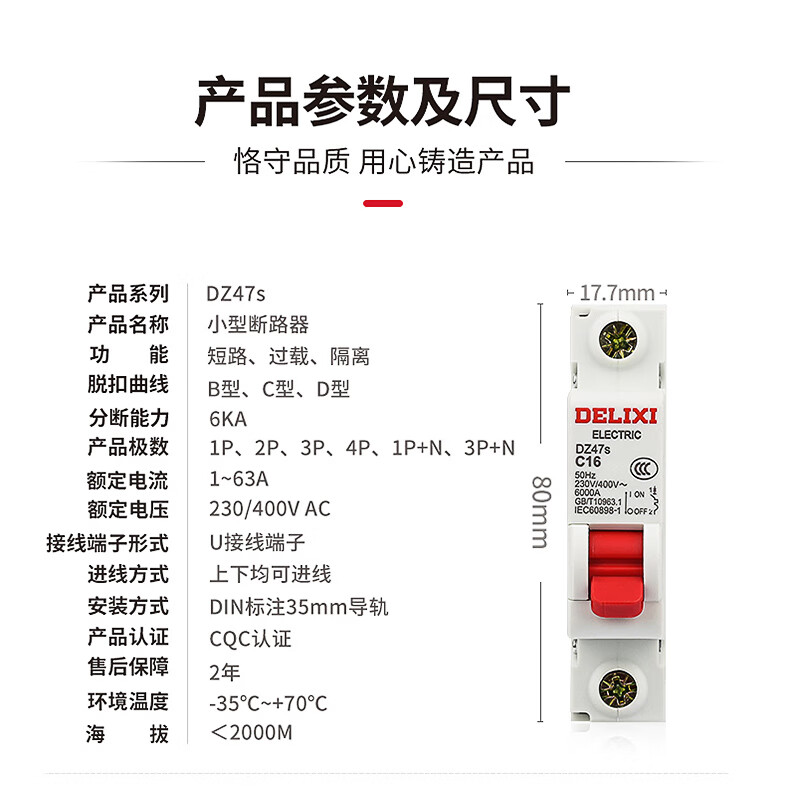 德力西电气空开微型断路器空气开关家用DZ47s 2P 16A