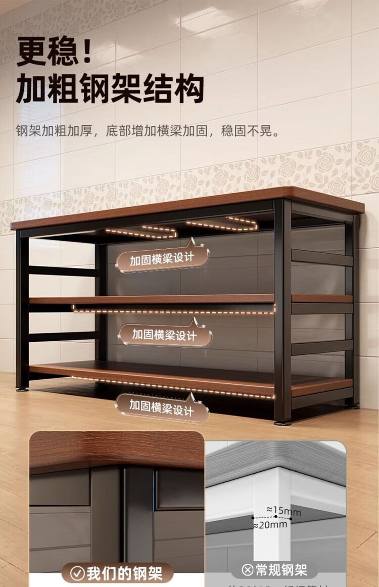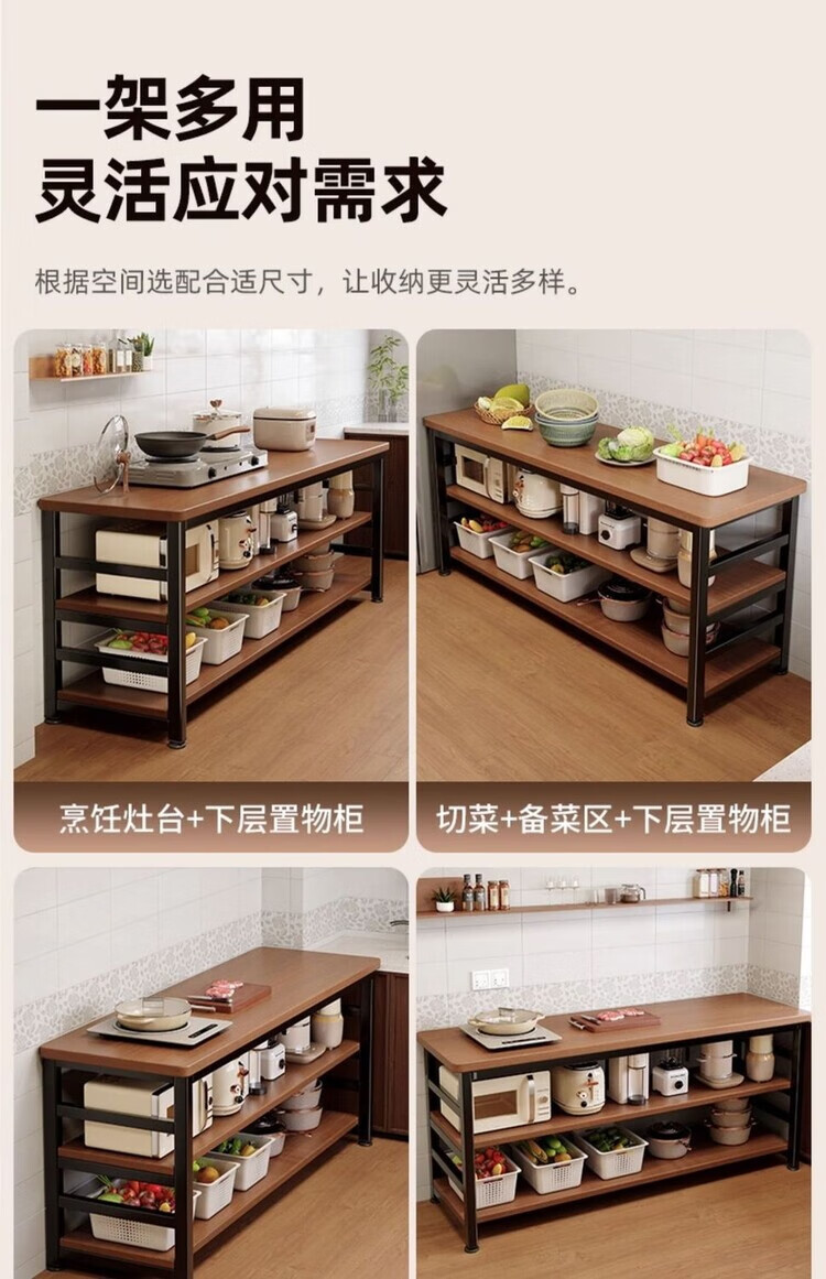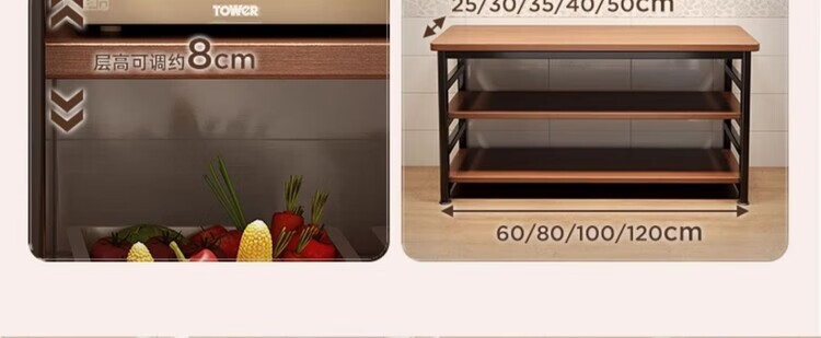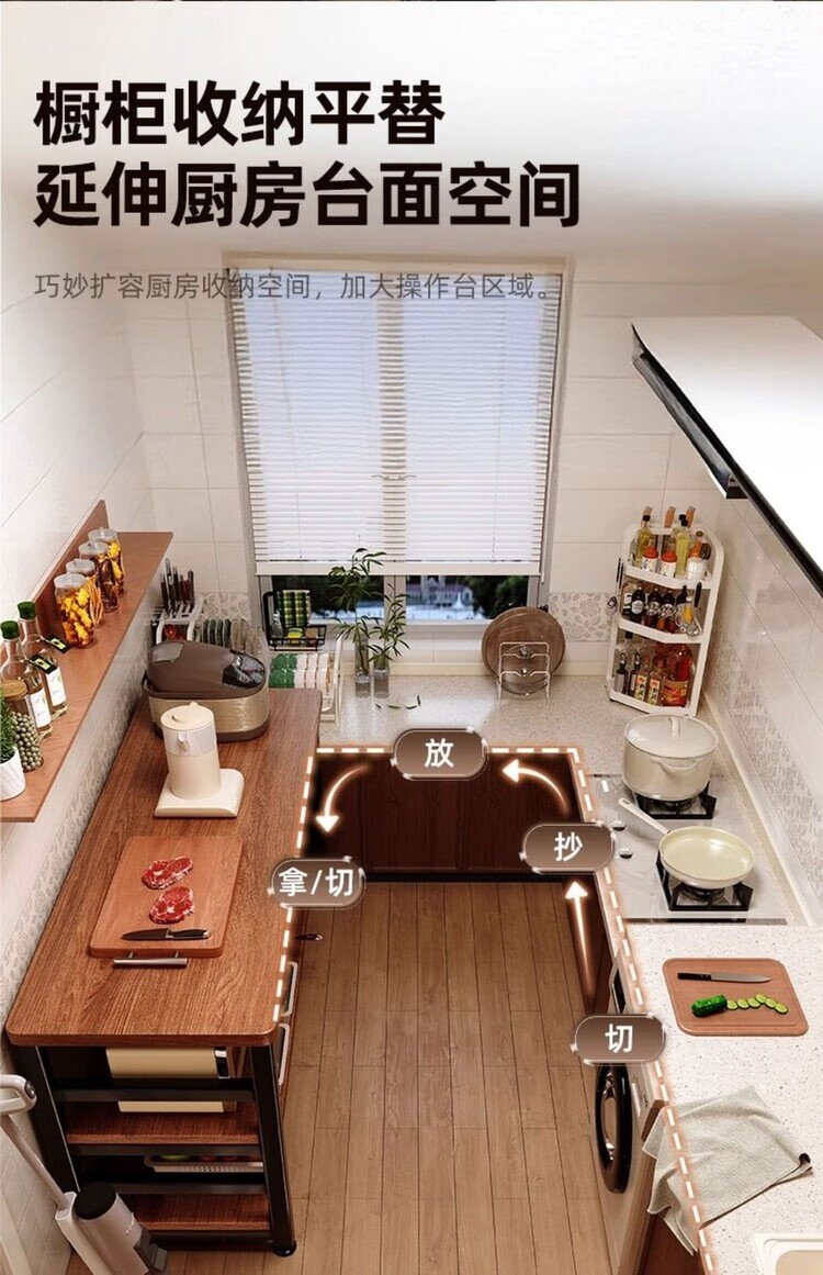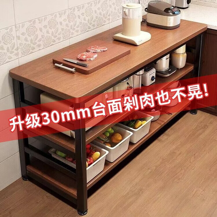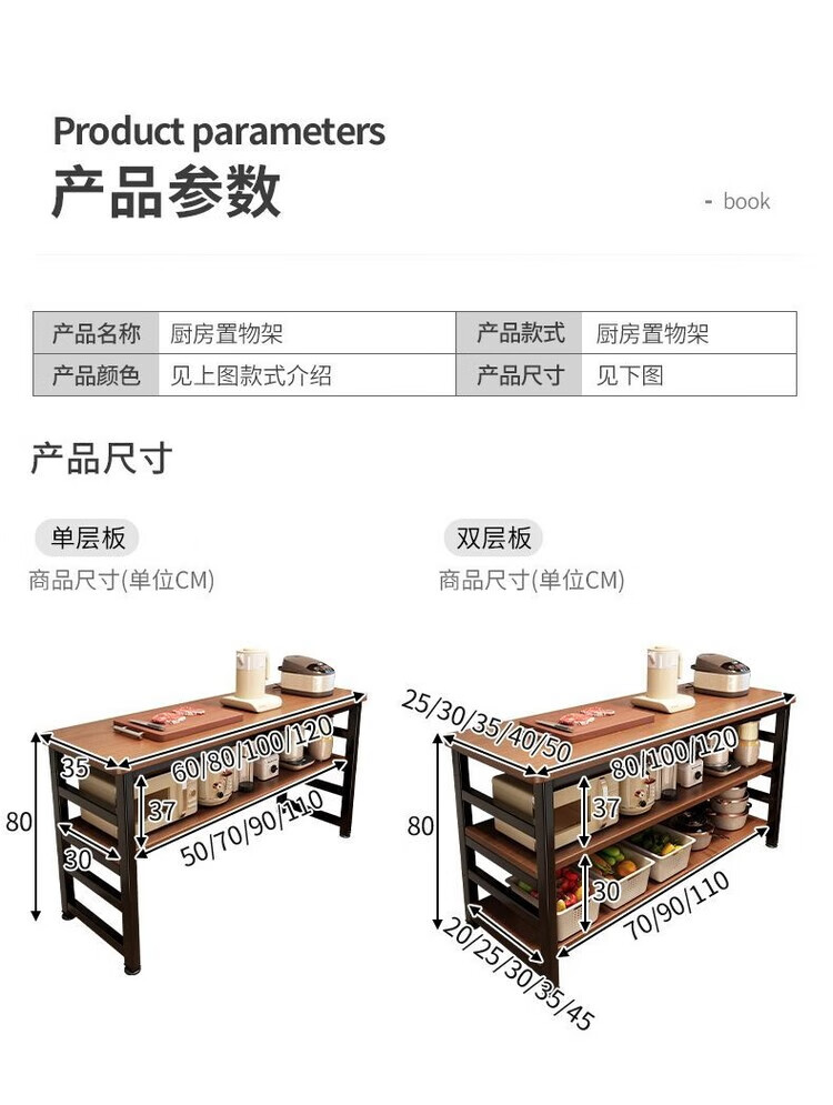 兰琦欧厨房置物架多功能家用落地多层靠墙切菜工作台窄边柜子收纳架桌子 30mm台面 两层丨长60宽35高80
